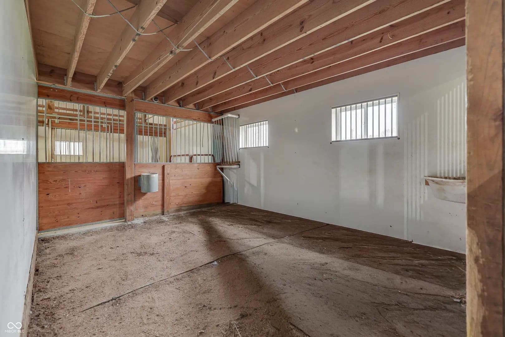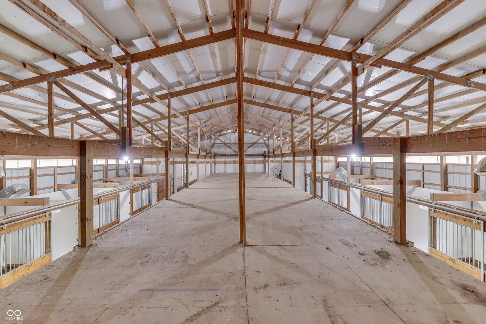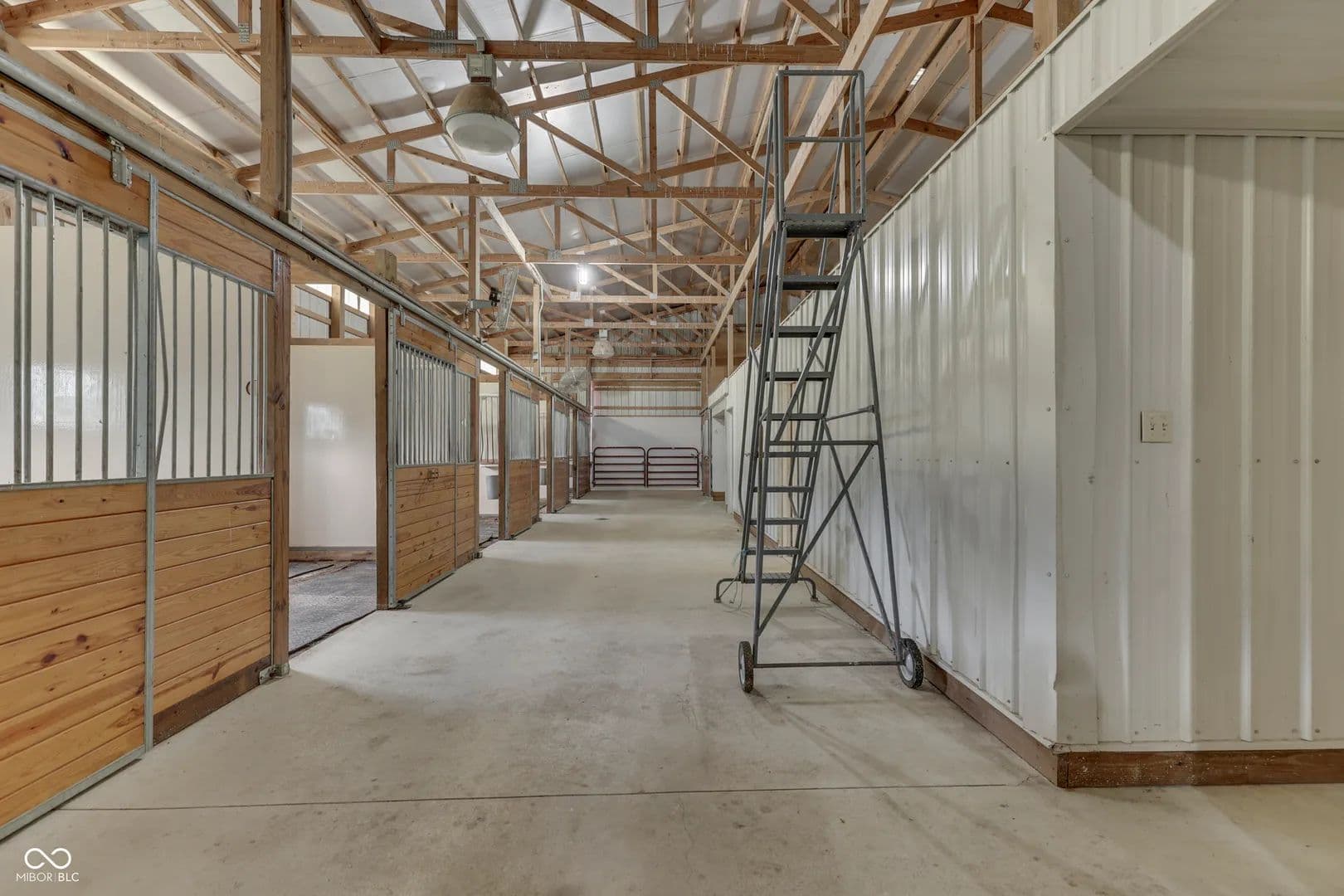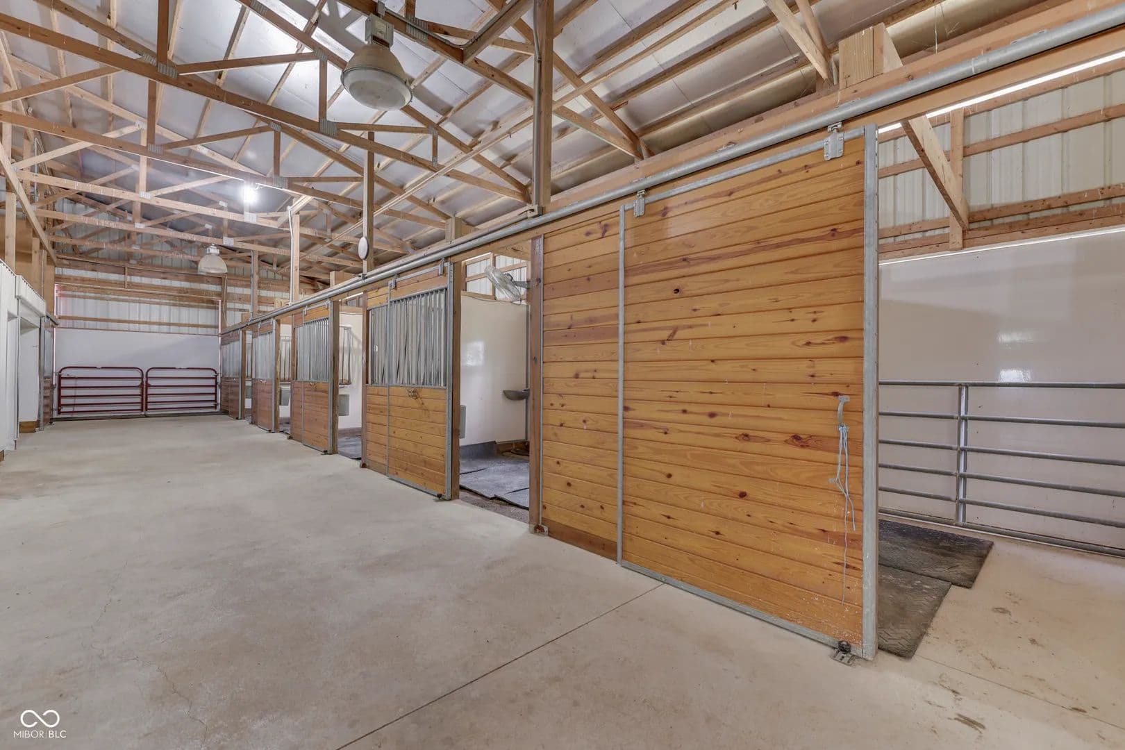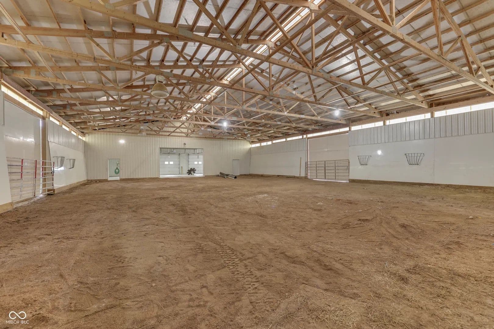 Nestled on over 33 acres of breathtaking countryside, this expansive farm residence offers a rare opportunity for you to own property that features 5,000+ square foot ranch home, located on beautiful rolling topography. 1.5 acre pond with peaceful water views. Exceptional 10 stall horse barn fully equipped with indoor arena, birthing stall, giant hayloft, tack room, wash rack room, AND Stablehand's ensuite. 1,800 sq. ft. heated outbuilding, as well as horse pastures which makes this farm a true escape into tranquility! This property lends itself to a variety of uses whether you're looking for a serene retreat, aspiring to own a farm, or embracing an equestrian lifestyle with all the amenities, or countless creative possibilities inspired by your imagination!! The home is designed with both comfort and entertaining in mind. You will be greeted by a spacious foyer that leads into the unique hearth room created for overall atmosphere and camaraderie. The primary suite is a retreat unto itself with separate walk-in closets, and separate cedar closets for storing. The remaining bedrooms could serve the family, guests, office, or hobby rooms. The basement family room with fireplace provides additional living space and a perfect spot for movie nights, or simply relaxing. Owning this home and driving up your picturesque, tree-lined driveway will feel like owning your own slice of paradise! It is a great location just minutes from Brown County, Greenwood, and I69. Seller is willing to divide land into separate parcels w/reasonable offer. Schedule your showing today!!