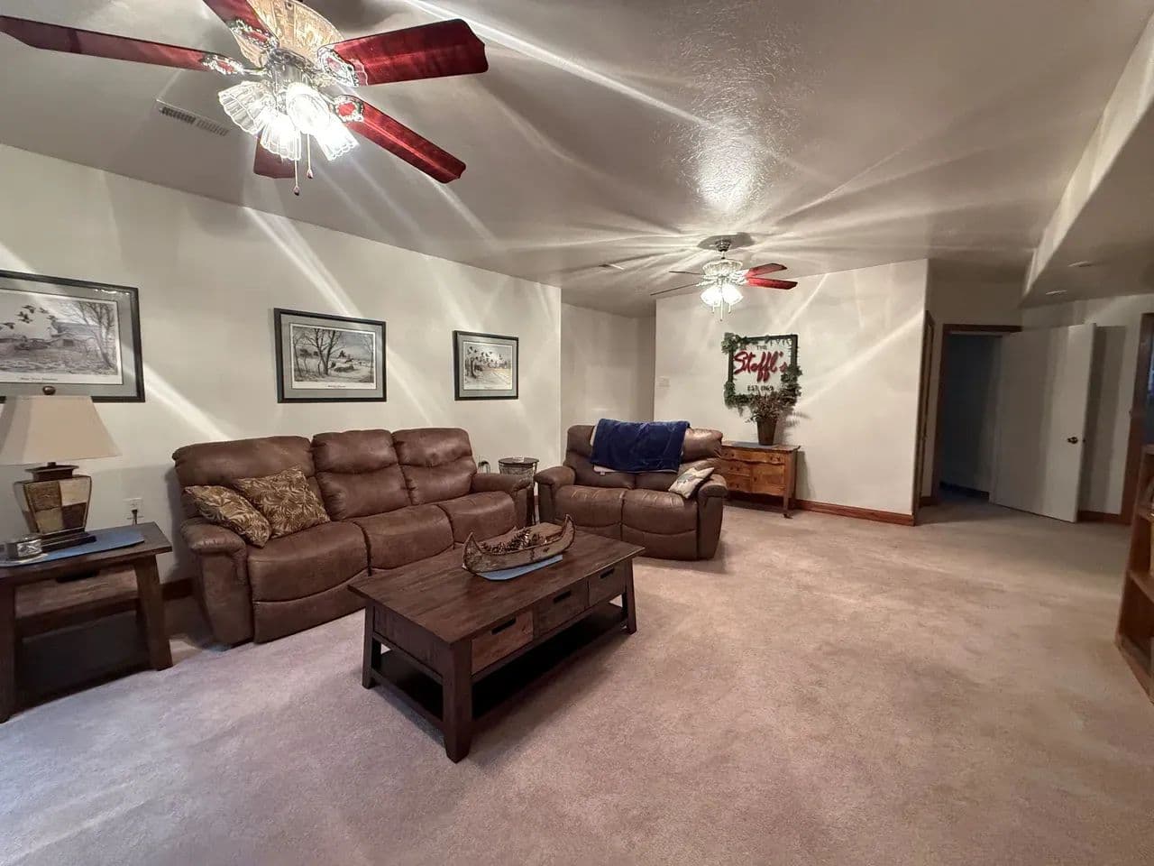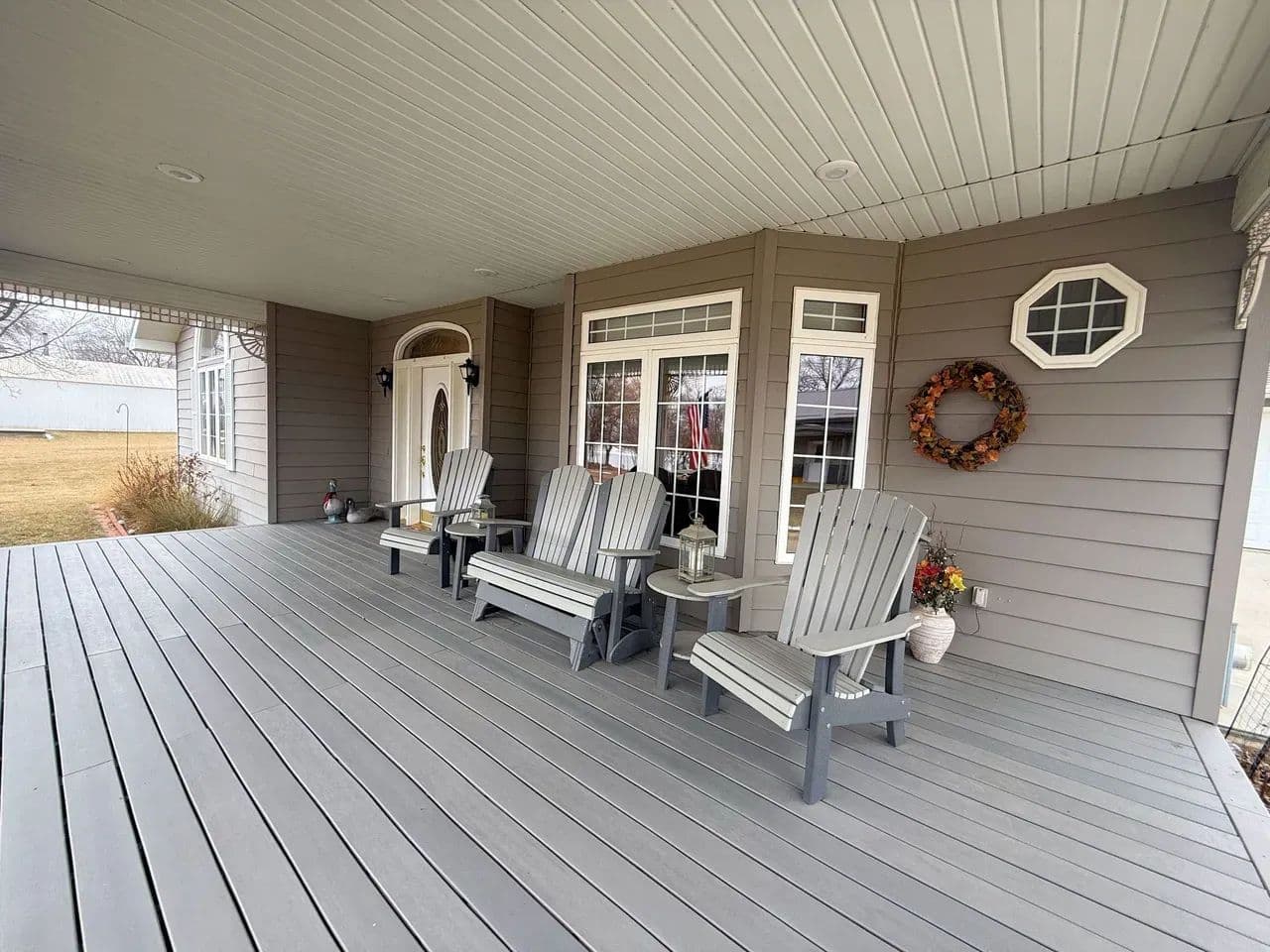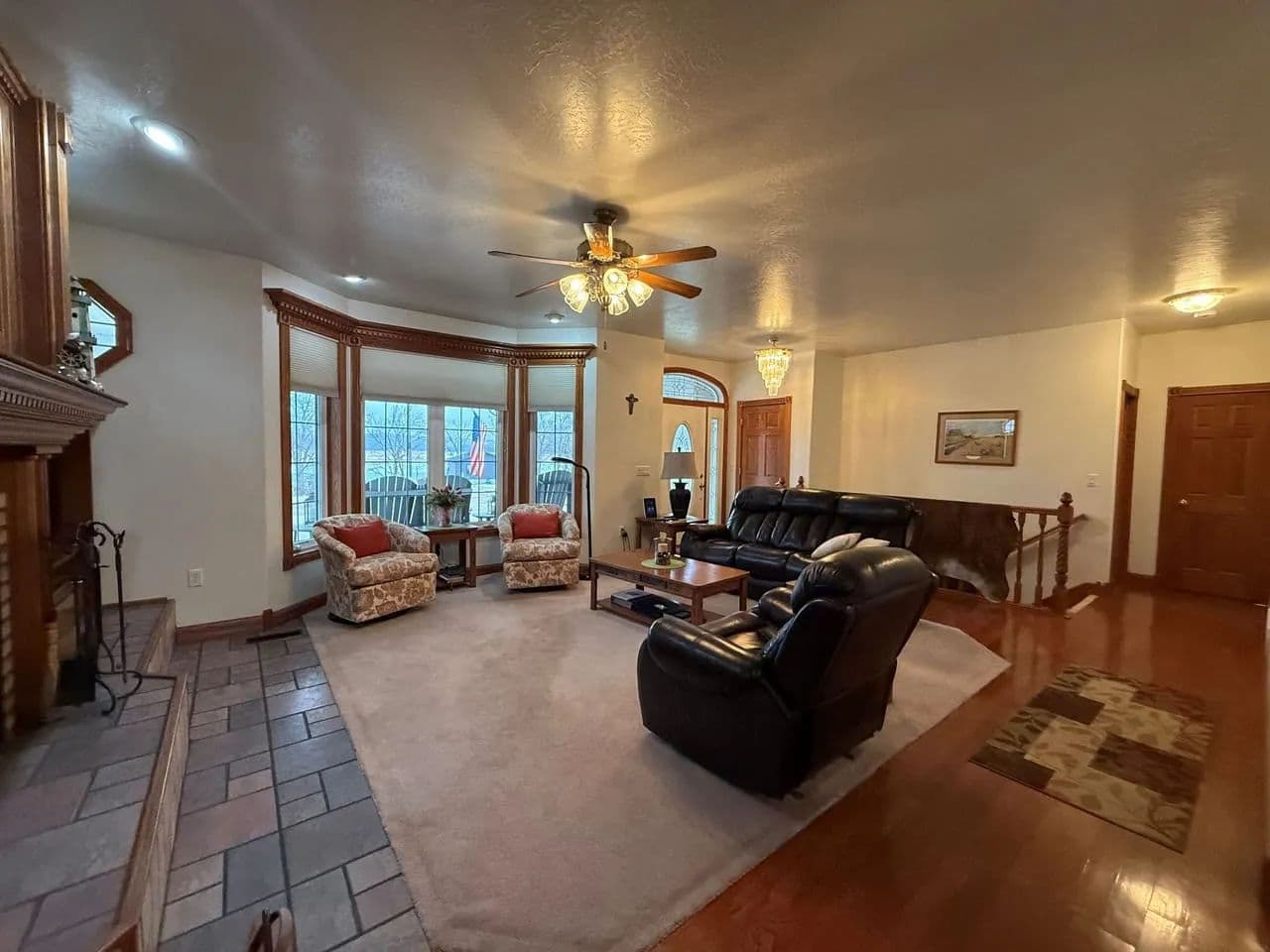 The main floor of the home offers a large master suite with full bath and a great view looking out over the meandering river as it flows beneath the Standing Bear Bridge. You and your guests will enjoy the cozy wood fireplace in the living room, a formal dining area, and a spacious kitchen with hardwood cabinetry and appliances included. The main level also consists of a second half bath, a laundry room, above grade storm shelter, and a bonus office/sitting area. You will be equally impressed by the quality of the hardwood trim, custom millwork, and modern paint and flooring materials that make up the stately interior finishes. The finished basement includes a second bedroom with egress window, and a third non-conforming bedroom space, a 3/4 bathroom, and a large family room for entertaining. Utilities included B-Y water, a septic system, fiber internet, (2) propane furnaces, central a/c, and a gas hwh, and an electric hwh. The lawn sprinkler system and garden have access to a shared well. A new roof was recently installed in 2024. No matter the time of day, you will enjoy relaxing beneath the covered front porch overlooking the river or resting in the shade watching the wildlife from the covered back patio just off the kitchen.