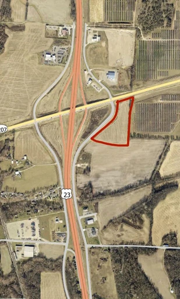 Prime 9 acre commercial corner lot - State Route 23 & State Route 207, Hospital Rd intersection. Positioned in one of the most high visibility and high traffic locations in the region, this exceptional 9 acre corner property offers unmatched potential for commercial development. Located at the intersection of State Route 23 and State Route 207, with direct frontage on Hospital Road, this property is a rare find for investors, developers and businesses seeking a commanding presence along a major transportation corridor. Its combination of accessibility, traffic flow and flexible development potential makes it ideal for a wide range of commercial uses--from retail centers and service businesses to dining, lodging or healthcare-related facilities.