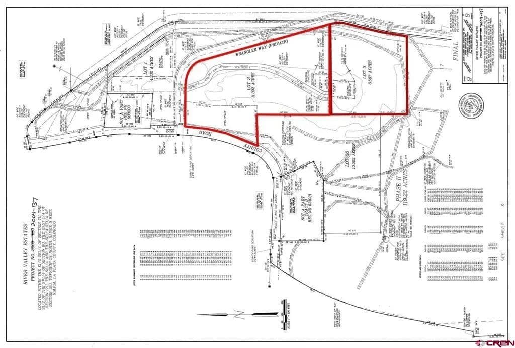 Two executive quality parcels that total just under18 acres just past the subdivision entrance. Located in the "gated" River Valley Estates neighborhood with improved shared access driveway plus electrical power and central water to each parcel. These parcels combined provide privacy and views, plus allow you to build more than one residence, and are completely private with 360-degree views and great solar building sites. Discretionary Durango owners live here for upscale modern living and experience a blend of progressive quality homes along with the charm of a premier gated community. Building sites designed for those who value security, and style, River Valley Estates is an established neighborhood with controlled access, common acres with trails along the Florida River. The 11.4 acre Lot 2, and the 6.5 acre Lot 3 have solar exposure, plus inspiring vistas encourage your new dream home to capture the reason you are in Durango from every room. The Pinon and Juniper native landscaping provides a natural privacy buffer. Ask broker for plans available for options designed specially for each parcel. Owner can choose their own contractor and many designs will be considered by the architectural control committee. All parcels have a central water, and homes require fire sprinkler systems. The minimum square foot home size has been revised to be 2,000 sq ft with architectural review approval. Each parcel comes with a designated building envelope, underground utilities (including electrical power and central water tap). Homeowner's Association fee is $90 per month for each parcel. Just minutes from LaPlata County Airport, served by Durango Schools, River Valley Estates is less than 8 miles to the Three Springs and Town Center stores and services. Flexible and attractive owner financing terms NOW available. Call for details - you won't want to miss this opportunity!