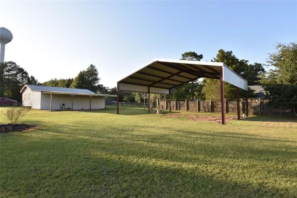 Beautiful 10 Acres of pasture, fenced and crossed fenced. Workshop, Well, Equipment storage Pavilion and small barn with tack room. Lake Livingston Water available as a public water service as well. Fenced and crossed fenced. Pasture is in great shape. Cows, horses or other grazing animals. Ready to go. Build your home or bring your mobile home and start your new life in the country.