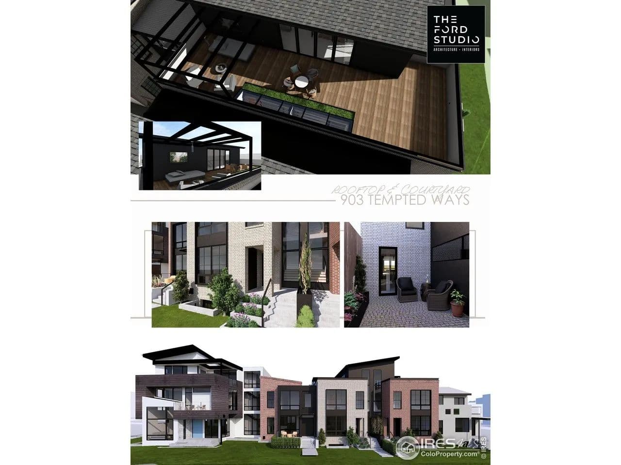 READY TO BUILD! 3 lots for three luxury townhomes in Prospect New Town, named "The coolest neighborhood in America." 15 miles from Boulder. All building plans for these specific home designs have been fully approved by the City of Longmont and the Prospect HOA, ensuring a smooth start to construction. Water, Gas & Electric at Property. Projected sales volume for the three completed townhomes is $4.3 million. Investor, developer and builders dream to have all of the groundwork done. Included is everything you need to build: approved architectural plans, soil report, survey, projected HERS report and more. Including appraisals for each of the townhomes showing full market value after completed construction. There are three lots to be sold together at a total of $1.2 million (400K each). This listing is one of the three lots. The other two lot addresses are 901(MLS#1042570) and 905(MLS#1042575) Tempted Ways Dr., Longmont. The plan for this lot features building a 3 story Urban Modern townhome with over 4K square feet. Projected market pricing after home completion is $1,475,000. Appraised value is the same. Bright open floor plan with 5 bedrooms, 6 bathrooms including a private flex space for a guest suite. 3 car garage, roof top deck, media room, elevator, art studio and office/flex space. Prospect offers a sense of community with features like a town square, a dog park, and public spaces for events. Walkable to a variety of shops, restaurants, wellness centers, as well as parks and other community spaces. Architectural plans by The Ford Studio are available for use under a separate license agreement. Buyer must obtain a one-time construction license directly from The Ford Studio for the construction of the Tempted Brownstones. The Ford Studio must perform any plan modifications, interior design, architectural modifications, and construction administration services associated with these plans.