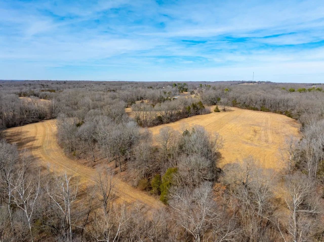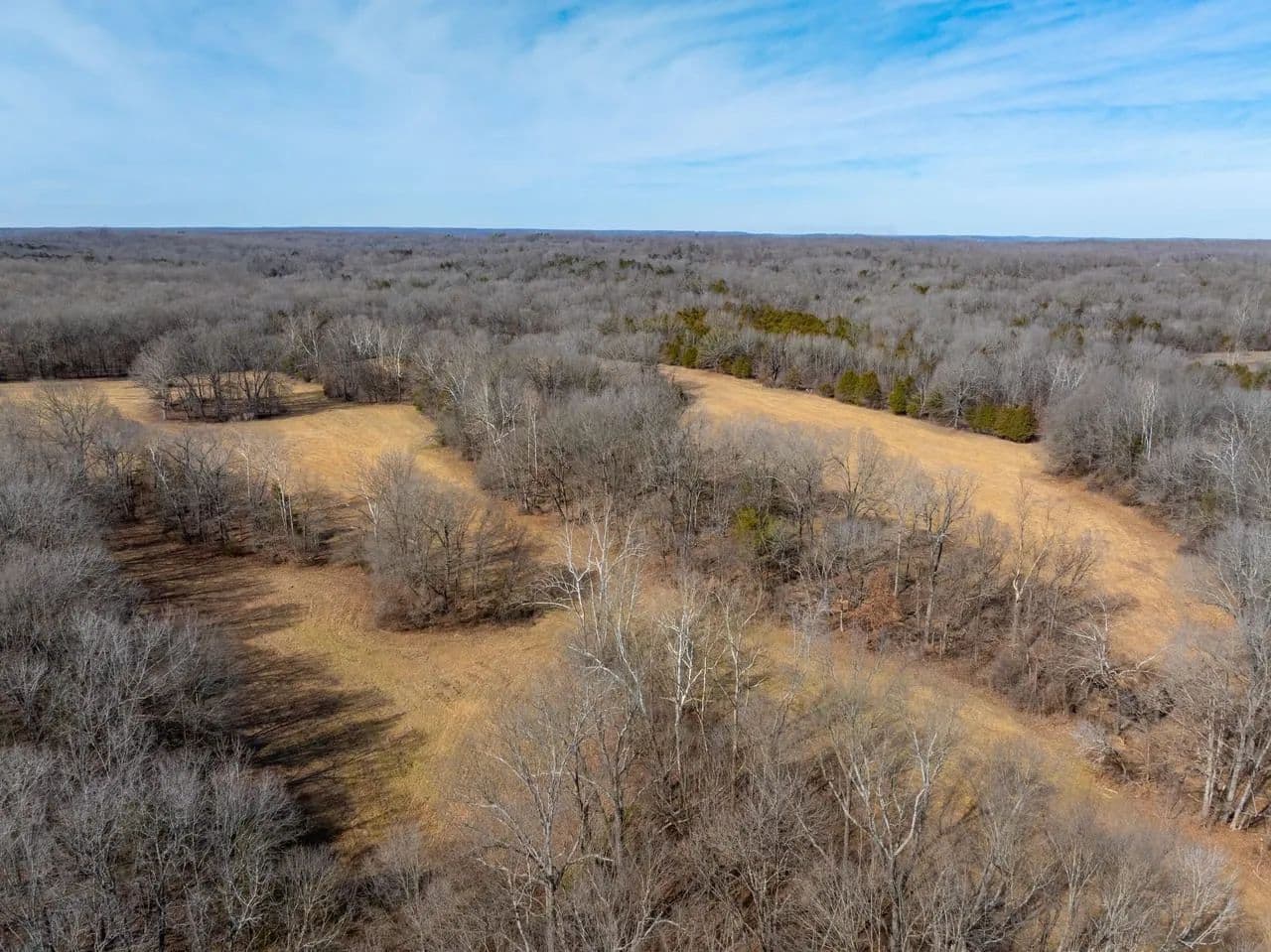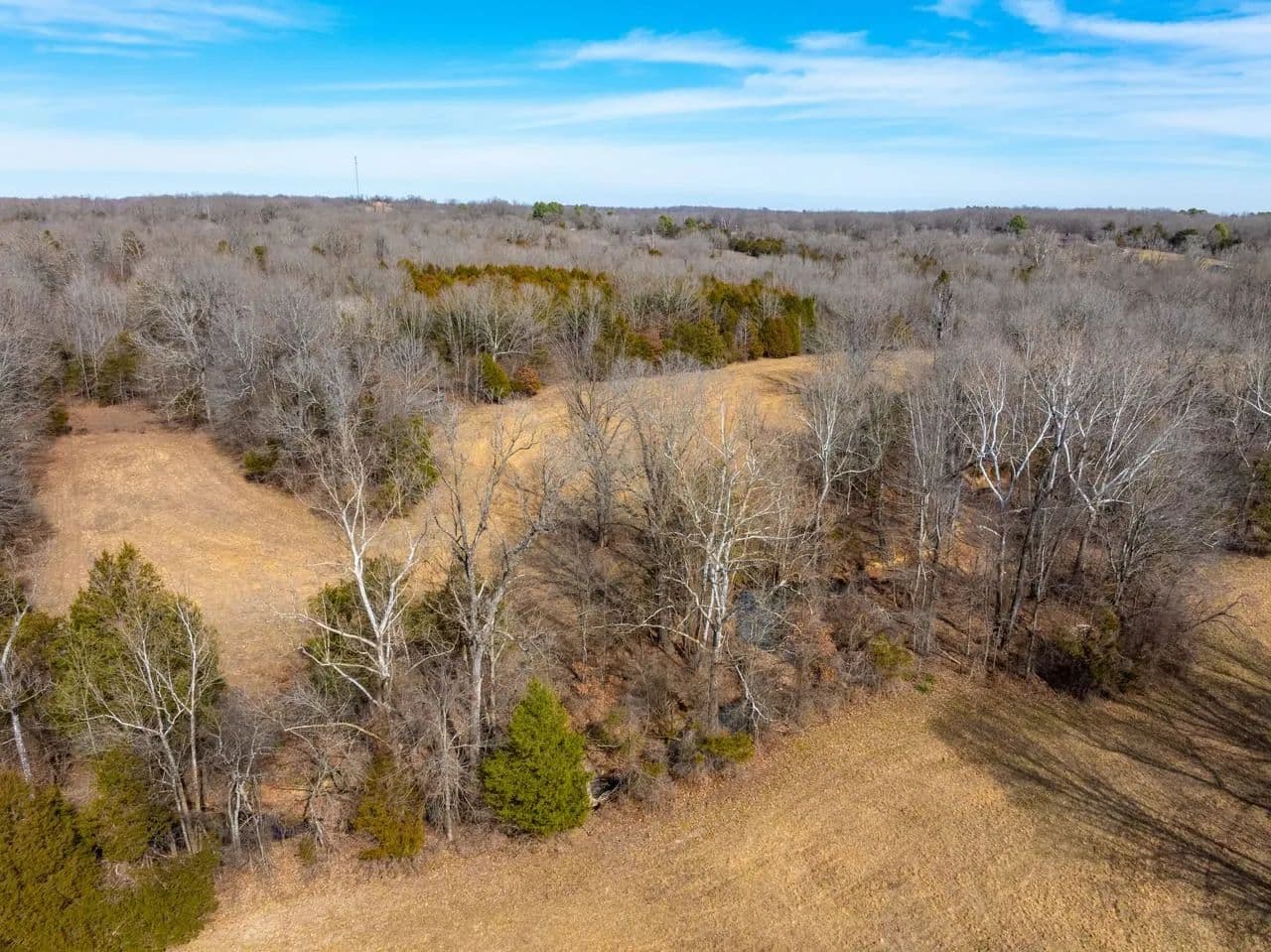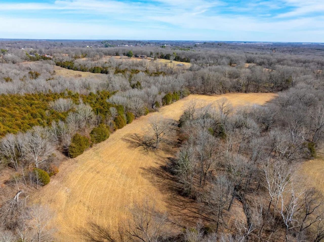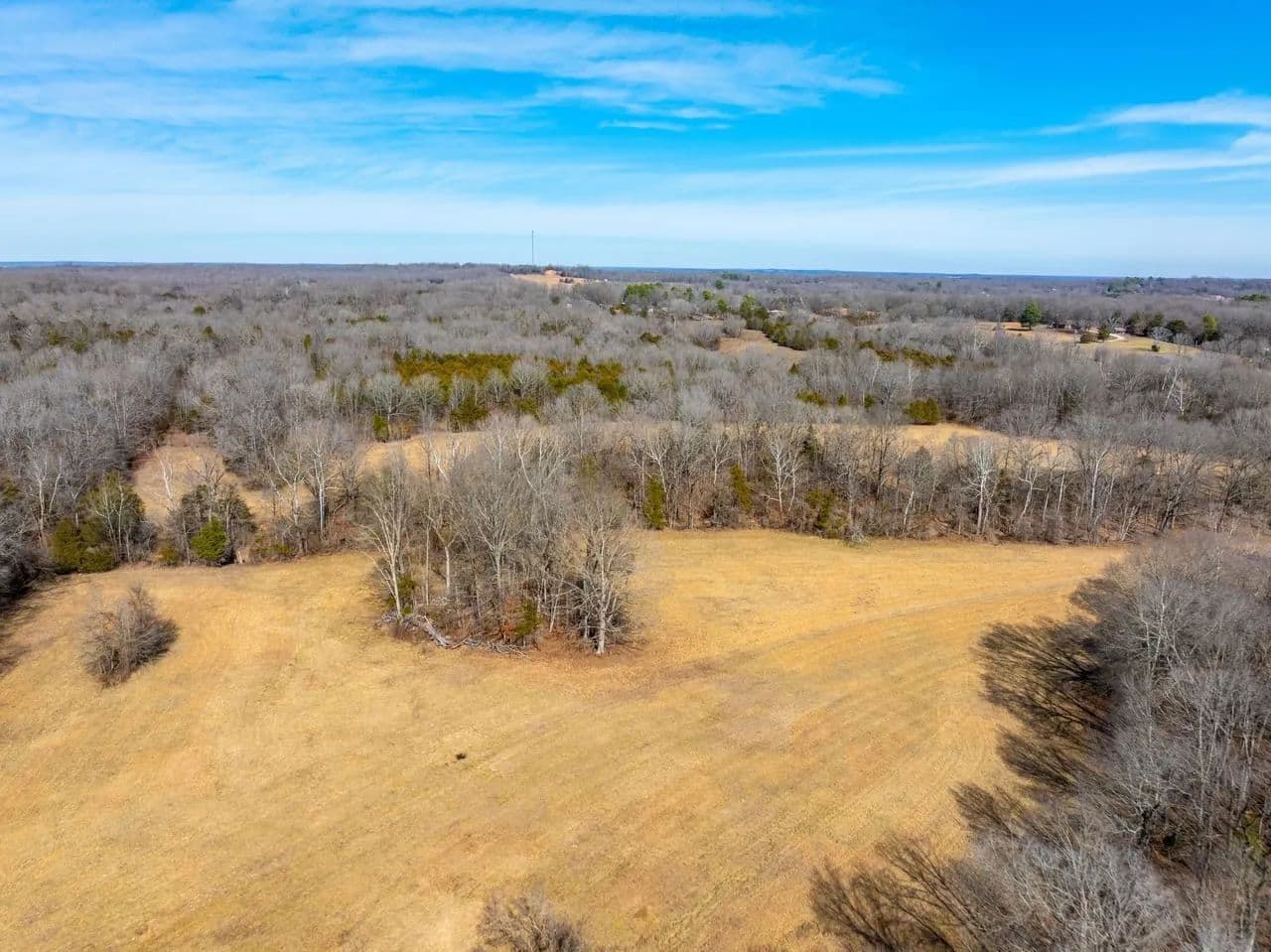 Approximately 35 +/- acres consist of beautifully rolling, productive pasture and hay ground — and when we say pasture, we mean true, usable hay fields currently being cut. The remaining 65 +/- acres are mature hardwood timber, creating a perfect balance of open ground and wooded privacy.