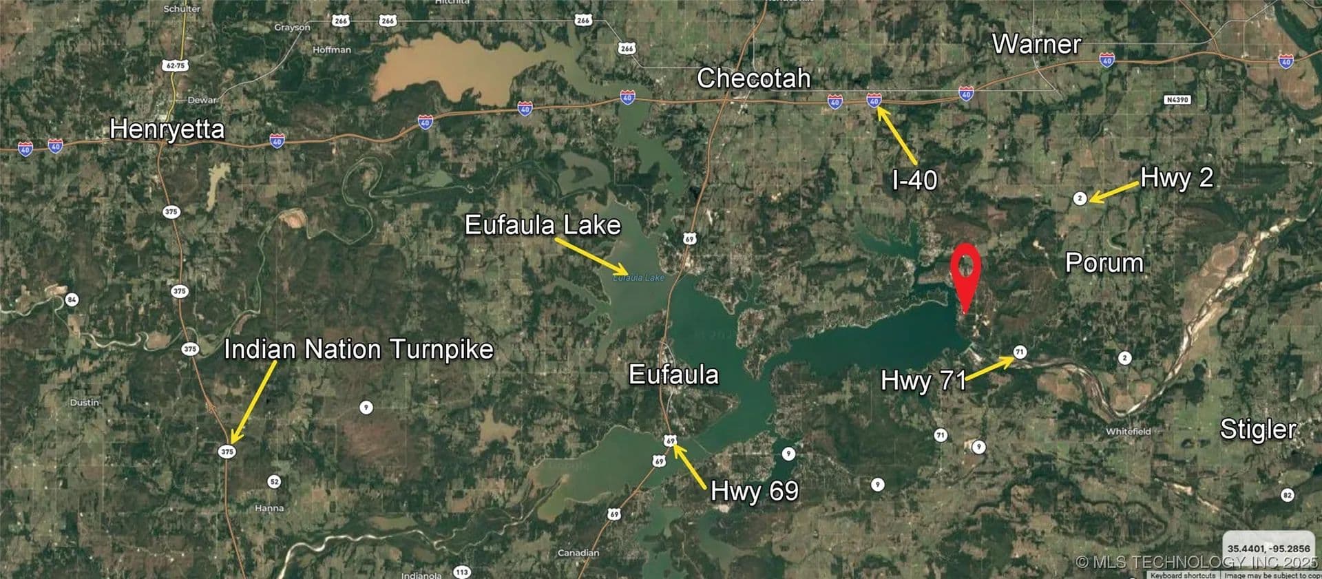 This 9.7-acre wooded property delivers the best of lake living with room to breathe. Tucked near Lake Eufaula and just minutes from Beacon Point and Sea Blue Shores, the land offers privacy without sacrificing convenience. Infrastructure is already in place with a new gravel driveway and culvert, rural water meter installed, electric at the road, and fiber internet available. A completed perc test makes this tract build-ready for a custom home, barndominium, or weekend getaway. Access from both ends of the property provides flexibility for home placement, trails, or recreational use. With mature trees, rolling ground, and plentiful wildlife, it’s ideal for hunting, hiking, or simply unwinding outdoors. Less than two miles from the dam and close to multiple boat ramps and beaches, you’ll enjoy quick access to fishing and boating. Easy drive to I-40, Warner, and Checotah. Financing options available for qualified buyers. More land available.