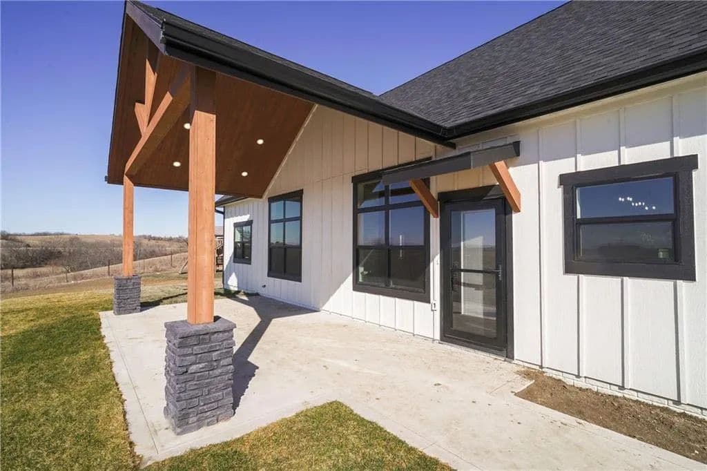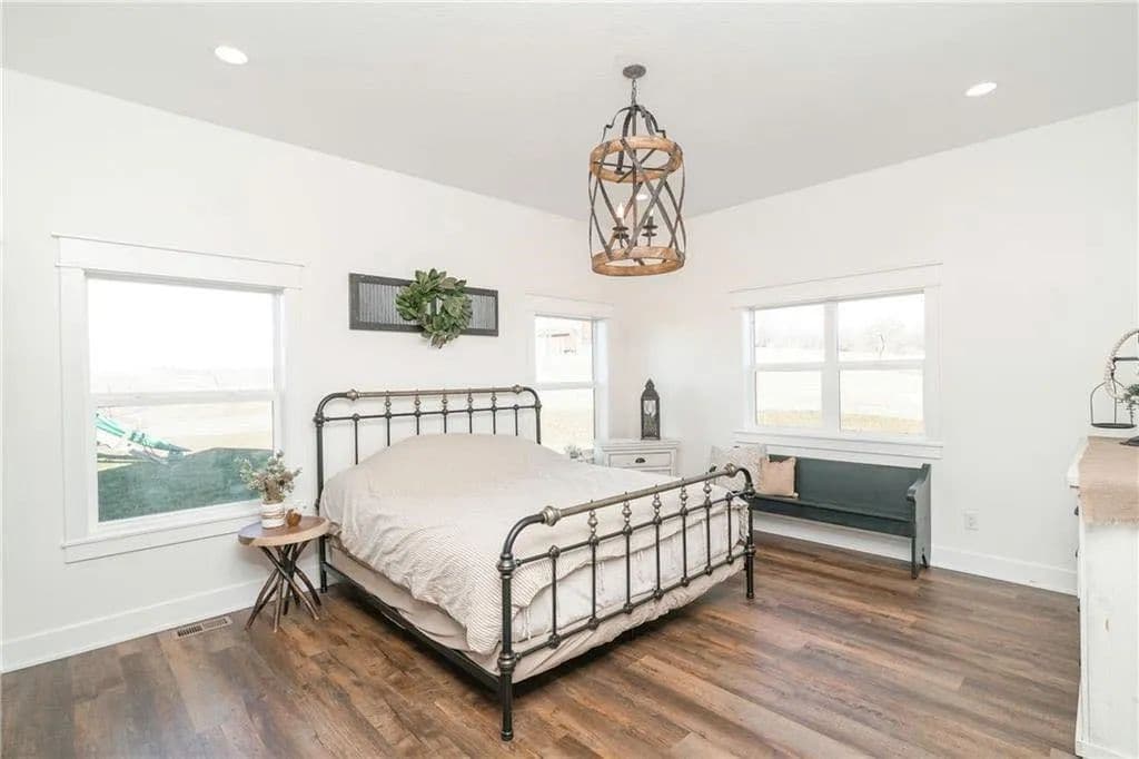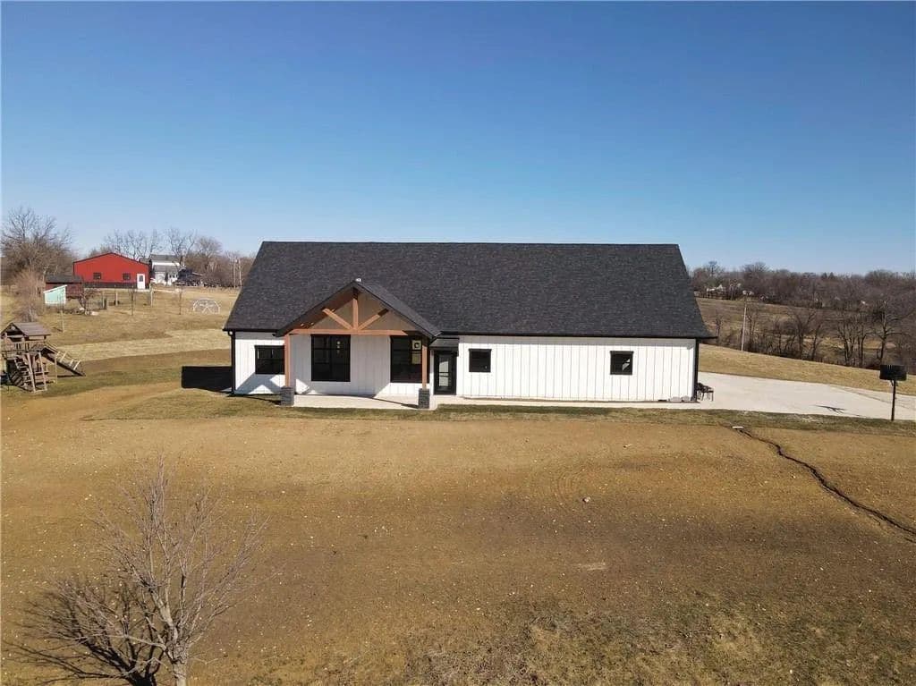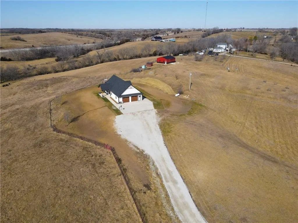 Experience the tranquility of country living on 5 acres. Dramatic views await you as this property delivers serenity merged w/ modern amenities. Custom ranch with zero- entry recently built in 2023! Great room overlooks acres of pasture with Stephens State Forest in the background. Easy access to the highway, yet the rolling hills conceal it. Inside you'll be impressed by the chef's dream kitchen w/ custom cabinets, walk-in pantry, SS appliances, induction cooktop w/ hood, and substantial quartz island that serves as the heart of this home. Open concept living room w/ 10' ceilings features a striking white stacked stone fireplace. Primary bedroom retreat with custom double closets and an en suite bathroom w/ farm sink dual vanity, step in shower, and luxurious soaking tub. Wide plank LVP flooring runs throughout the entire home. First floor laundry room. Finished basement has 9' ceilings, a giant rec room, built-in workstation, full bath, plus 3 bedrooms all w/ custom walk-in closets. Entrance from the fully insulated attached garage provides a mudroom and drop station for organization. Outside enjoy barn-wood stamped concrete patio and covered patio, a large fenced garden area, grape trellis, 6 fruit trees, established rhubarb and raspberries, and a 35x40 outbuilding with built-in shelving creating endless opportunities for storage, hobbies, or a workshop. 1 hour to downtown Des Moines, 30 minutes to Indianola, 10 minutes to Chariton, 20 minutes to Osceola.