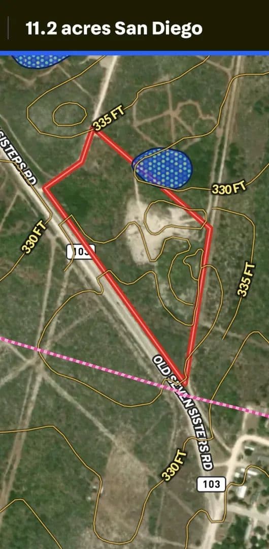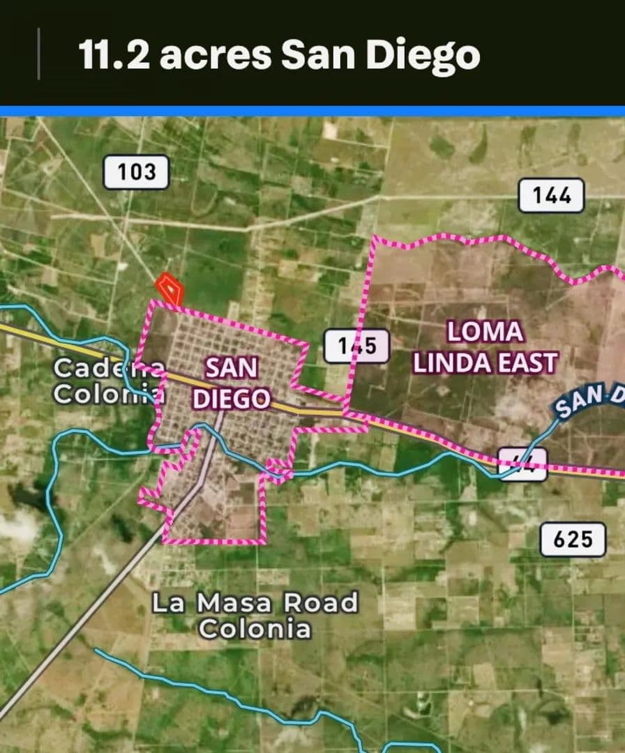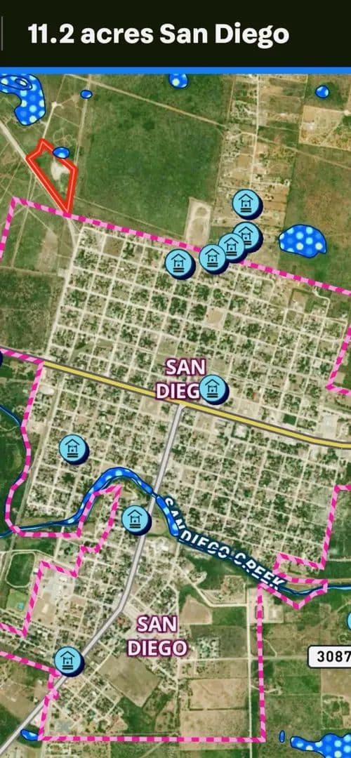 12.2 acres just outside of the northwest corner of San Diego, Texas. San Diego water tower only 1-2 miles from ranch entrance. Wildlife Exemption requires 10 acres, you have an additional 2.2 acres to build your homestead for homestead exemption. Far enough from town to feel remote and private, yet still close enough to be at a local restaurant 20 minutes after the morning hunt. Just a few miles away from the home of Freer's Muy Grande Contest, and the annual Pan De Campo contest! This convenient parcel has direct road access off Old Seven Sisters Rd (CR 103). Thick South Texas brush making things attractive for deer, hogs, quail and turkey, with an open 3 acre area ready for a new pond or pavillion area or shooting range- the options are many!!