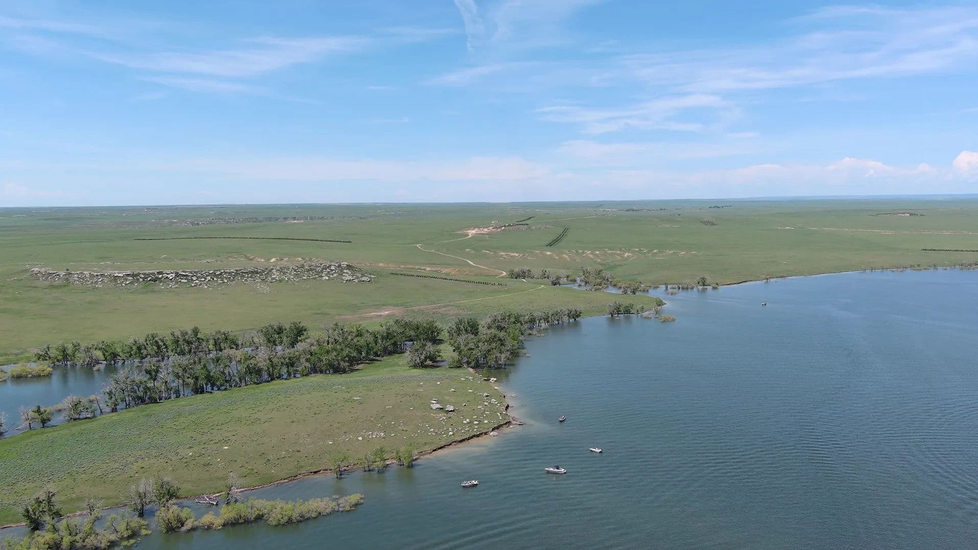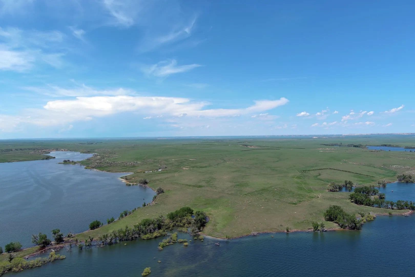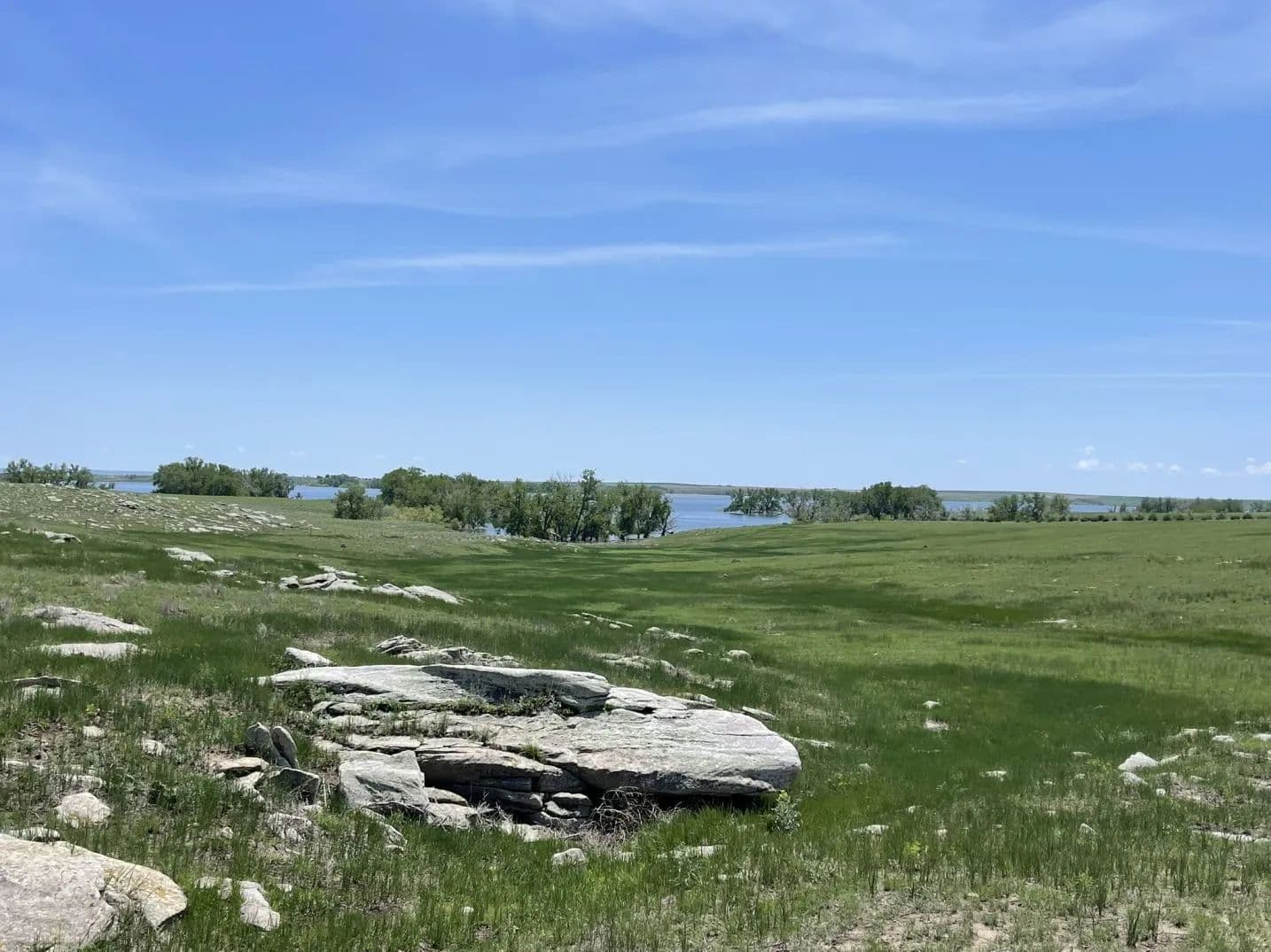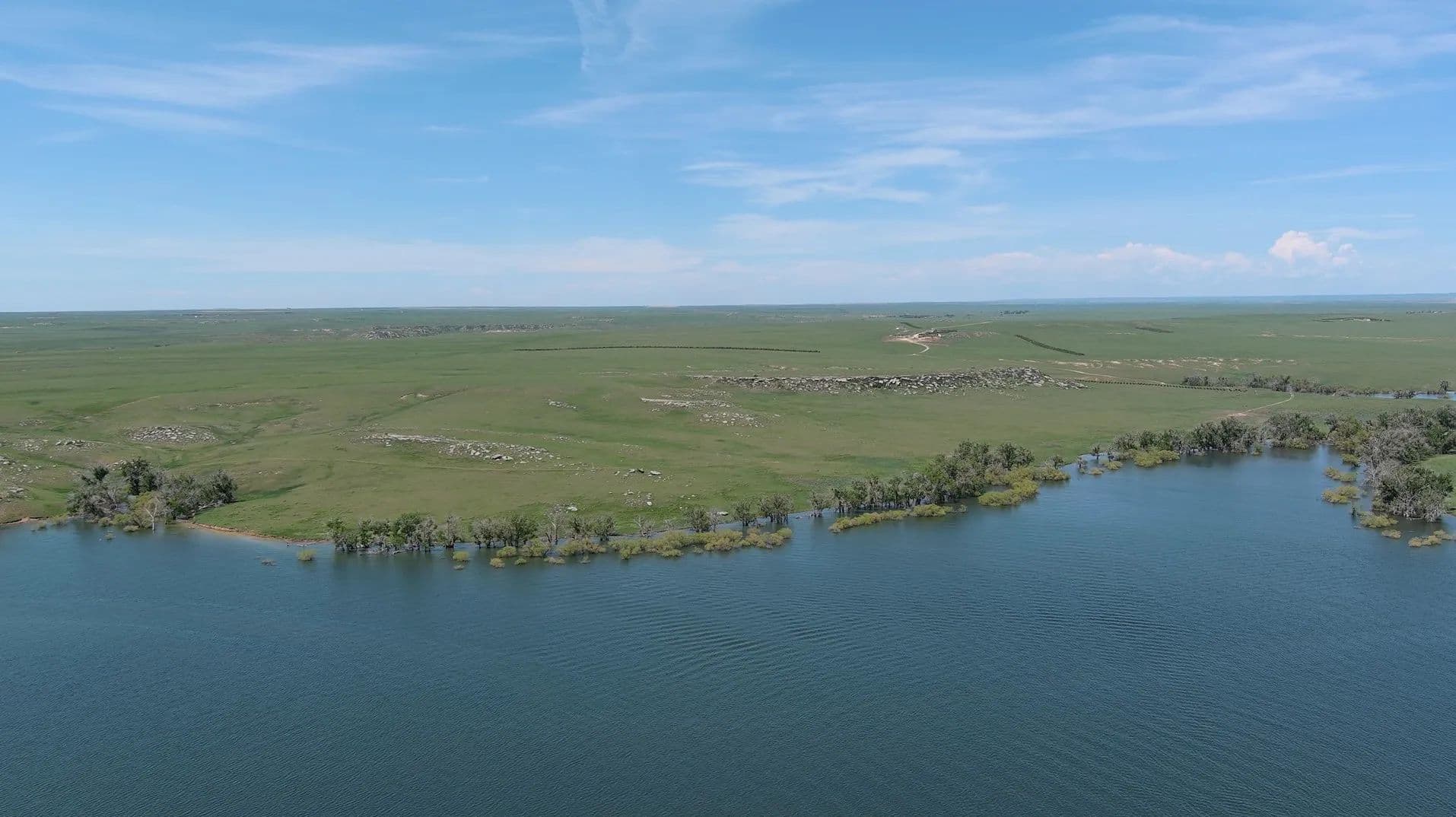 Topographical diversity with open, rolling plains, rock outcroppings, teepee rings, and sub-irrigated areas along the shoreline