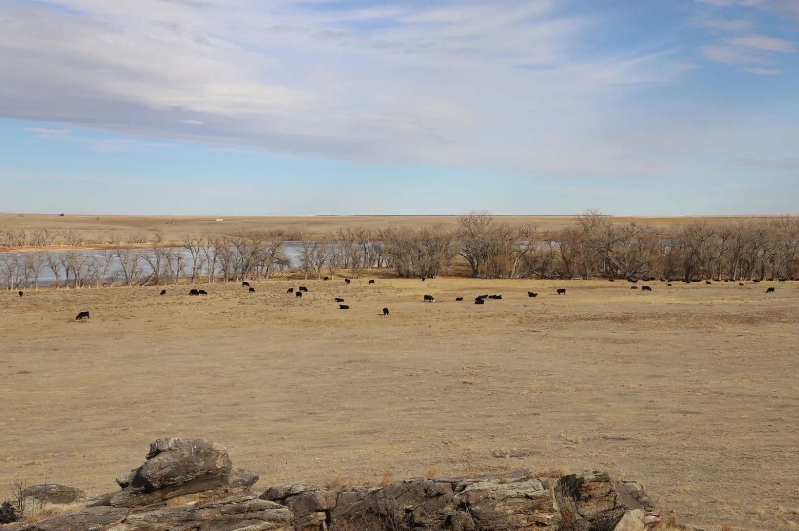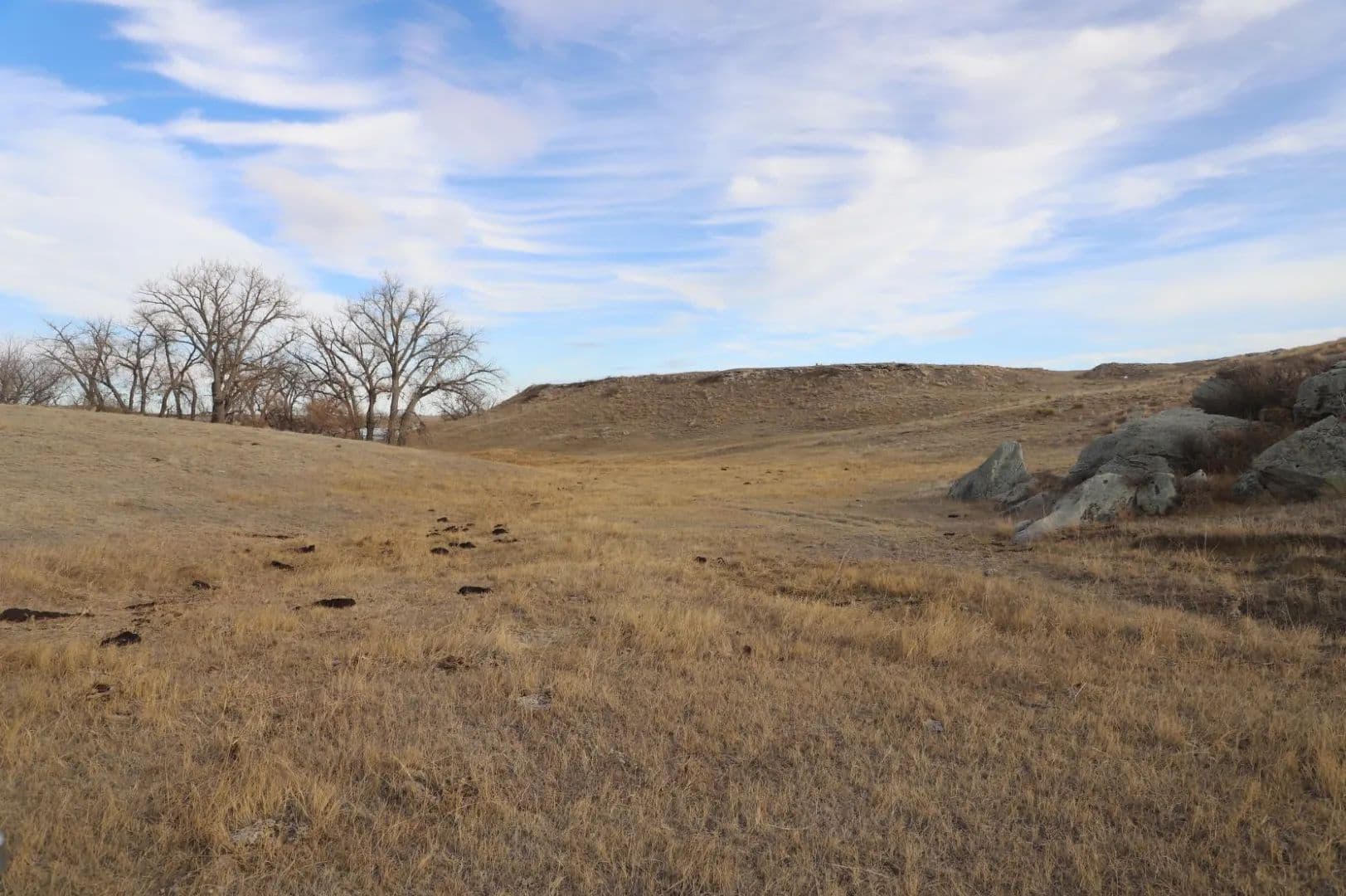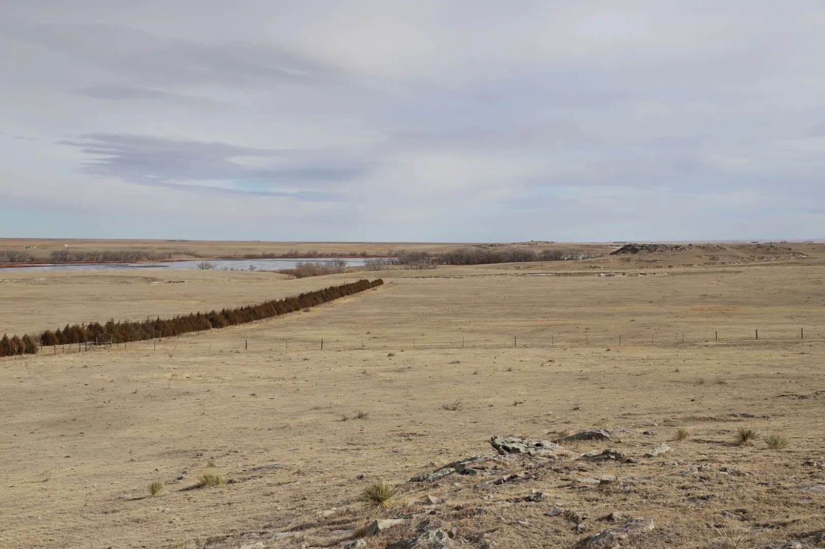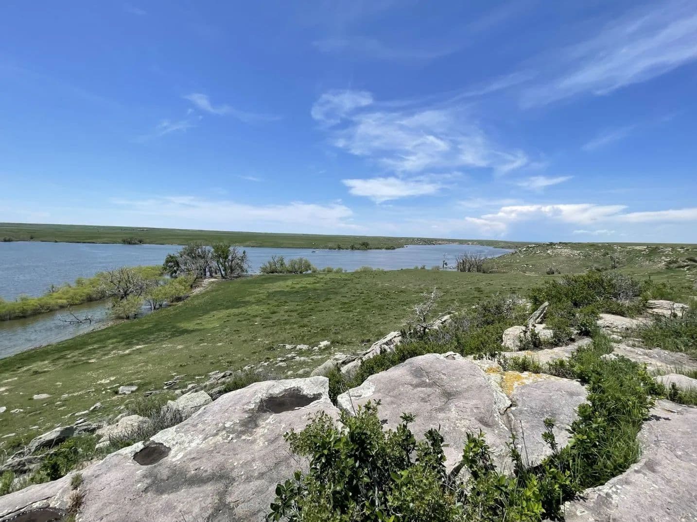 Topographical diversity with open, rolling plains, rock outcroppings, teepee rings, and sub-irrigated areas along the shoreline