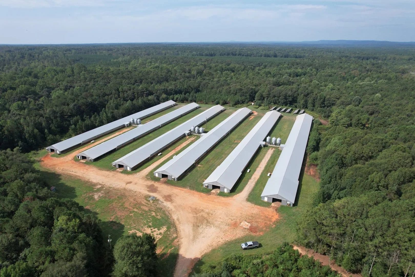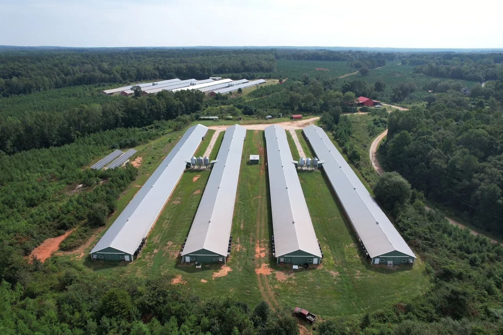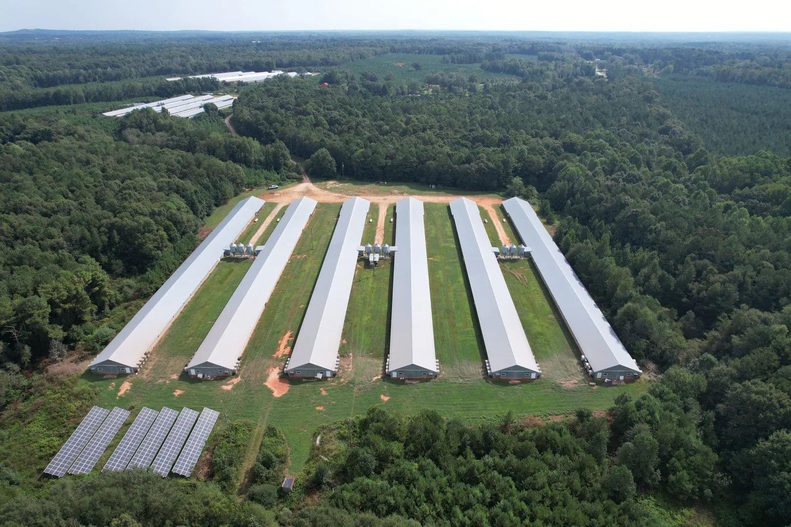 Haddock Broiler Farm is a rare opportunity to purchase 16 broiler houses near the town of Barnesville, Georgia in Lamar County. The farm has 16 40×500 houses. Five houses built in 2007, four houses built in 2001, six houses built in 1995, and one house built in 2022. This farm grows for Perdue raising a 35 day old bird on 5.5 flocks per year. The farm sits on 160+/- acres. There is a large 32x48 shop with an area that could easily be converted into living quarters complete with HVAC and heat. The gross annual income has been around $800,000. This farm recently received a raise. A noteworthy feature of this farm is all 16 houses are solar powered keeping the energy cost low.