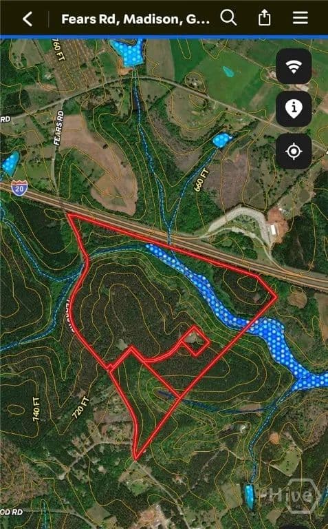 155.16 acres with approximately 3,300 ft of road frontage, wooded with about 95 acres of timber (est. value $76,000 per seller). Features a 2BR/2BA cabin (1,075 sq. ft., built in 2004, metal roof, pine flooring) sold AS IS; currently leased but can be vacated with notice. Also includes a 40X31 pole shed, creek, and hunting lease for potential income. Excellent opportunity for recreation, farming, development, or a private retreat. Property is in CUVA tax conservation and must remain through the current term. Appointment required, no entry without agent permission. Convenient to 1-20 and US Hwy 441/129 near Madison. This property is offered as a stand-alone tract or may be purchased in combination with the adjacent larger tract for an expanded acreage opportunity, see listing #CL340625 (2470 Fears Road) or listing #CL344239 (0 Fears Road).
