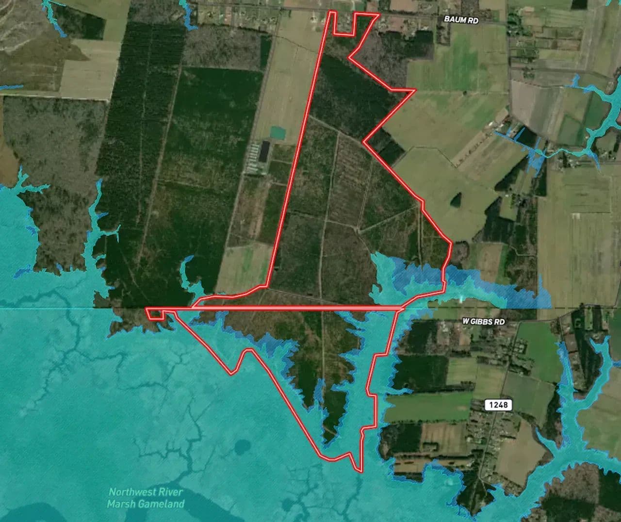 This offering is 2 contiguous parcels being 467 acres in Va Beach, Virginia and 266 acres in Currituck Co, North Carolina. Listing price includes both with the contiguous acreage totaling 733. The Virginia acreage, located in the Blackwater area of Va Beach has road frontage on Baum Rd and is easily accessed by this city maintained paved road. The NC acreage is located in the Gibbs Woods section of Northern Currituck County and accessed from the NC side via an easement off W Gibbs Road. The Virginia tract is enrolled in the Agricultural Reserve Program (ARP) which is a conservation easement that restricts development, the NC acreage is zoned Single Family Isolated, and that it is. These tracts are offering the opportunity for a buyer with the vision to create a wildlife mecca! The right vision, and then implementation can nurture this property into a “hot spot” for big game such as deer, turkeys, and bear as well as numerous types of waterfowl. All have been spotted on these properties. A game management program and some strategically placed food plots and/or impoundments can create a hunting paradise. What an excellent opportunity to get off the grid but still be within 20 minutes of Chesapeake and Virginia Beach This is an opportunity to create one the most special recreational retreats in this part of the world. Especially if you consider the equestrian opportunities. There are approximately 11 miles of established interior road system and ditching. This property is bound to the south and west by 1267 acres of the Northwest River Marsh Game lands. To the west, just a bit, there is also 2,000 acres +/- of VA conservation lands and other municipally owned areas. To the east lies Nature conservancy lands, the North landing River area, and then Back Bay. This property is practically surrounded by waterfowl flight paths. There's roughly 70 acres of seasonally wet woods. The overwhelming majority of acreage contains excellent upland soils. There is 70 acres of 20–25-year-old pines ready to harvest with the remaining timber acreage mostly 11-year-old planted loblolly pines which at maturity will provide a significant timber harvest income. Schedule a showing today for this rare opportunity.