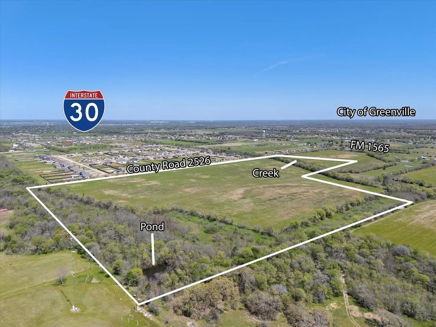 Bordering Twin Pines (1AC lots), a nearby planned residential subdivision, the property benefits from proximity to a 16-inch water line installed by the City of Royse, which may potentially serve the tract. The property lies within both the Royse City and Union Valley ETJs, located less than three miles from I-30 and under 20 minutes from Rockwall and Greenville. New development, Bear Pen Creek, is close in proximity of Subject and has commenced Phase I and installation of sewer.