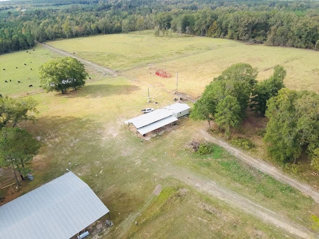 NEW LISTING 400+/-ACRE ELITE TRACT. PRIME SLASH PINES + PREMIUM HARDWOODS across 418 acres of turnkey perfection. 3 FENCED IN PASTURES; cattle ready, zero hassle. 1-64x125 RED IRON BARN + 1 -20x60 POLE BARN with 12x60 leans on each side; ops HQ locked in. RIVERFRONT CABIN; your private hunting lodge on the bank. SMALL HOUSE near pastures; ranch home quarter convenience. MULTIPLE FOOD PLOTS + TRAILS crisscrossing EVERYWHERE. STUNNING PONDS; wildlife magnet; deer, turkey, hogs, ducks ROAM FREE. Timber income + hunting goldmine + ranch powerhouse. Hunt by Dawn, Ranch by Noon, Harvest by Dusk; Own the Legacy. Call today for your viewing!