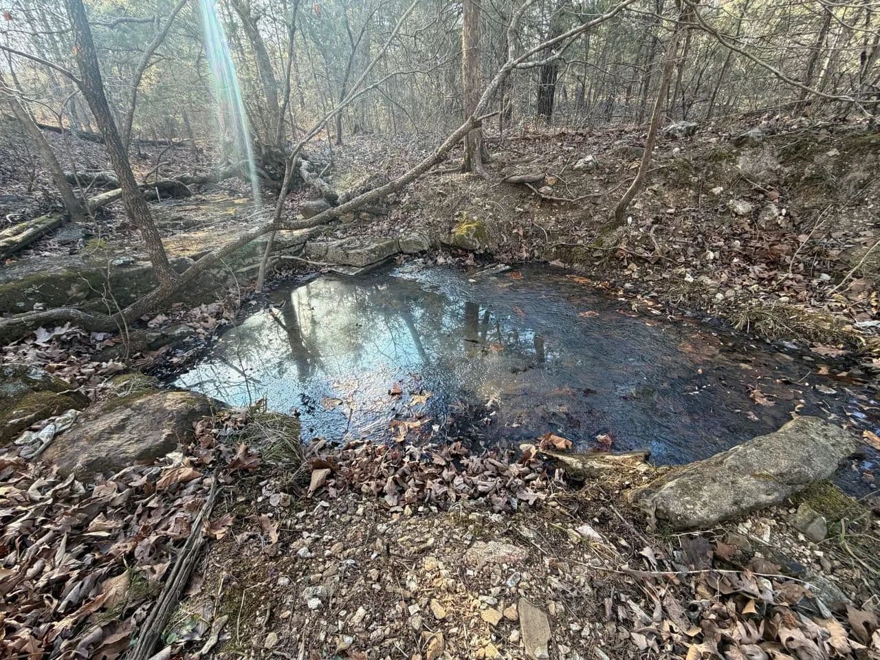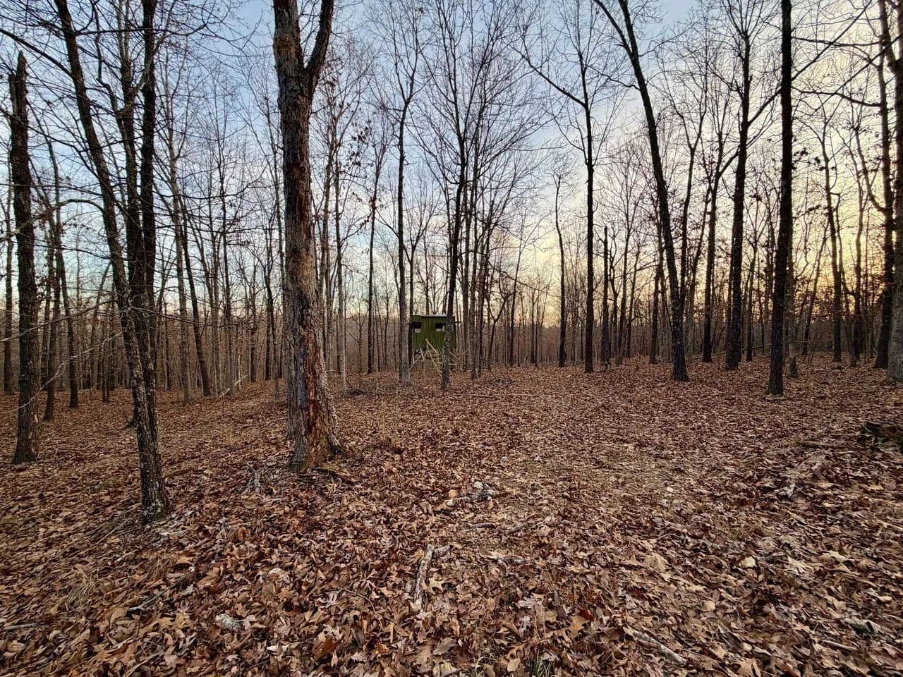 The property is already well set up for hunting, with strategically placed food plots, deer stands throughout, and excellent habitat for whitetail deer and turkey. Some fencing is in place, though the entire perimeter is not fenced. There is a small spring-fed creek that runs through the property along with a pond, providing a consistent water source that plays a key role in holding wildlife on the land year-round.