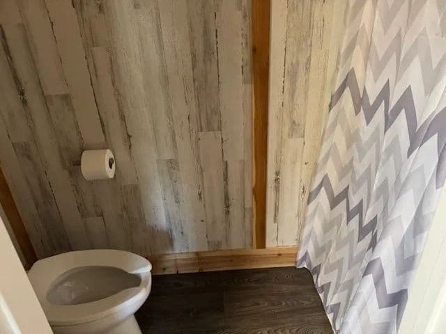 A paved driveway with electric gates leads to a spacious open area surrounding the camp and stocked pond, with trails winding through the wooded acreage. Best of all, the property is completely hidden from the road, offering privacy and peace.