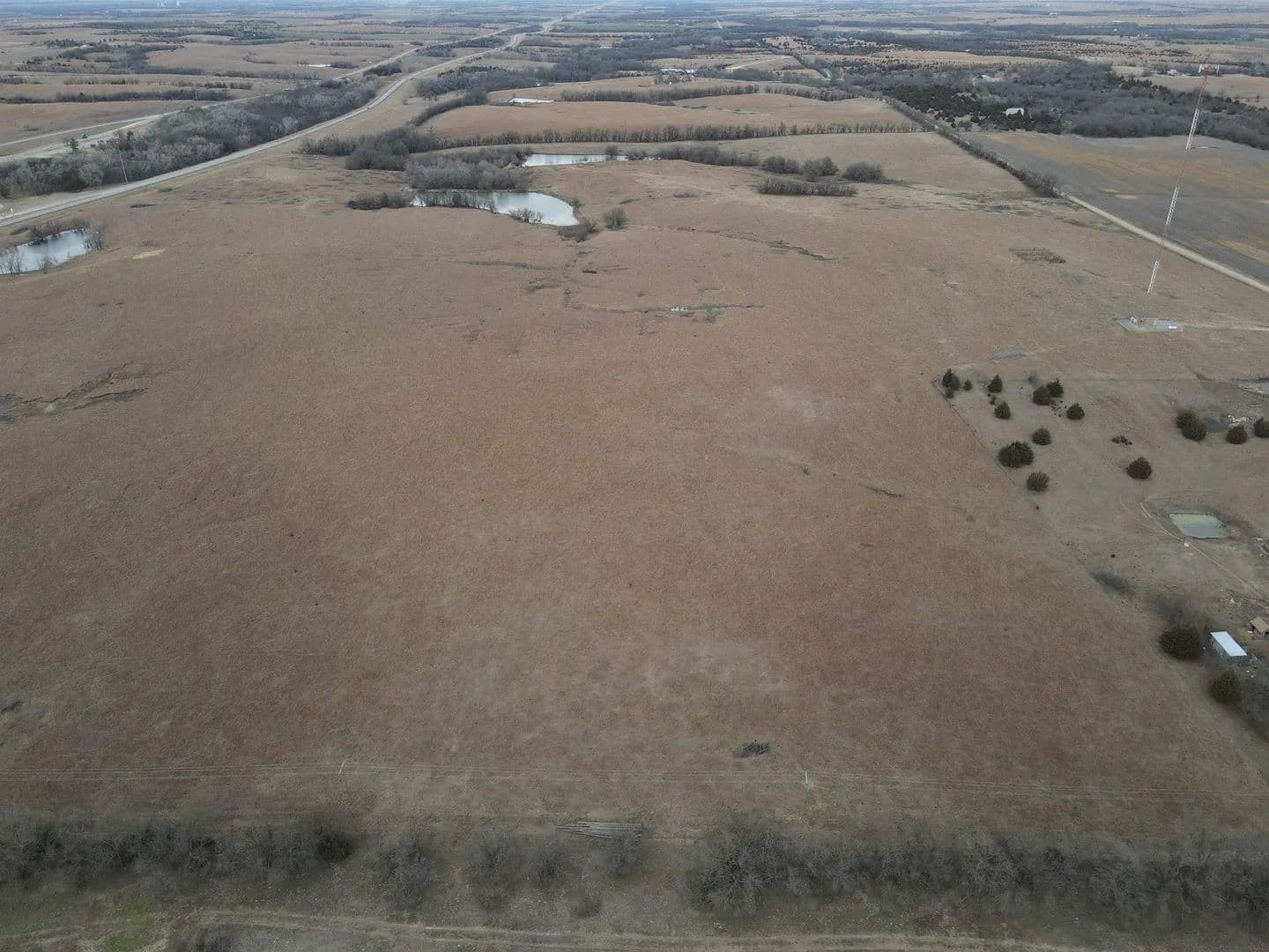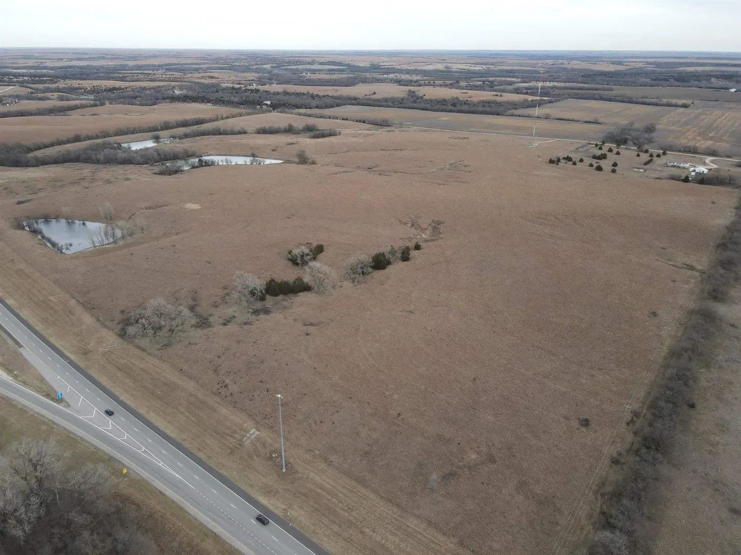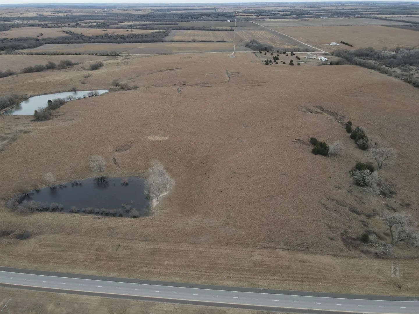 114.5 acres +/- all native grass pasture located Northeast of McPherson on 17th Avenue. Great location with 3 ponds and some tree cover between 2 of the ponds. This would make a great addition for more grazing land, or has the potential for a rural home site. Possession available at closing.