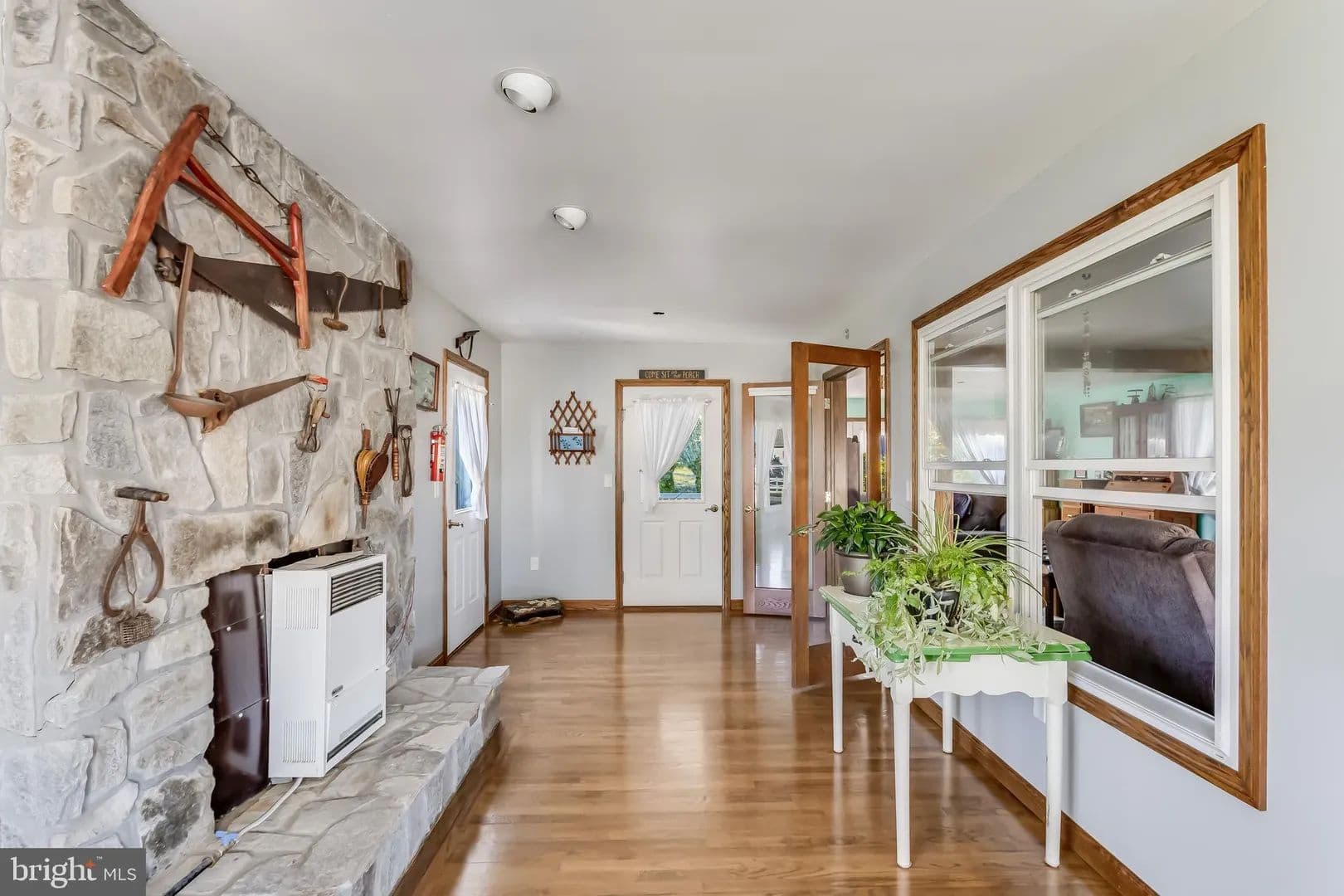 The Amish-built main farmhouse features true main-level living with a spacious bedroom and hall bathroom, alongside a large kitchen boasting a gas stove and custom Amish cabinets. The main floor showcases hardwood floors, a mudroom entry, and a sunroom with linoleum. The family room includes a fireplace that currently has a propane insert, offering the flexibility to be converted back to a traditional wood-burning fireplace or install your choice of insert. Upstairs, find four spacious bedrooms, a full bath with Corian counters, an extra flex/sewing room, and an unfinished walk-up attic.