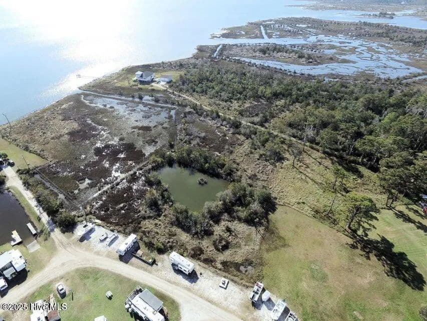 5 acres of land with beautiful views of Core Sound. Over 270 feet of waterfront. This property had a mobile on it on the acreage closest to the road. The septic and well are still in place. Pond was man made by previous owner. Lots of possibilities with this one.....