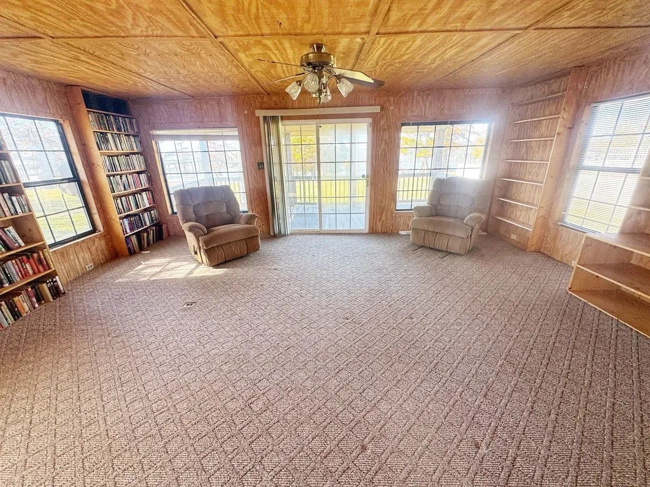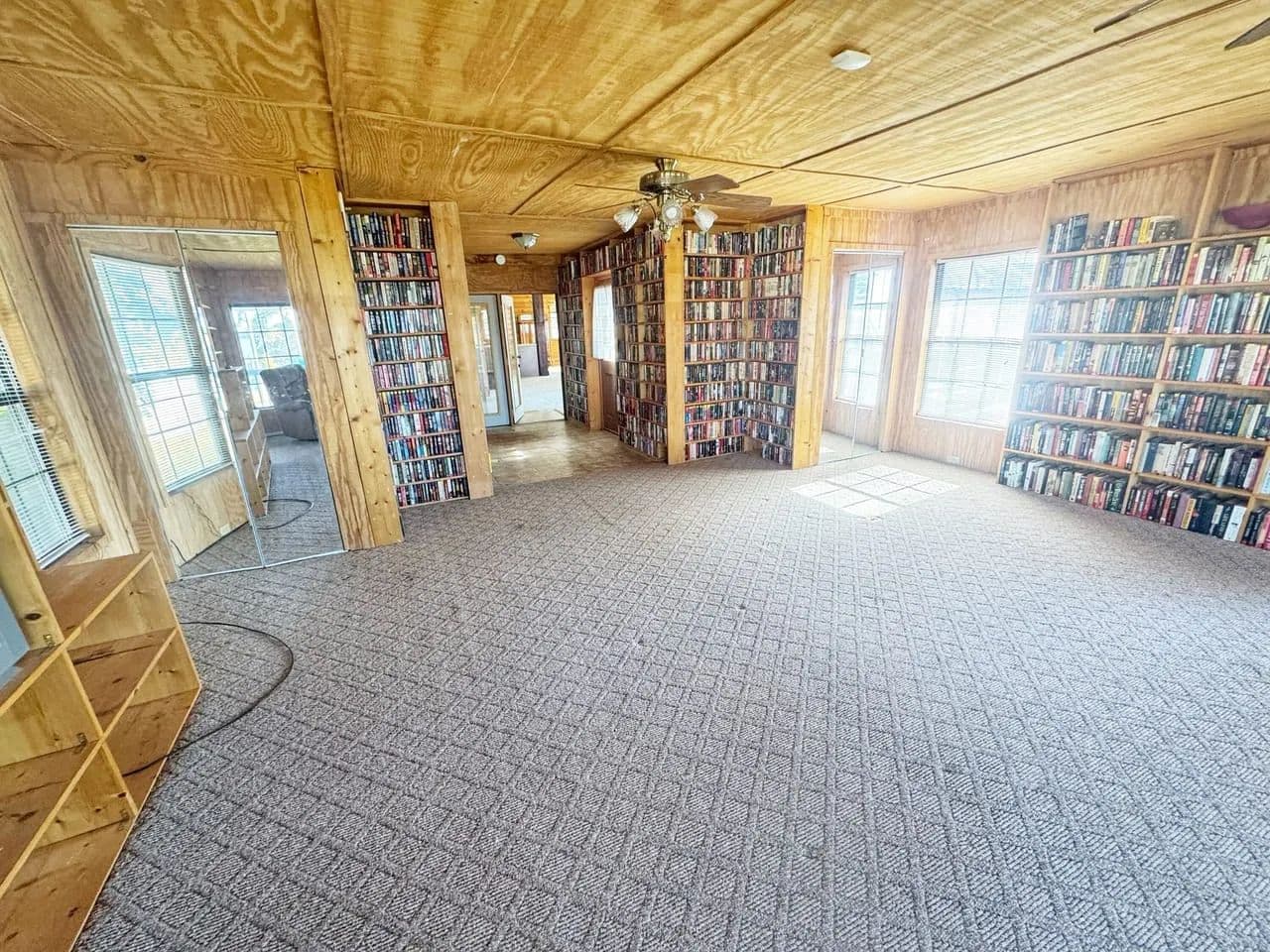 In 2007, a large den/library was added to the back of the house, featuring built-in bookshelves, large lake-view windows, and sliding glass doors opening to the balcony and water. This space offers flexibility as a second living area or potential primary suite with direct lake access.