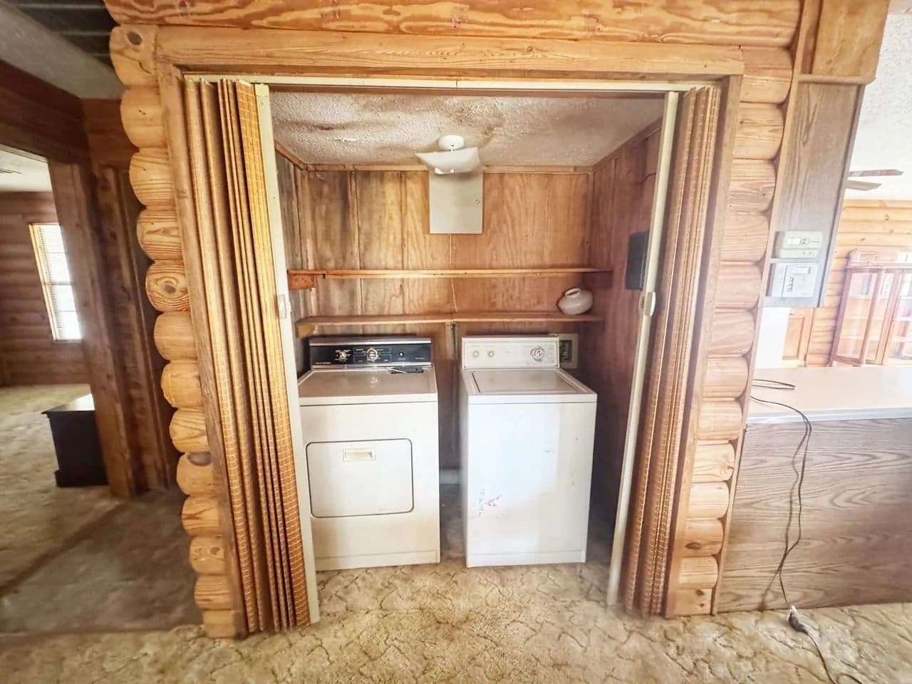 The living room (approx. 1,700 sq. ft.) provides plenty of space for entertaining or relaxing, and a 10-piece rustic living room set is included in the sale. A laundry closet, security system wiring, and motion lights in the front yard add convenience and peace of mind.