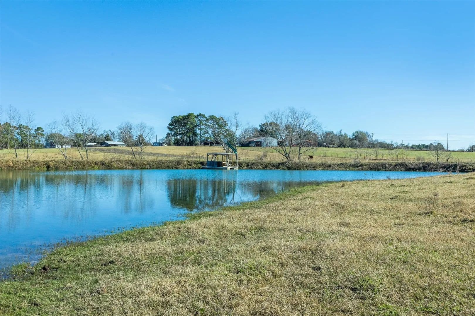 Discover 18.971 unrestricted acres in Plantersville featuring a 4-bedroom, 2-bath home, improved Coastal Bermuda pasture ideal for grazing or hay, and a stocked lake with bass, crappie, and catfish. The lake can be divided into two ponds if desired. With no restrictions, this property offers incredible flexibility for a private ranch, homestead, weekend retreat, or future development. Enjoy rolling terrain, wide-open views, and peaceful country living with convenient access to Lake Conroe, the Texas Renaissance Festival, and the Aggie Expressway (SH 249) for easy travel to College Station or Houston. A rare opportunity to own usable land, water, and freedom in Grimes County.