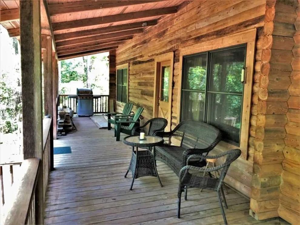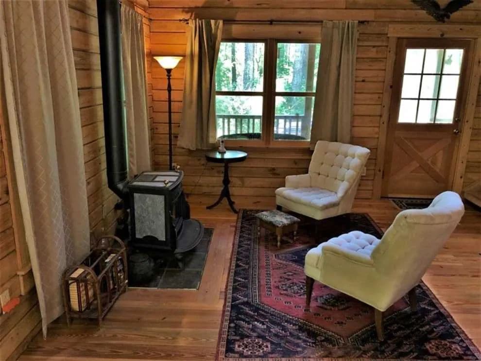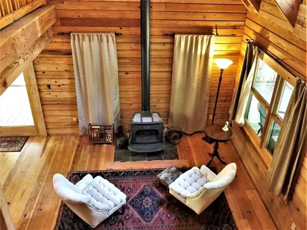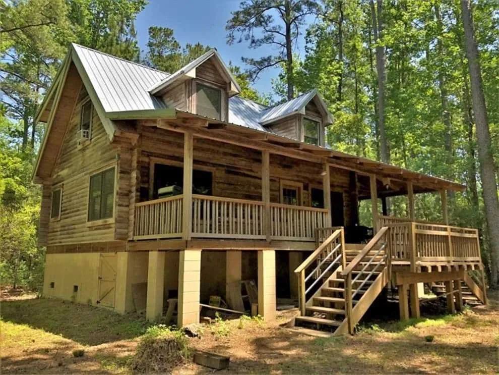 Quaint and Quiet 6.82 acre Waterfront Cabin Getaway! 1500+/-sq. ft. Cypress Log Cabin with 2 bedrooms, 2 bathrooms and gorgeous wraparound deck! Beautiful waterfront access and boat dock for all your recreational needs!
