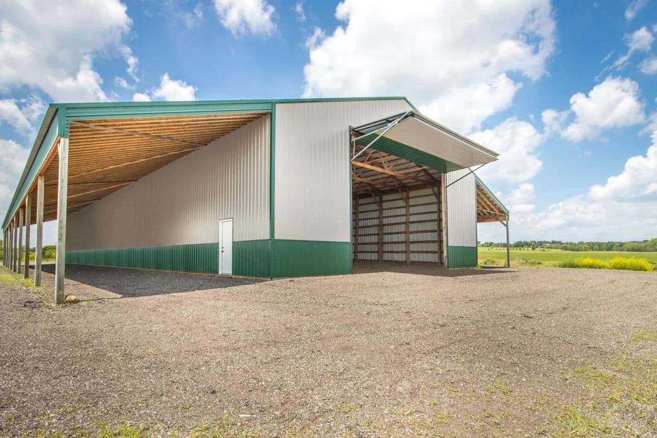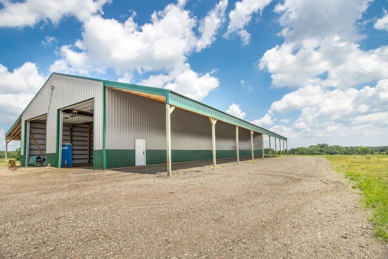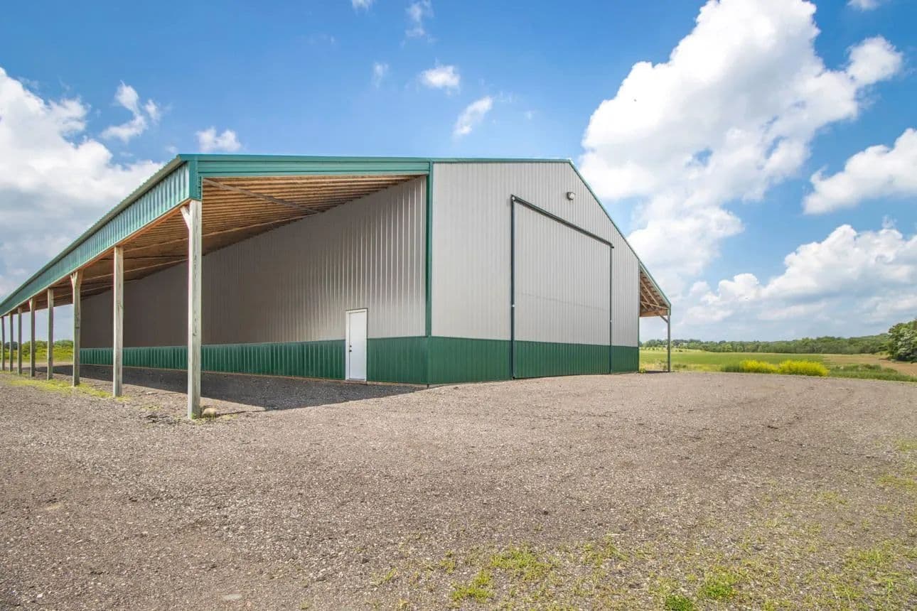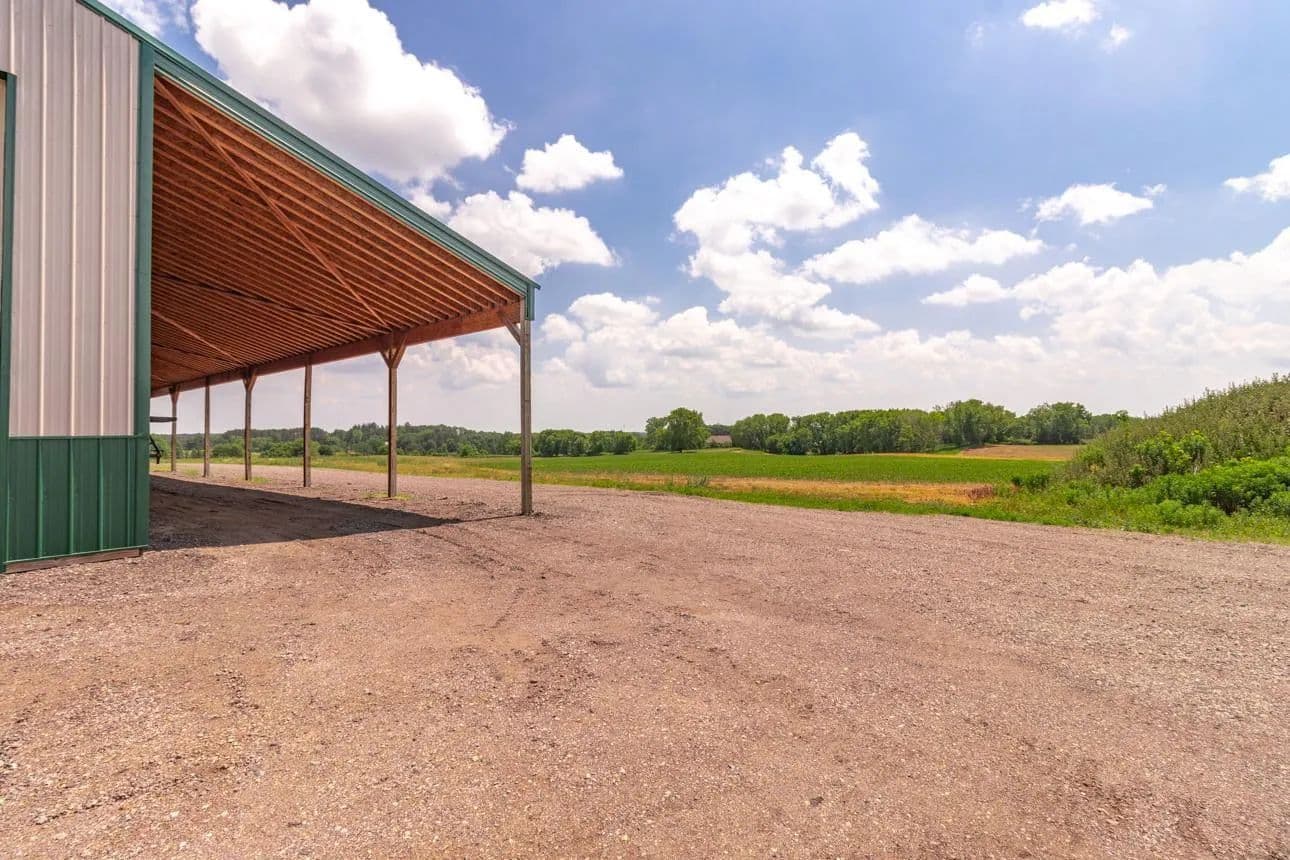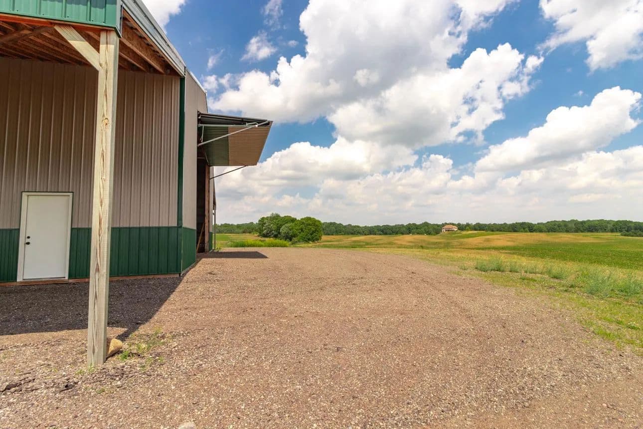 Fantastic location featuring 85.6 acres, 4 separate parcels being sold together. Currently being used and farmed for crops. The buildings are as follows: main pole bldg is 145x50 with 16x144 lean-to on each side of the building running the 144ft. 18 ft. sidewall with large 25x18.6 airport hanger style door on one end and 2 large 16x8 garage doors on the other end. Sufficent for large equipment, semi trucks or a motor coach. 2-220 outlets, fully wired 220 amp power, and inside and outside lights. Building 2) 34x28 garage with 12 ft side wall 16x10 door. Foam insulated walls and doors, concrete floor, 220 outlets 100 amp service & outside flood lights Building 3) 32x16 2 story garage, storage loft, 14 ft slider door, concrete floor. All the buildings are newer and in great condition. Outside power panel w/50 amp service, 110 outlets. All utilities are underground. Close to downtown Marine on the St. Croix. Gorgeous sunsets, a must see!