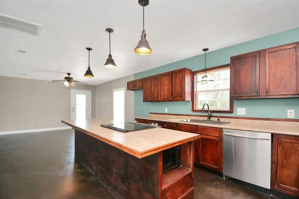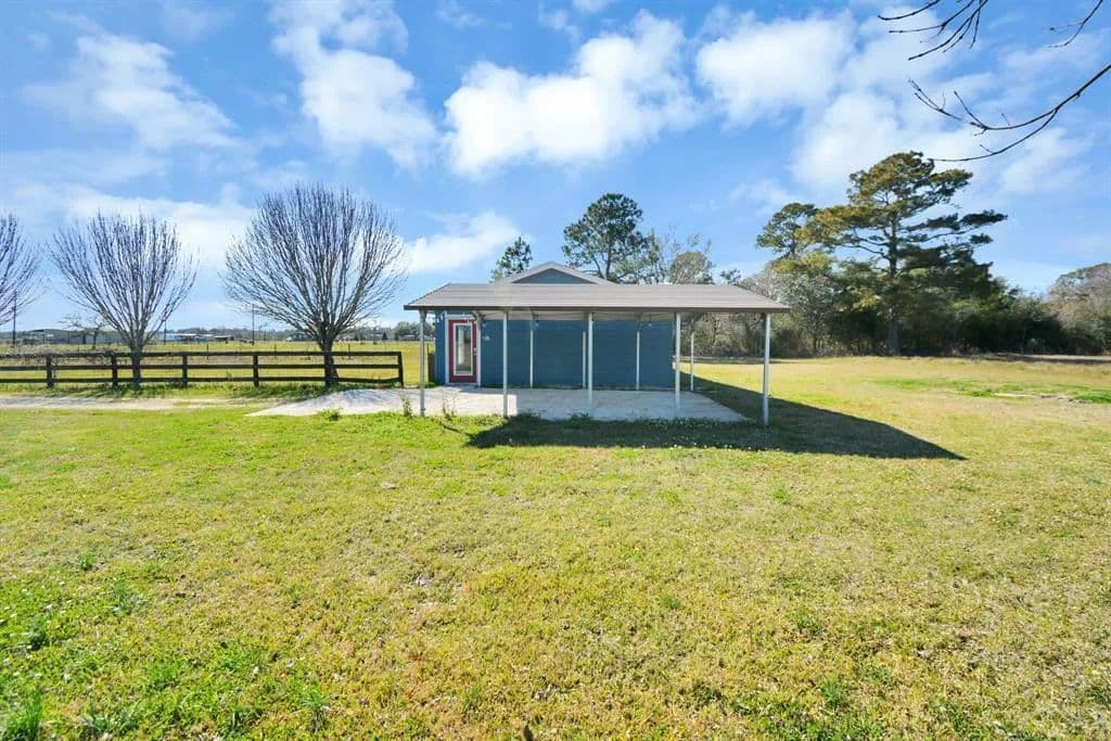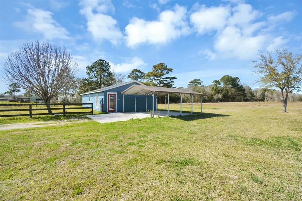 CHARMING PIECE OF HEAVEN! A tree lined gated driveway leads to a NEWLEY renovated and cozy remodeled home on 5 +/- unrestricted acres. Completely fenced with an large pond in the back, plenty of room for animals & horses. This ranchette is setup to sanction additions to be integrated on and the property is colossal enough to build a new home. If cooking is your passion this kitchen comes equipped with plenty of cabinets and an large breakfast bar to seat upward to 6-7 people. The bathroom was made for relaxing with a DOUBLE SEAT JACUZZI TUB! The Primary bedroom is spacious with a door leading to a discretely fenced in side/front yard, lots & lots of SPACE to run and play. Stained concrete flooring in the kitchen, living room and secondary room. Tiled flooring in the primary room and bathroom, less than an hour to Houston and 28 minutes to Beaumont. Property is not in a flood zone and has never flooded! Schedule for your viewing today!