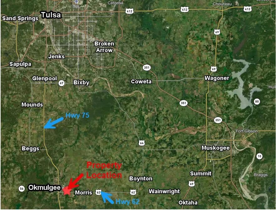 RARE 107 +/- ACRES OF WOODED LAND WITHIN OKMULGEE CITY LIMITS! Here’s your chance to own an exceptional 107 +/- acre tract of raw land located right inside the city limits of Okmulgee — a truly rare find! This expansive property, covered in a beautiful canopy of mature trees, combines natural beauty, seclusion, and an unbeatable location, making it ideal for a private estate, farm, or ranch. It also presents outstanding potential for residential or mixed-use development. With multiple access points, including highway frontage along the southern boundary and platted entrances from neighboring subdivisions, this property offers excellent convenience and flexibility for future plans. City utilities are readily available, enhancing the appeal for both individual and commercial projects. The land features mature timber throughout and approximately three ponds ranging from small to large — perfect for recreation, livestock, or simply enjoying the peaceful scenery. Whether you envision a private retreat tucked away in nature or an investment with long-term growth potential, this tract offers endless possibilities. Opportunities like this — a large acreage inside city limits — are nearly impossible to find. Don’t miss the chance to create something extraordinary in the heart of Okmulgee! Seller may consider financing options. Contact us today for details!