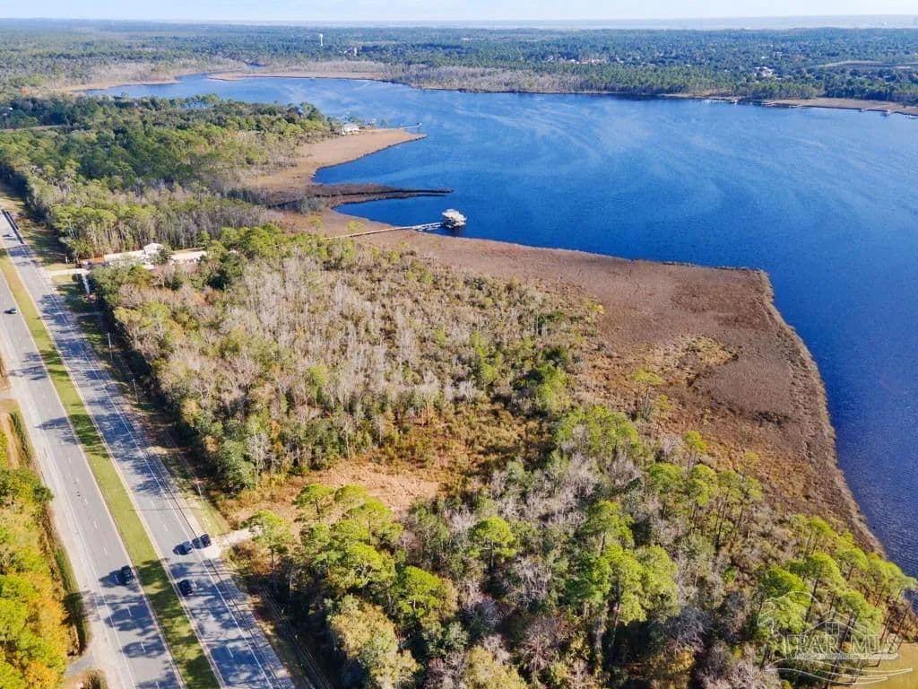 Make these 8 acres of wooded, waterfront property along Hwy 87 in Navarre yours today! Located just minutes from Navarre Beach, and a short drive to I-10 for easy commuting to all surrounding areas and military bases. With no HOA and public water and utility access available out front for you to get connected to and build your waterfront getaway, your own private fishing hole, or just your very own spot to catch the sunsets on the bay!