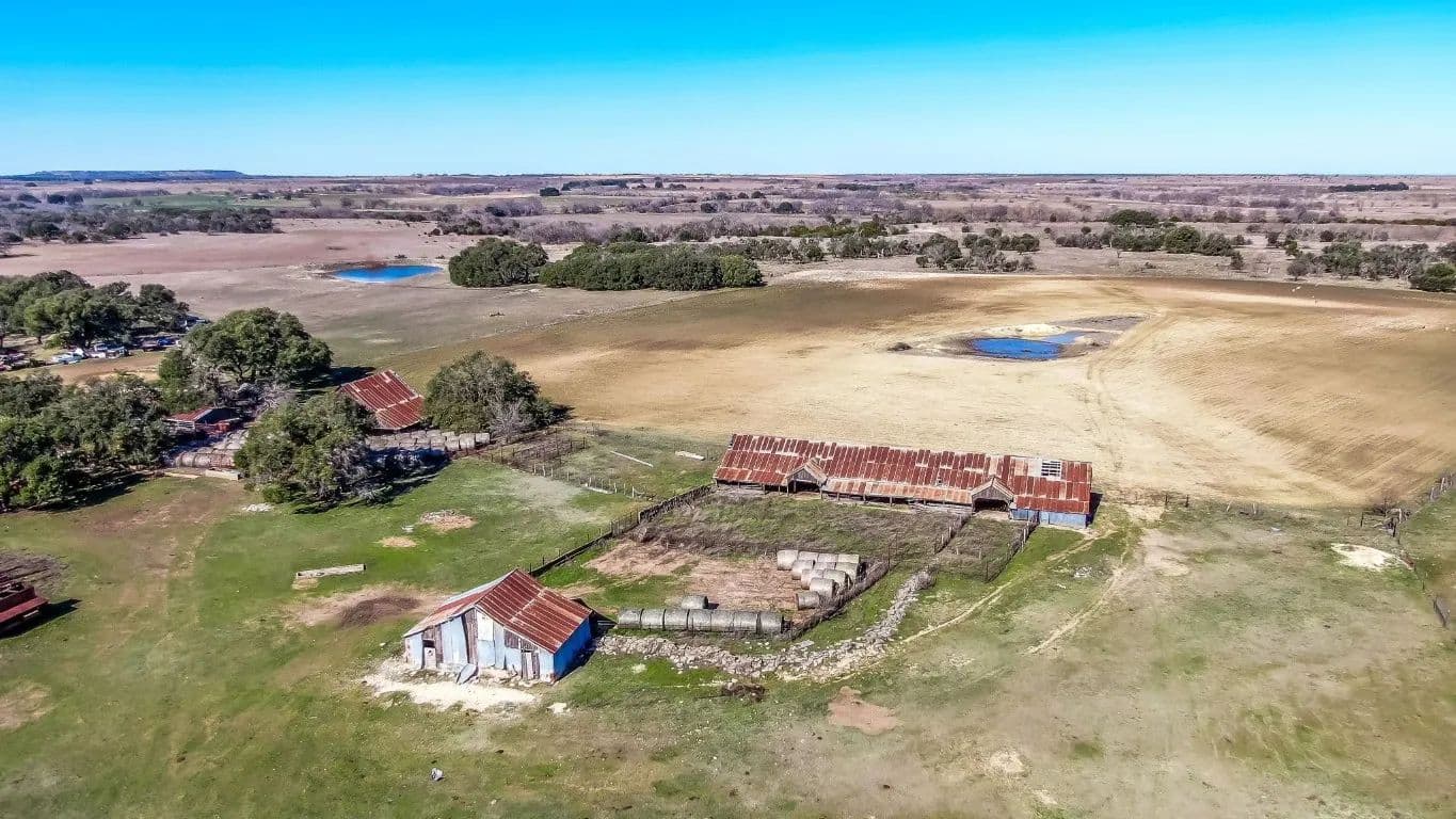 There is an old home on the property; believed to have been built in 1885, its not livable today but offers a view into the past of this Texas Gem, there are several buildings around the house area that include barns, horse barns, sheds, a water well pump house and a few assorted pens. Currently there are cattle and sheep being grazed on the property.