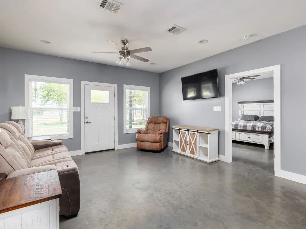 Located in the popular Thorndale ISD, the property benefits from a tranquil rural setting while still maintaining proximity to essential amenities. Whether you're looking for a weekend retreat or place to call home , this property's fertile land, well-maintained fencing, and versatile shed create an ideal canvas to cultivate your agricultural dreams. In addition to the pristine land, excellent fencing, cross-fencing, and the 15 x 30 shed, this property also features a newly built 50 x 30 building. The spacious building provides ample space for storage, workspace, or the potential for further customization to suit your specific needs. The new Barndo built in 2022 is a standout feature, boasting a contemporary open-concept design with two bedrooms and two bathrooms. This living space offers a comfortable and stylish environment, blending modern aesthetics .with rural charm. The open layout promotes a sense of spaciousness and flexibility, making it ideal for relaxing or entertaining guests! Front & Backyard features Bermuda grass along with the small pasture up front! Meticulously maintained property & Move In Ready! Only 20 miles to the new Samsung Plant in Taylor, Tx! Less than an hour to Hutto & Round Rock and Austin!