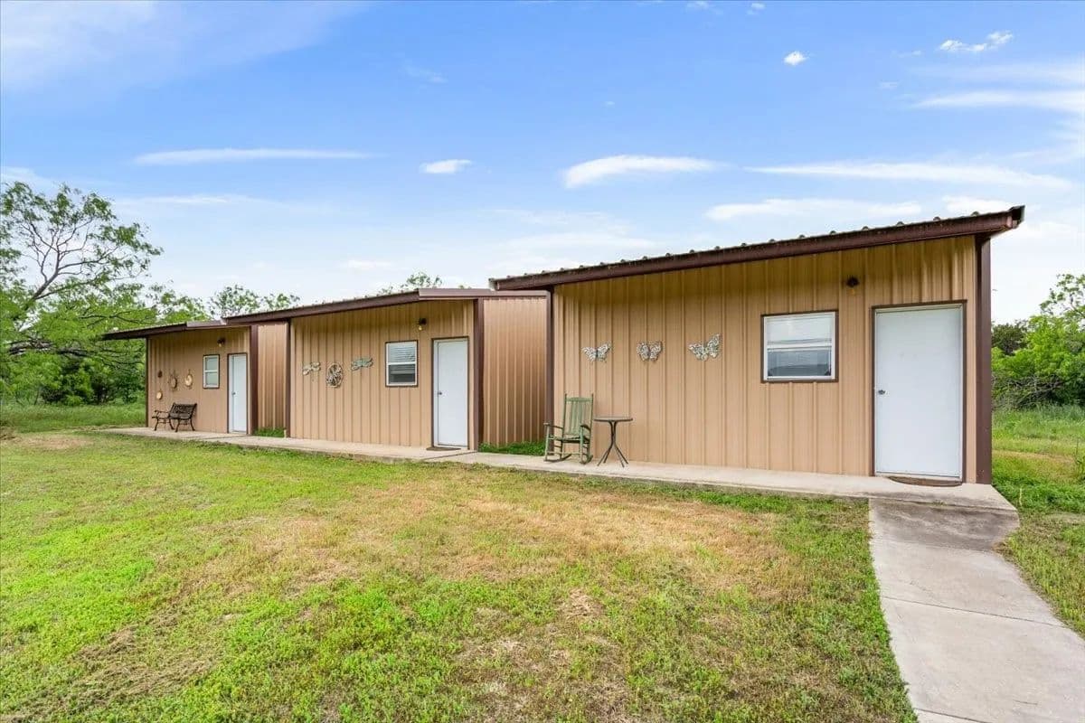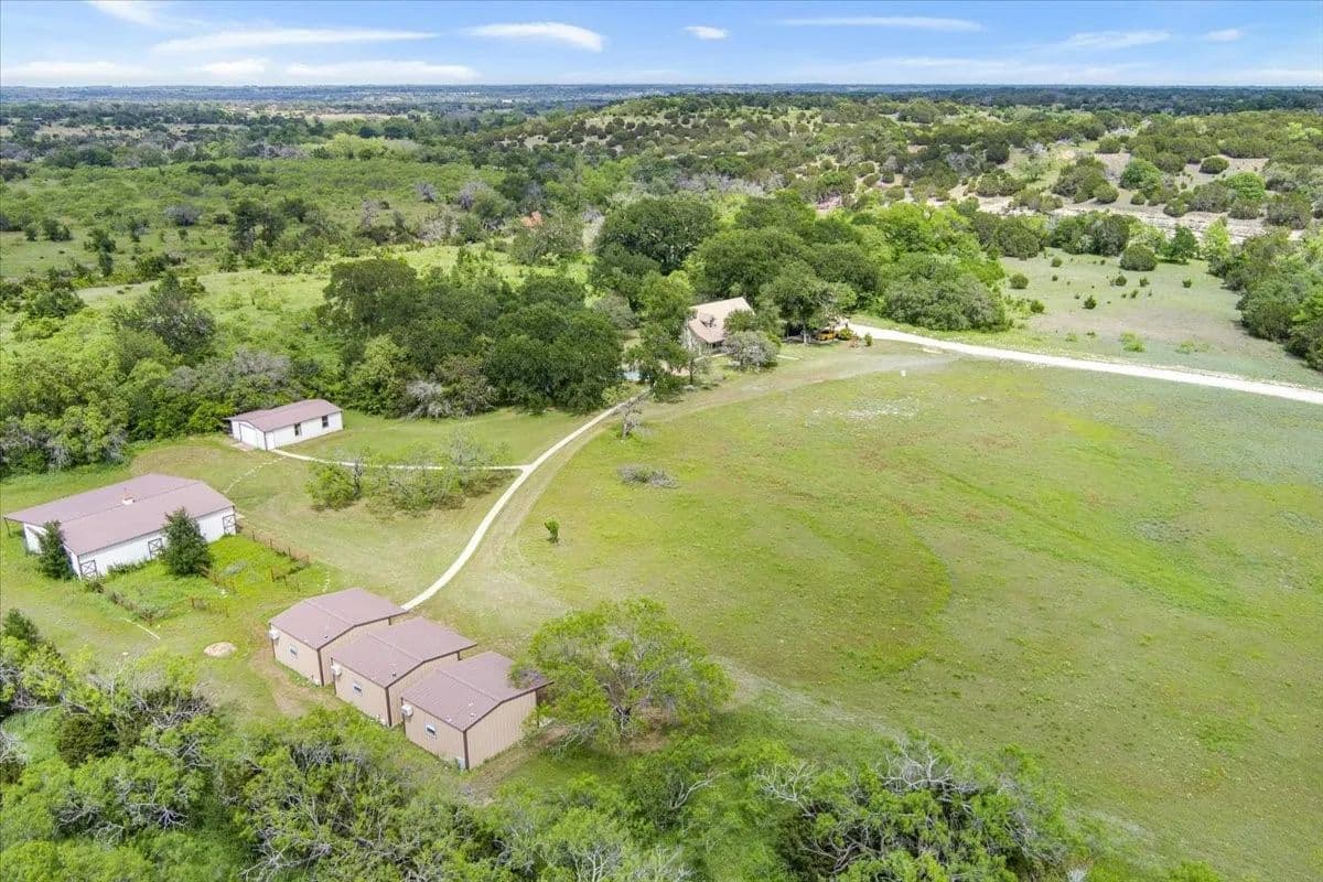Don’t miss your chance to own a ranch that truly has it all. The 16.9 acre estate features a nicely appointed 3 bedroom 2.5 bath rock home with large primary suite on the ground floor. The property boasts an inground swimming pool, 1800sf 7 stall horse barn, 864sf two room shop with 480sf insulated garage and 384sf office with AC, and 3 identical 400sf metal open concept cabins with full bathrooms and heat and air. The land features a lovely open sandy loam field with gorgeous oak trees and abundant tree cover surrounding the property and the beautiful rock bottom Sand Branch creek. Wildlife including deer and turkey are abundant. This property is just a short drive down a county maintained road off Hwy 281. Income producing opportunities including an equestrian Airbnb or horse motel, or even a wedding venue. The ranch is centrally located between Austin and DFW. Bring your family, livestock and entrepreneurial spirit and make this ranch your home in the central Texas hill country.