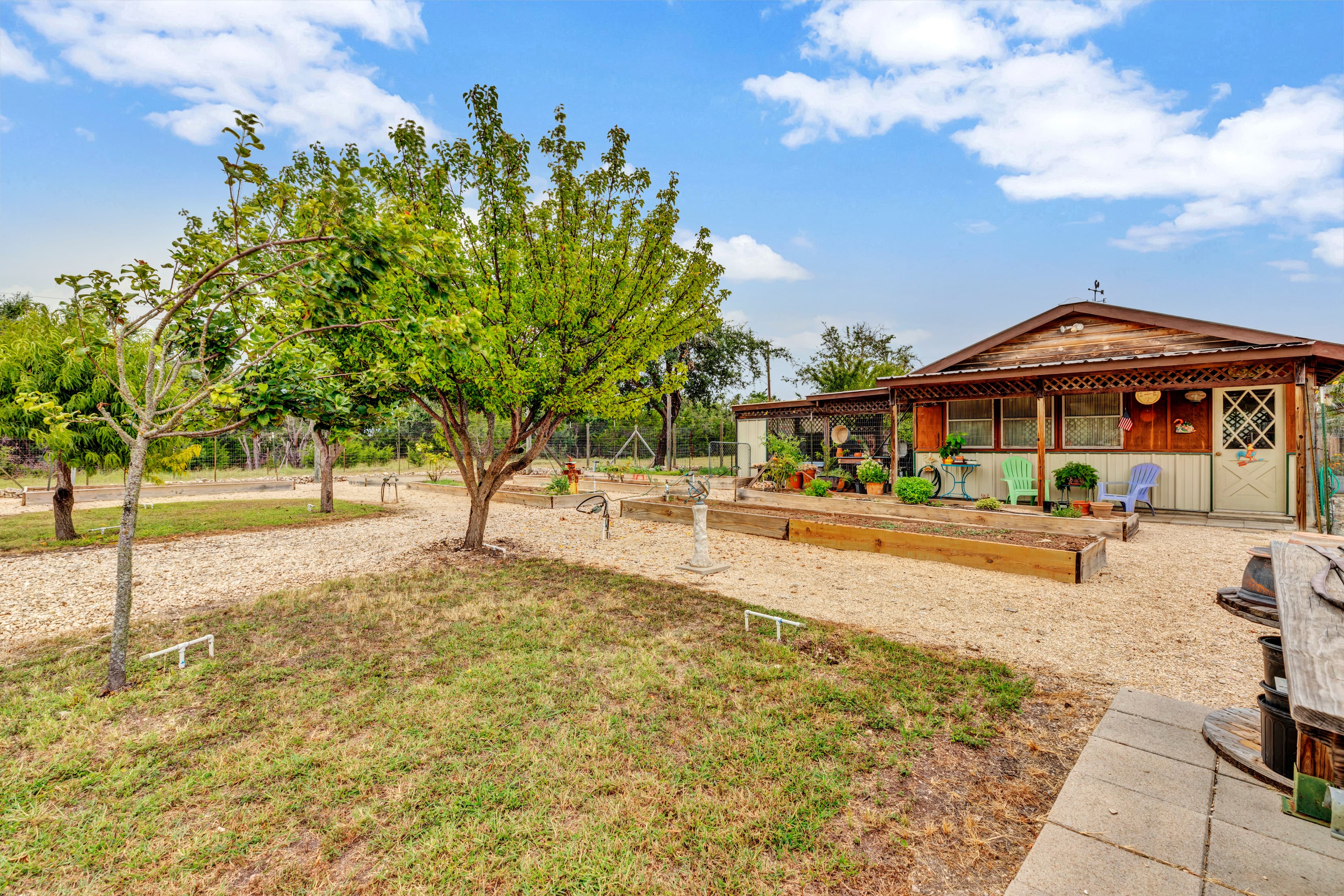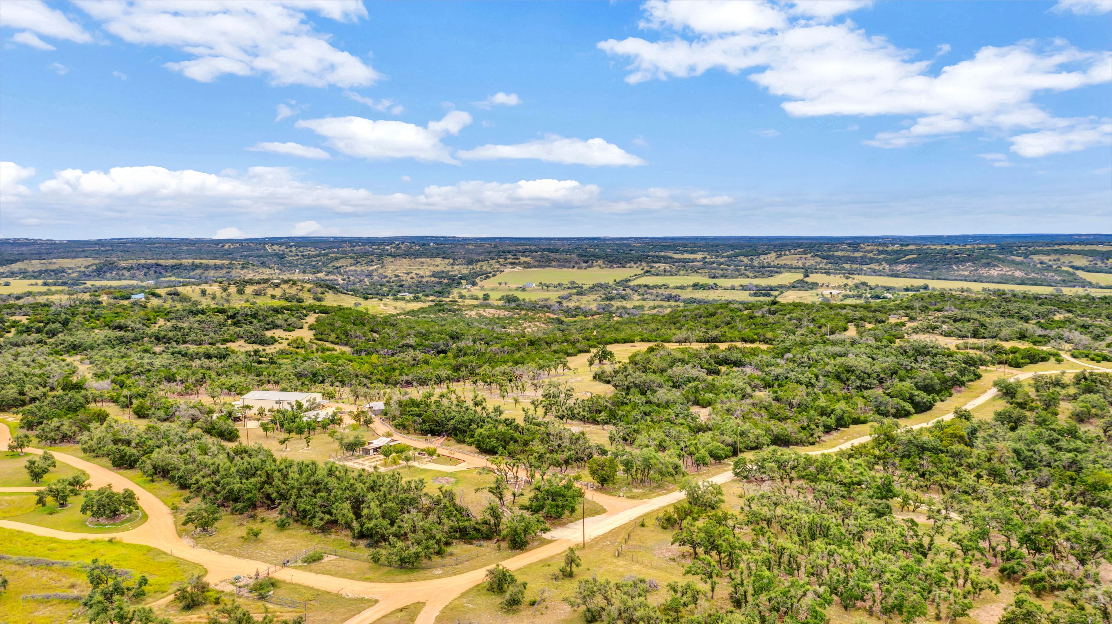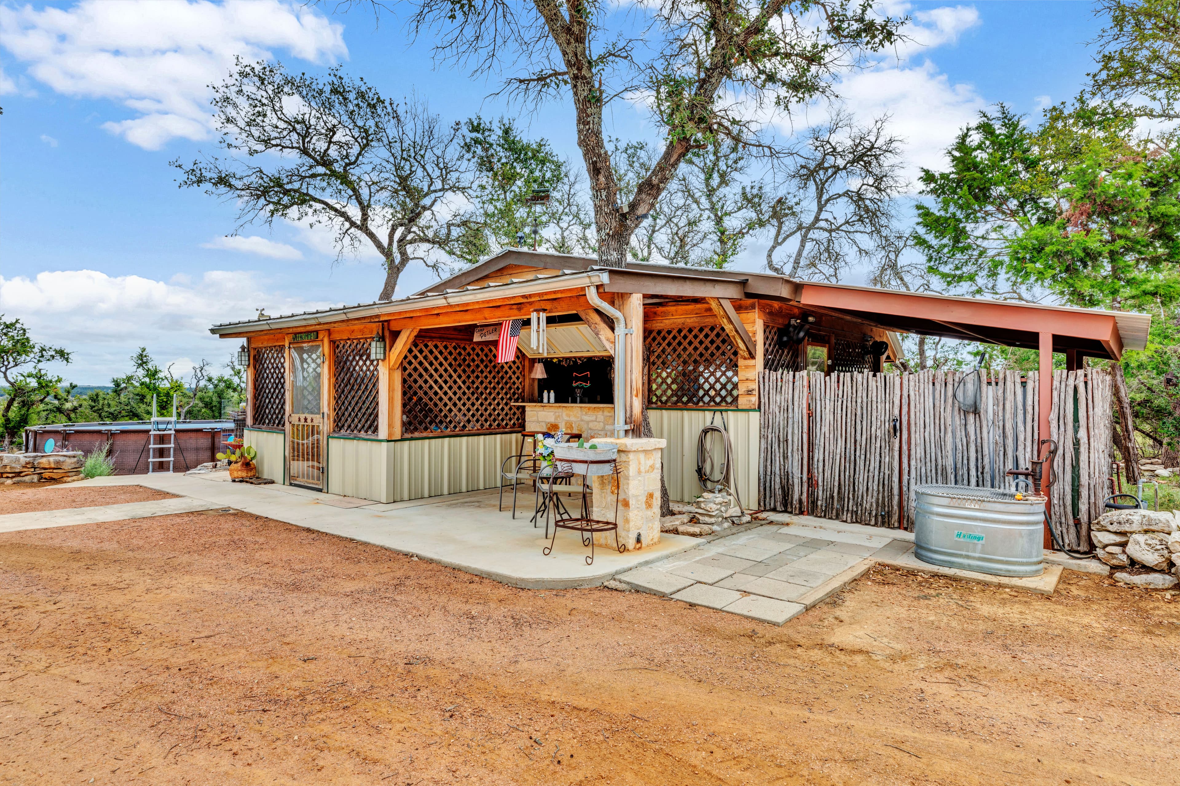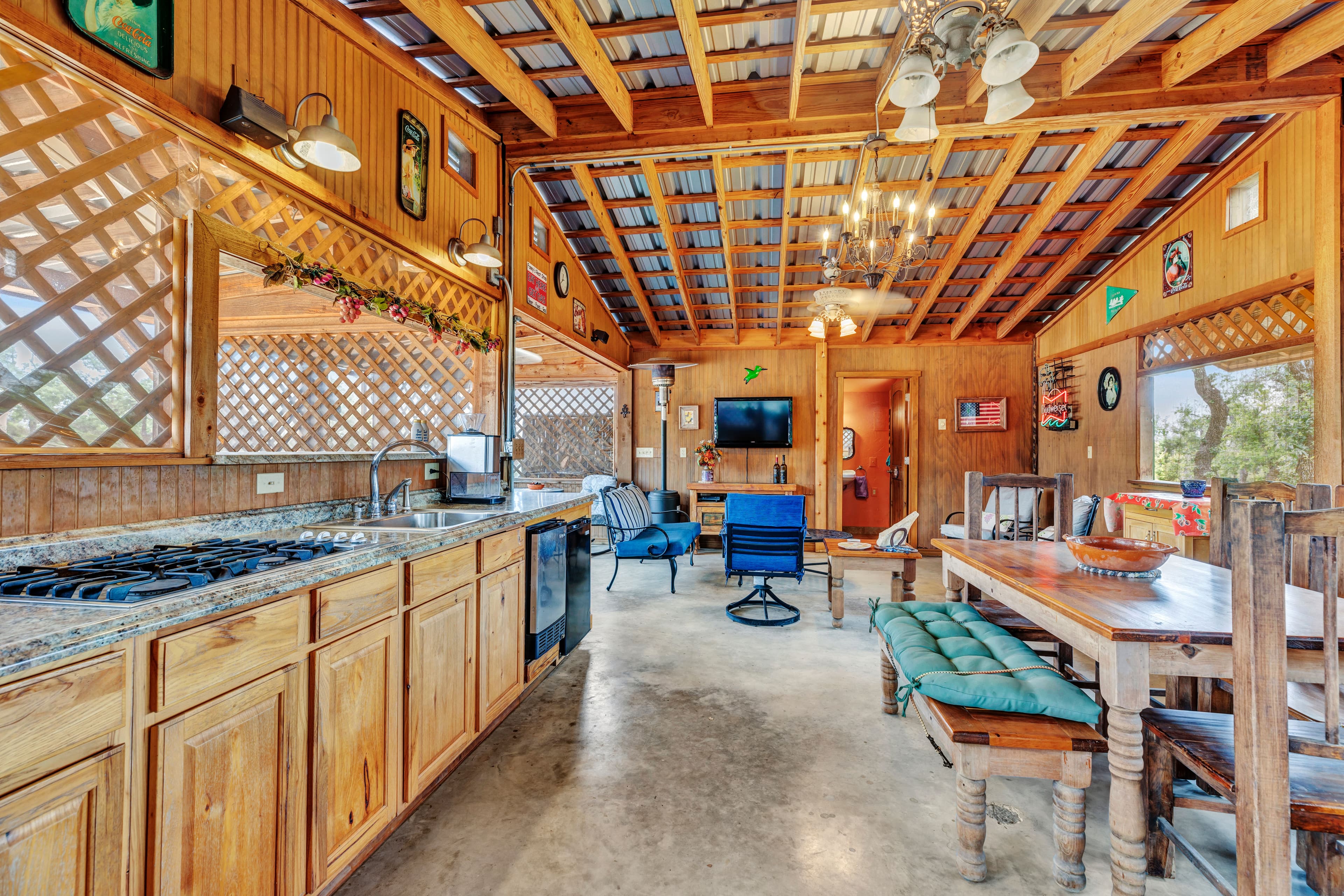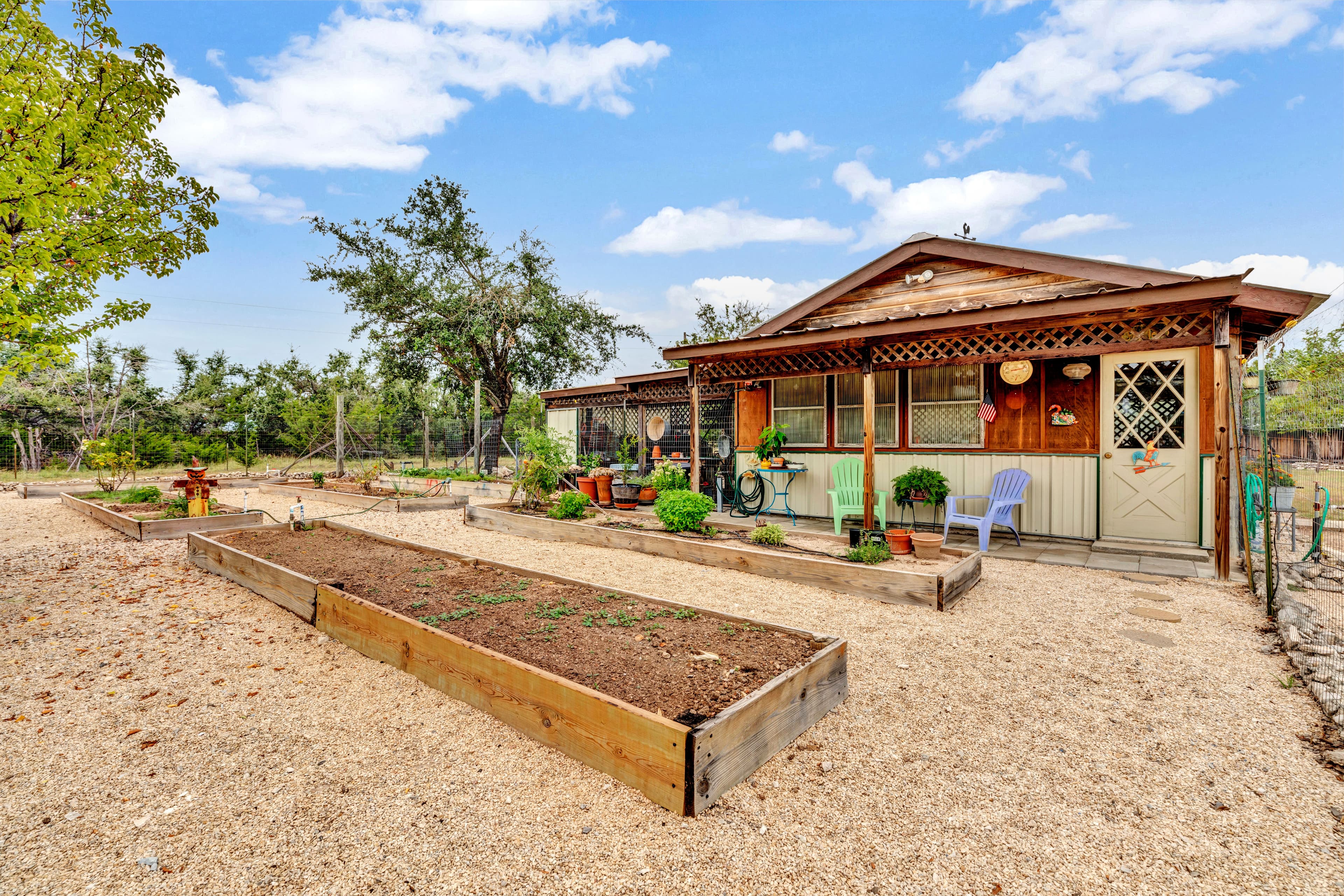 Stunning Hill Country Setting! Imagine owning your own tranquil, private, end of the road ranchette with million dollar views! This 25 acre beauty is ready for your dream home! The 2500 sqft Barndominium is ready, guest house finished, garden house with raised garden beds, chicken coop, Summer kitchen, above ground swimming pool, outdoor shower and the outdoor entertainment park are all waiting for you! Perimeter fenced and electric gated entry. This is truly one of a kind!