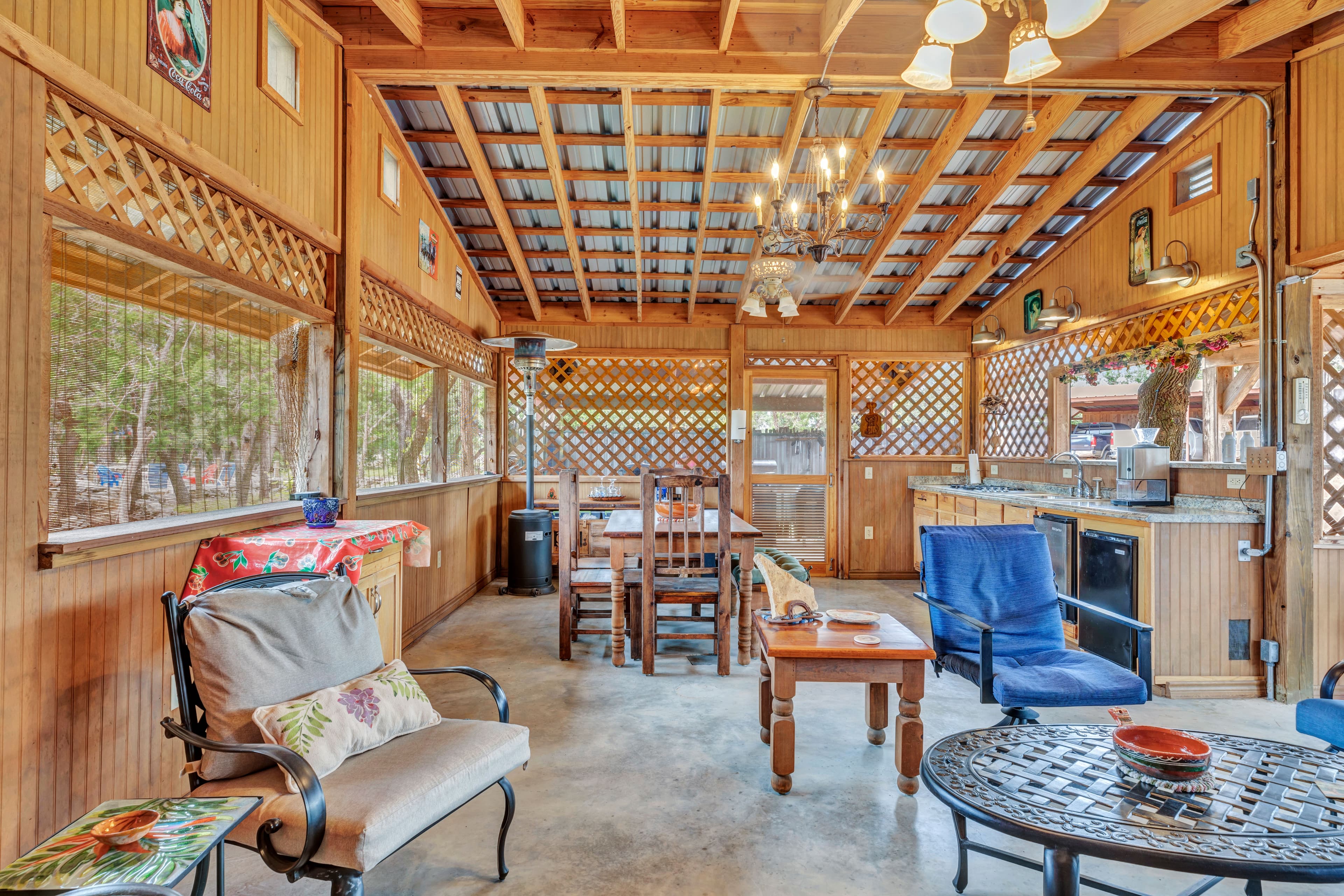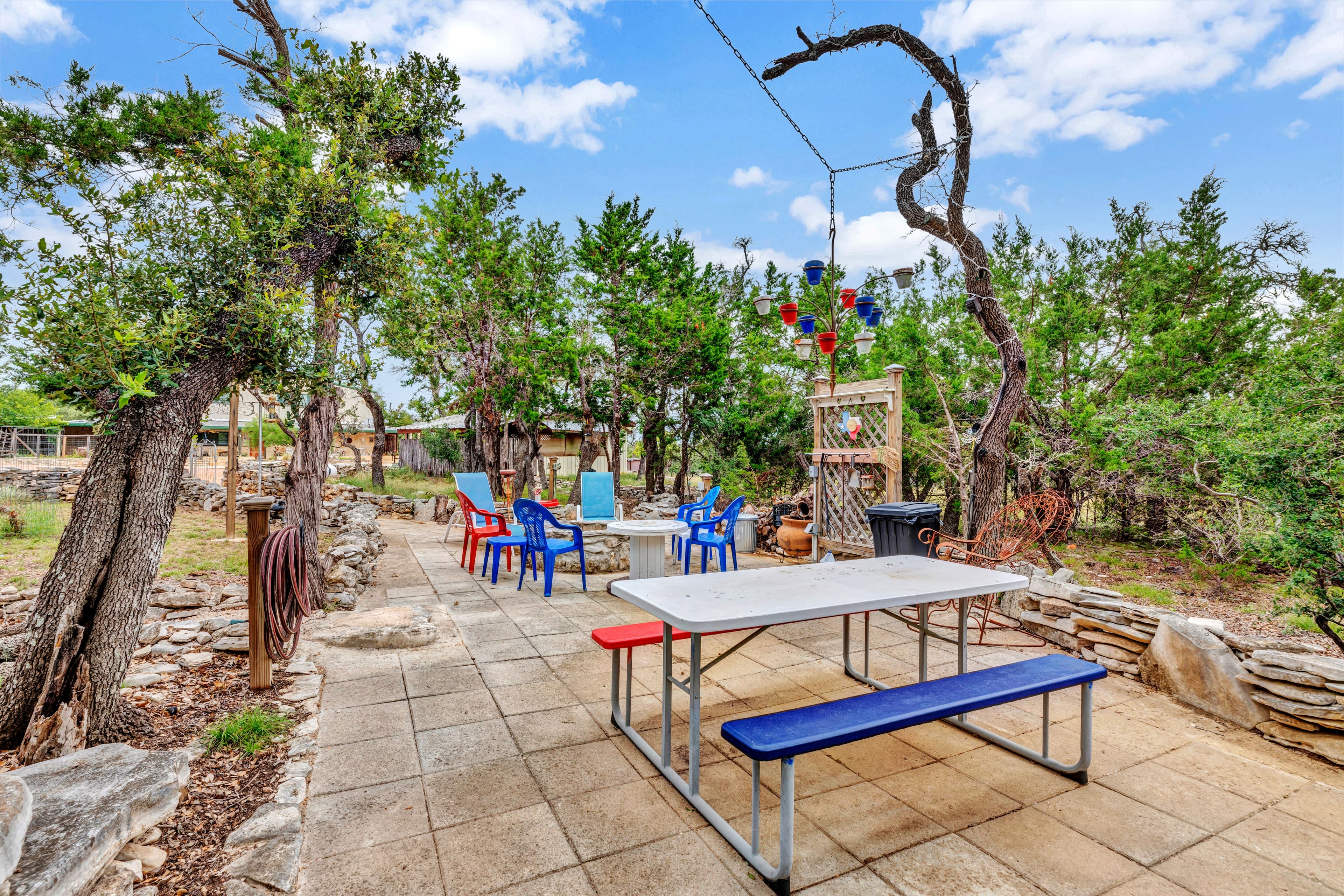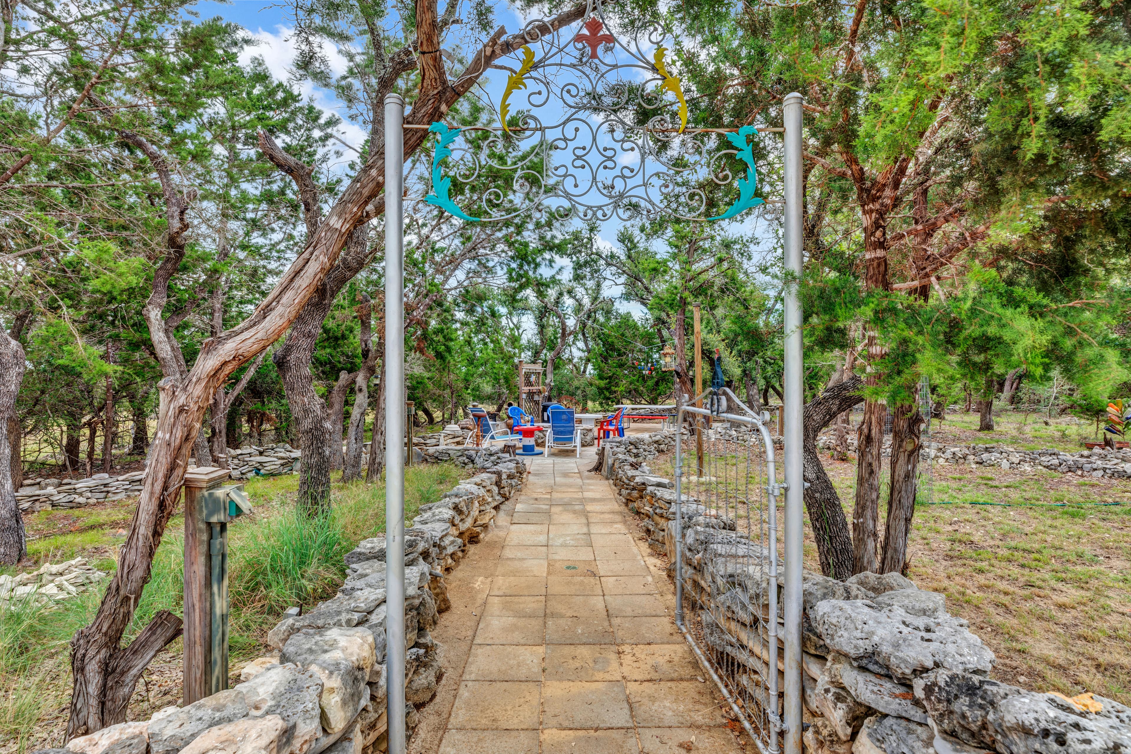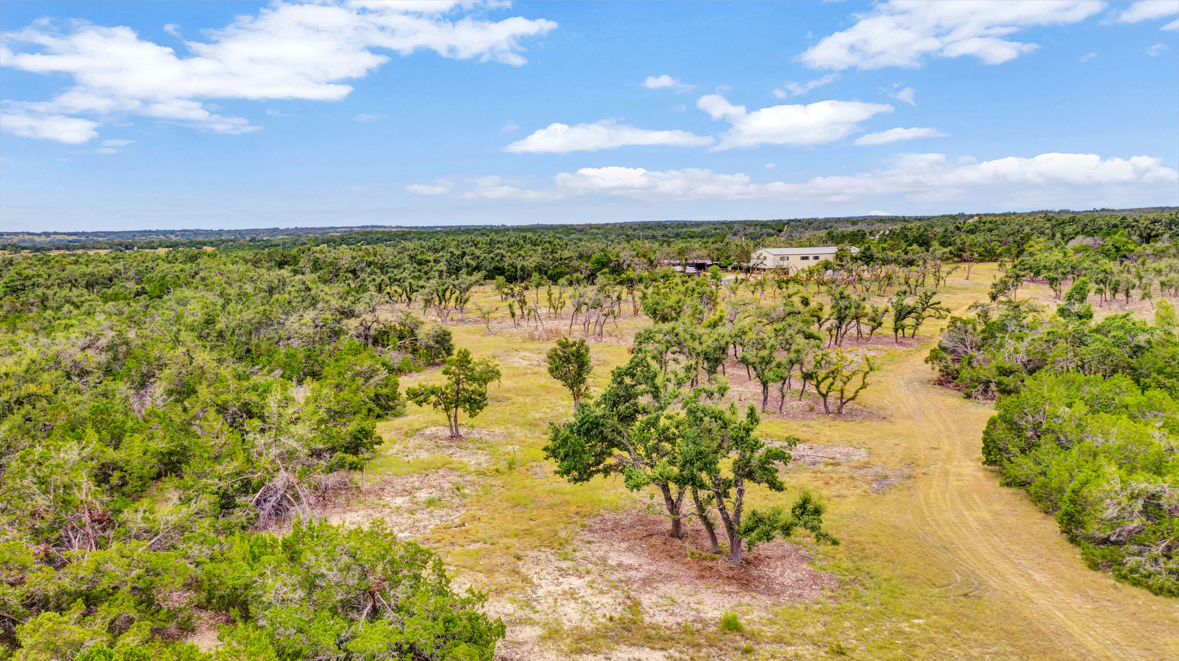 Stunning Hill Country Setting! Imagine owning your own tranquil, private, end of the road ranchette with million dollar views! This 25 acre beauty is ready for your dream home! The 2500 sqft Barndominium is ready, guest house finished, garden house with raised garden beds, chicken coop, Summer kitchen, above ground swimming pool, outdoor shower and the outdoor entertainment park are all waiting for you! Perimeter fenced and electric gated entry. This is truly one of a kind!