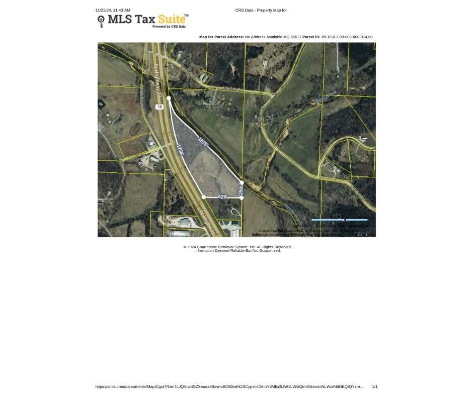 Highway frontage off highway 13 in Polk County. Land is located about 12 miles north of Springfield and 12 miles south of Bolivar. This property has direct access to the North Dry Sac River. The land is currently being used to harvest topsoil. Several test sites on the property show 4-6 feet of topsoil that is available to be skimmed off the land. Property could also potentially be used for crops. Land is partially cleared and part mature trees. Turn off from the highway allows for easy access whether headed north or south on HWY 13. Property is accessed through a private road, there is no direct highway access.