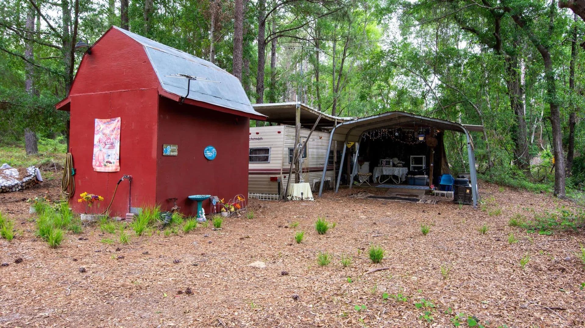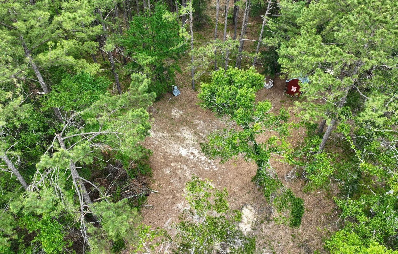 Perfect hunting land and beautiful home site. There is currently a small camper that sleeps two with a deck and cover on the property, along with a separate bath & laundry house. Electricity and a deep well on are the property as well. Wild turkey, deer and other wildlife are plentiful. The land does need some clearing and fallen trees removed. It has been used as a hunting campsite.
