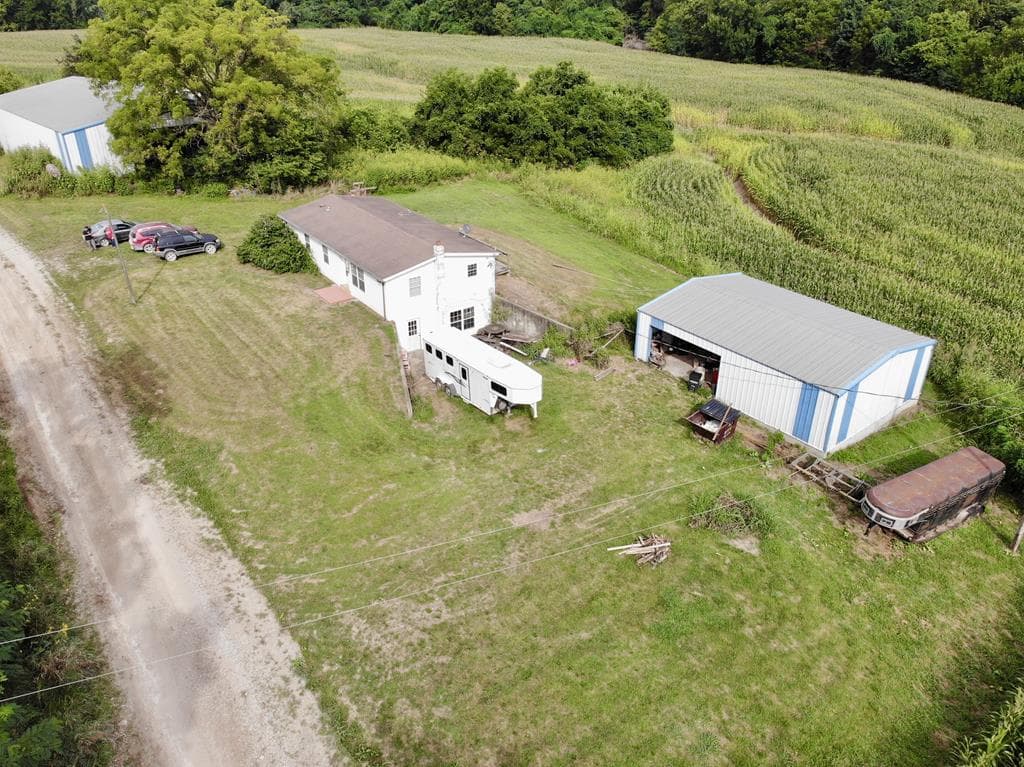 Tract 1 - 3± acres. Improved with an approximately 1,100 square foot 3 bedroom and 1 bath home on the main level. It does have a partial walkout basement that is in good condition. Sheds are a 60’ x 80’ steel frame building with a rock floor and a 30’ x 40’ steel detached garage with a full concrete floor and electric. Would make a great country home or a peaceful hunting camp.