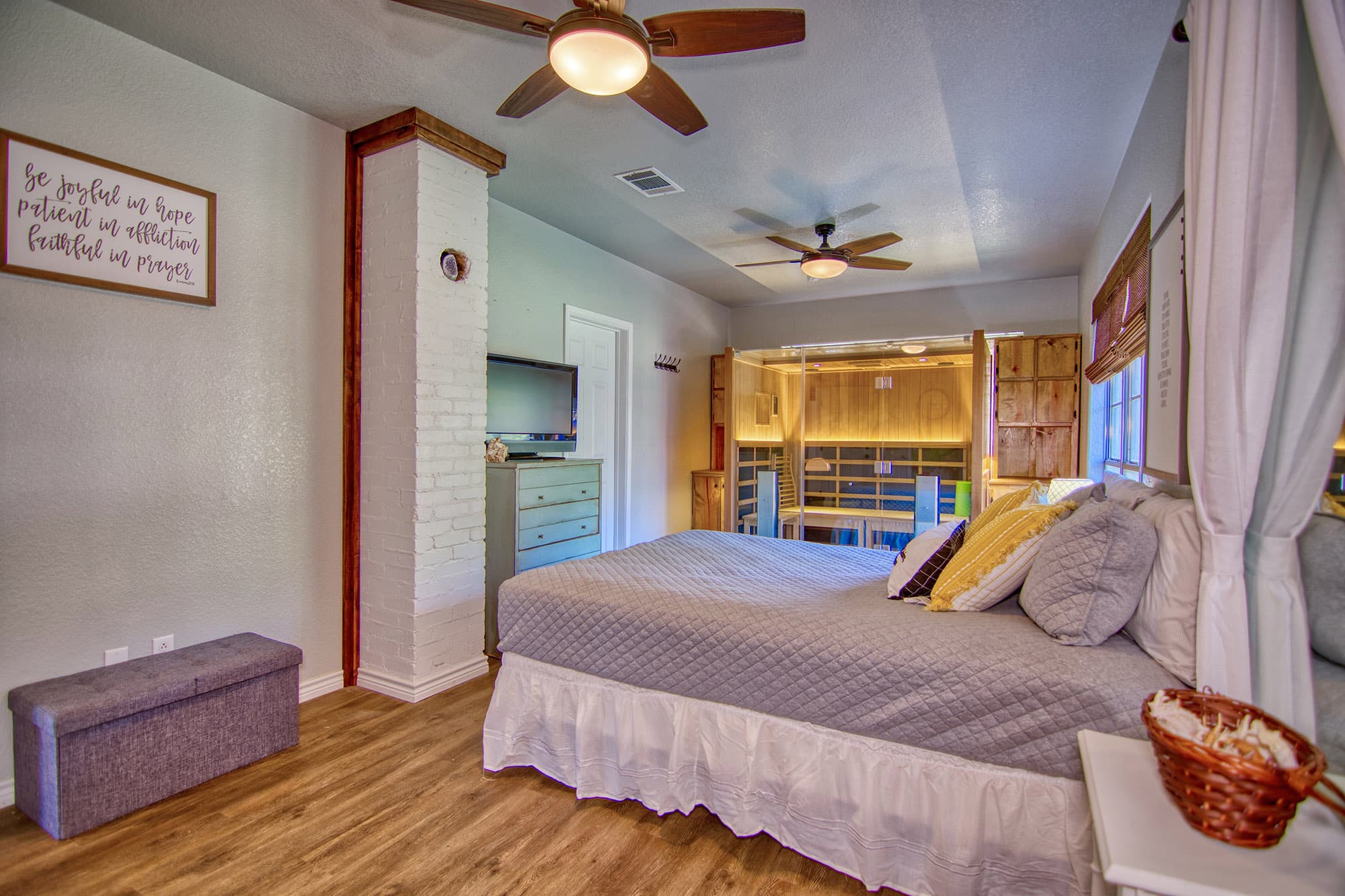 Gorgeous Spanish stucco home currently operated as a Air BnB in Mason, the Gem of the Hill Country! The spacious 2520 sq ft, 3 bedroom, 2 bath residence features an open concept design and offers many updates-one of which is a 2020 model, 6 person, medical grade infrared sauna! Home has been tastefully renovated throughout. Additionally, there is a great office space and large screened in back porch area with storage. The substantial yard is attractively landscaped & shaded by mature trees and perfect for entertaining. A vintage water cistern adds character and charm to the property.