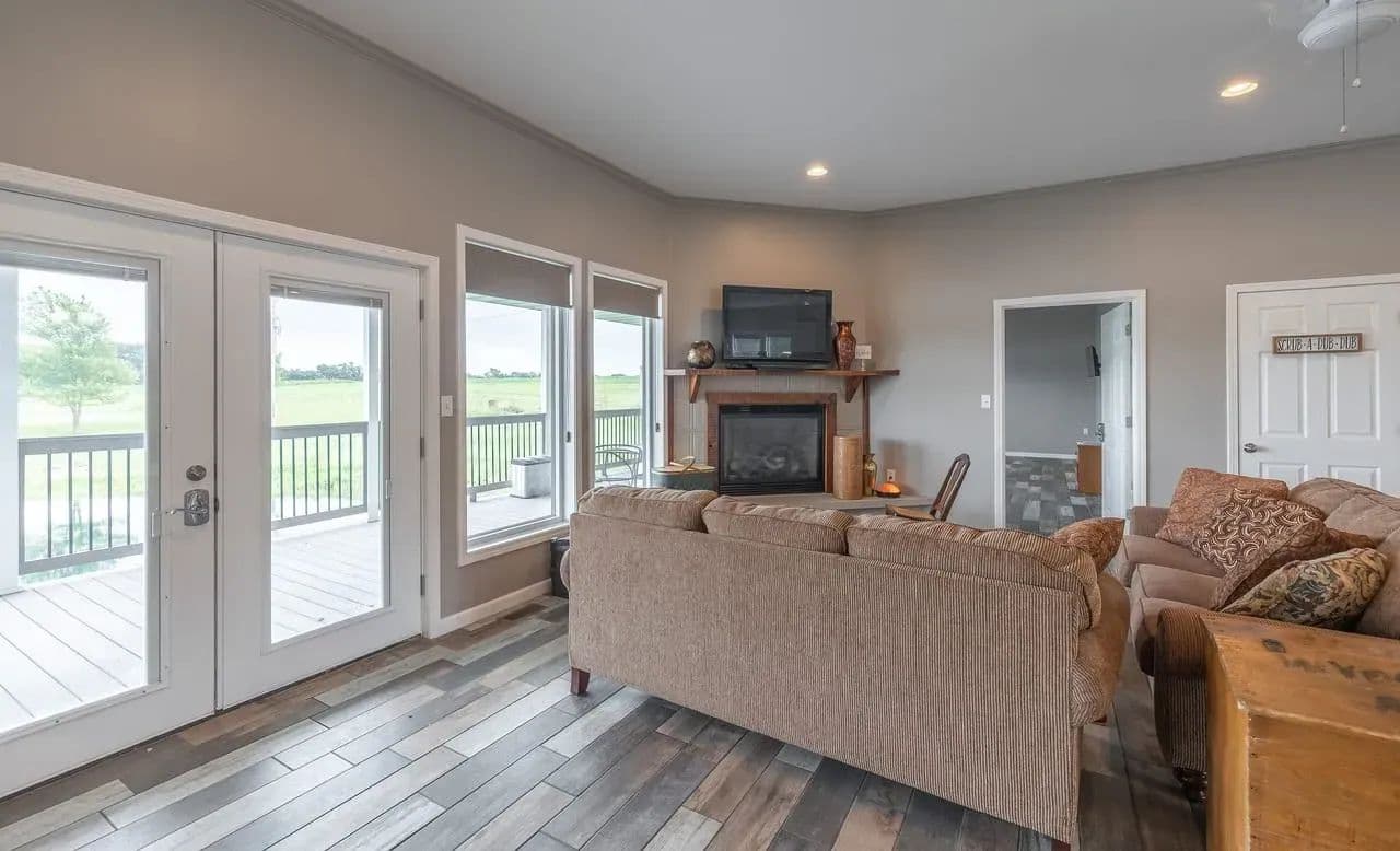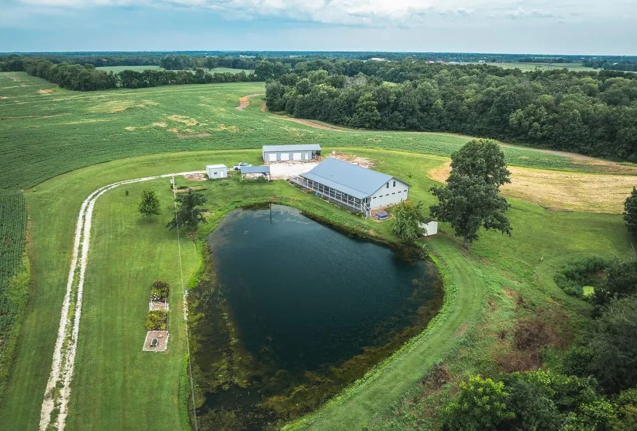Drive through the gates and follow the lane as it opens to a breathtaking view a beautiful home across the water, perfectly framed by a ¾-acre stocked lake. This 10 acre property offers a harmonious mix of open land and enough timber for hunting. Surrounded by rich agricultural fields, these woods are home to trophy-class North Missouri bucks and abundant wild turkey. The stunning 5-bedroom, 6-bath residence boasts an 80-foot covered front porch overlooking the lake, where you can watch large fish swimming just below the surface. Inside, an open-concept living and dining area with a cozy fireplace flows into a chef’s kitchen featuring custom cabinetry, quartz countertops, and an impressive 6' x 12' island — perfect for gatherings. A large walk-in pantry with ample shelving keeps everything organized, and the master suite includes a whirlpool tub for relaxing after a long day. Previously used as a vacation rental, the home is equally suited as a private retreat or full-time residence. The property also includes two productive garden spots with rich, loamy soil, a pavilion by the lake, a three-car detached garage with workshop, and an additional carport. Located just 8 miles from the Mississippi River and Fenway public access, this property offers both seclusion and convenience — a rare opportunity for those seeking beauty, recreation, and income potential all in one.