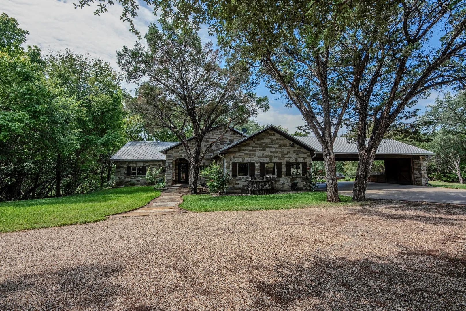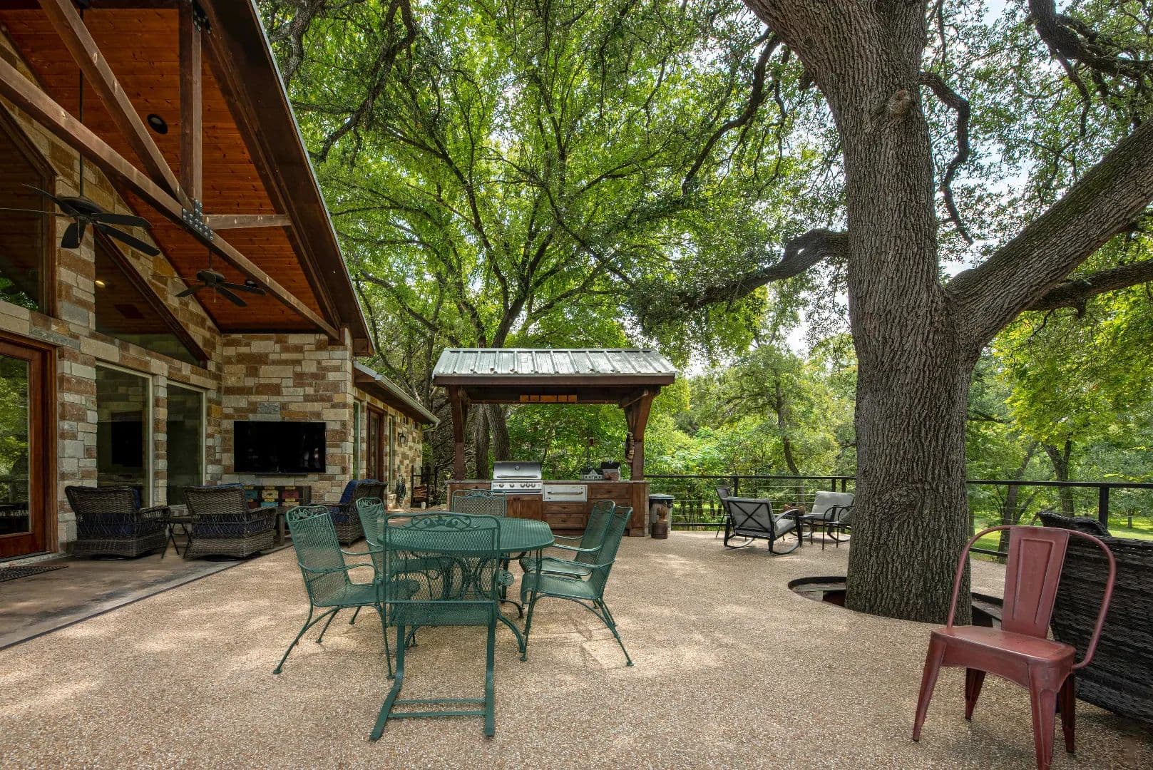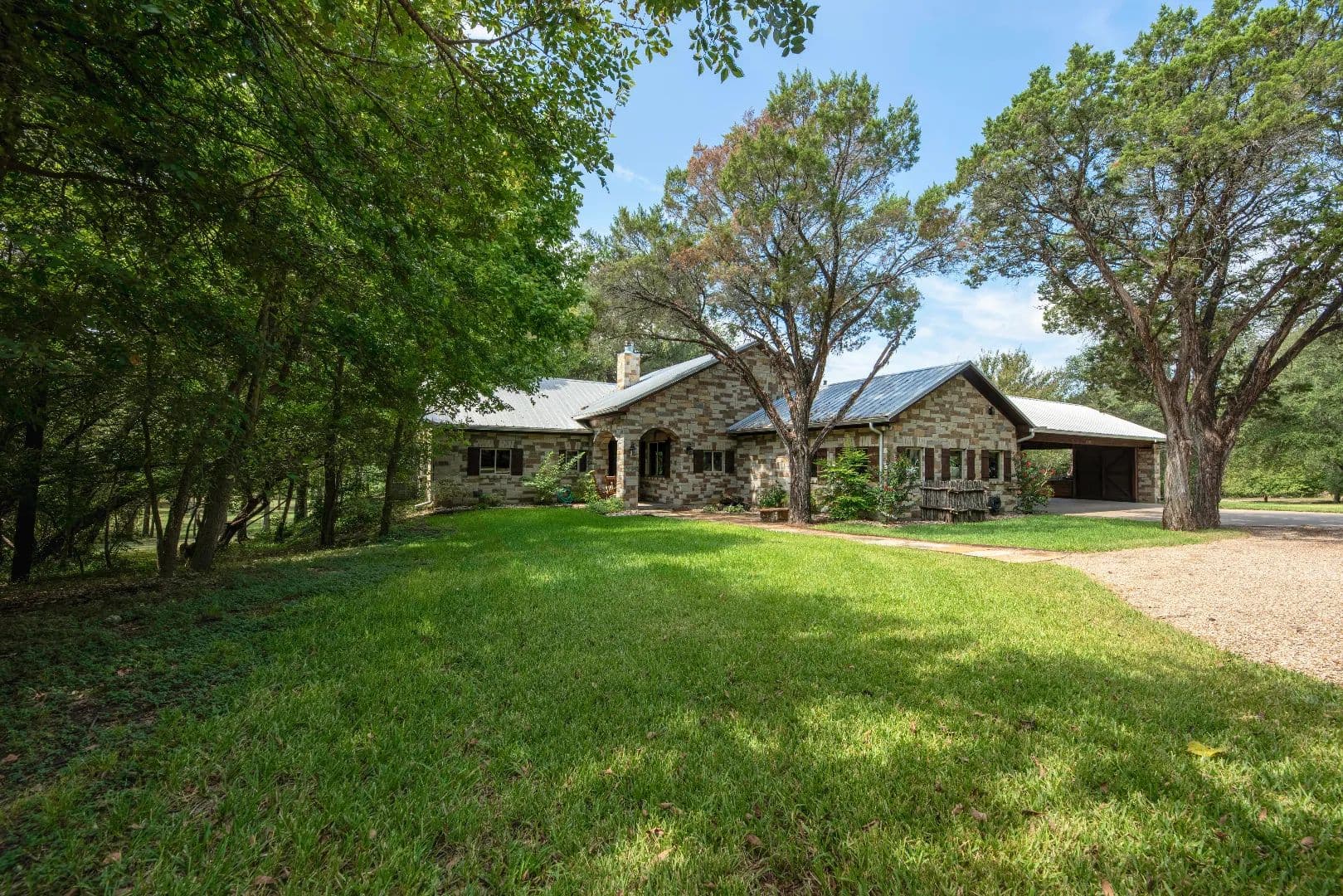 Tucked gently into a wooded incline beyond the field, the main residence is surrounded by majestic oak, elm, pecan and mesquite trees with a touch of native cedar. The list of features of the main home is extensive!