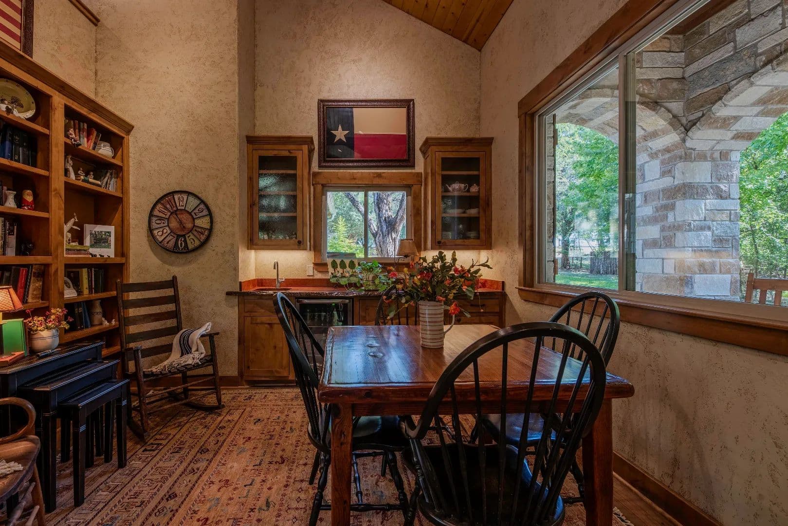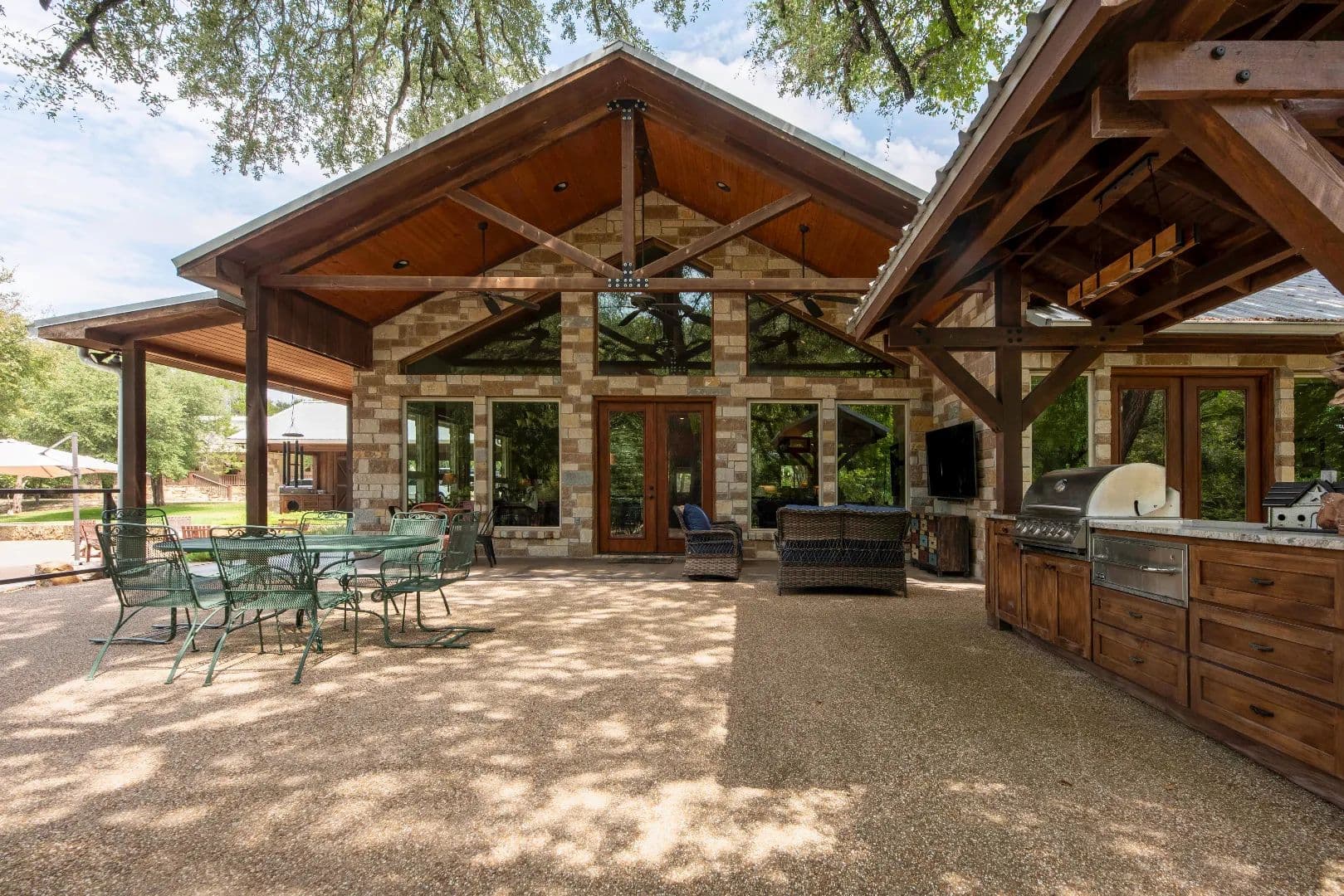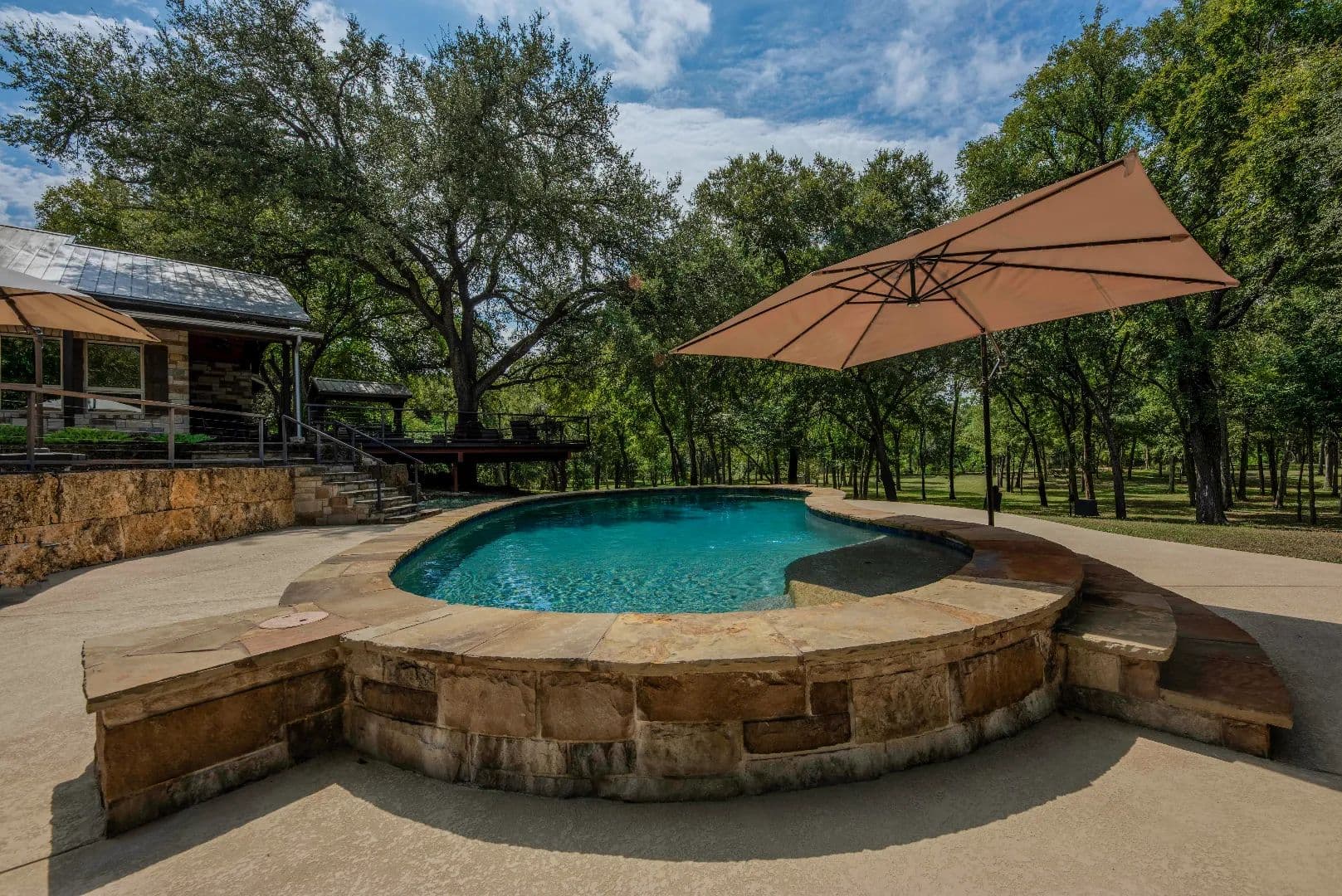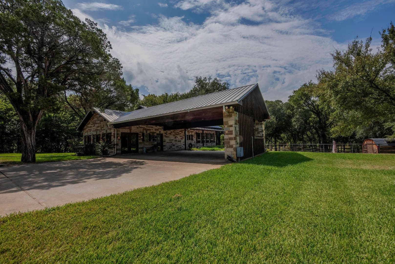 Tucked gently into a wooded incline beyond the field, the main residence is surrounded by majestic oak, elm, pecan and mesquite trees with a touch of native cedar. The list of features of the main home is extensive!