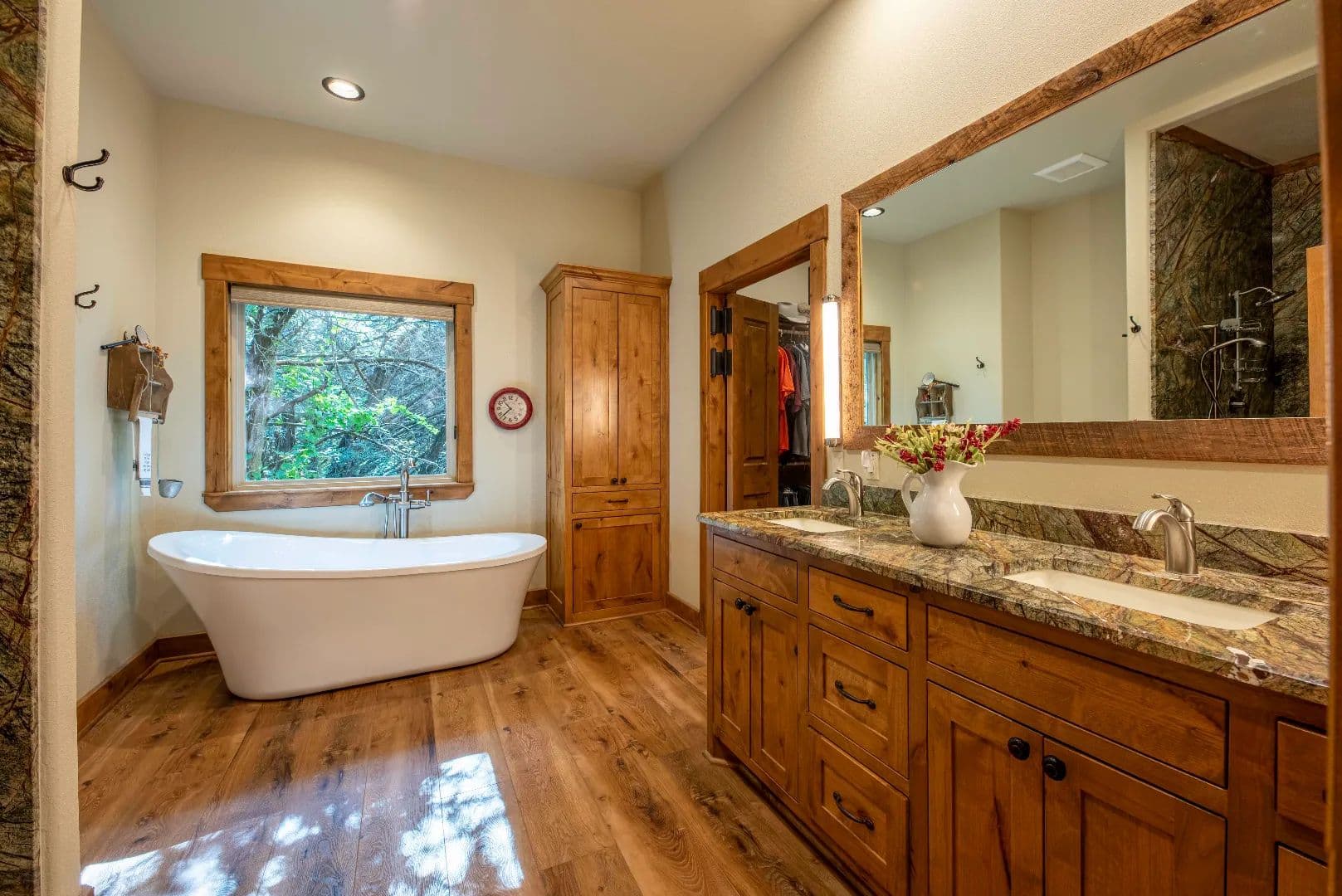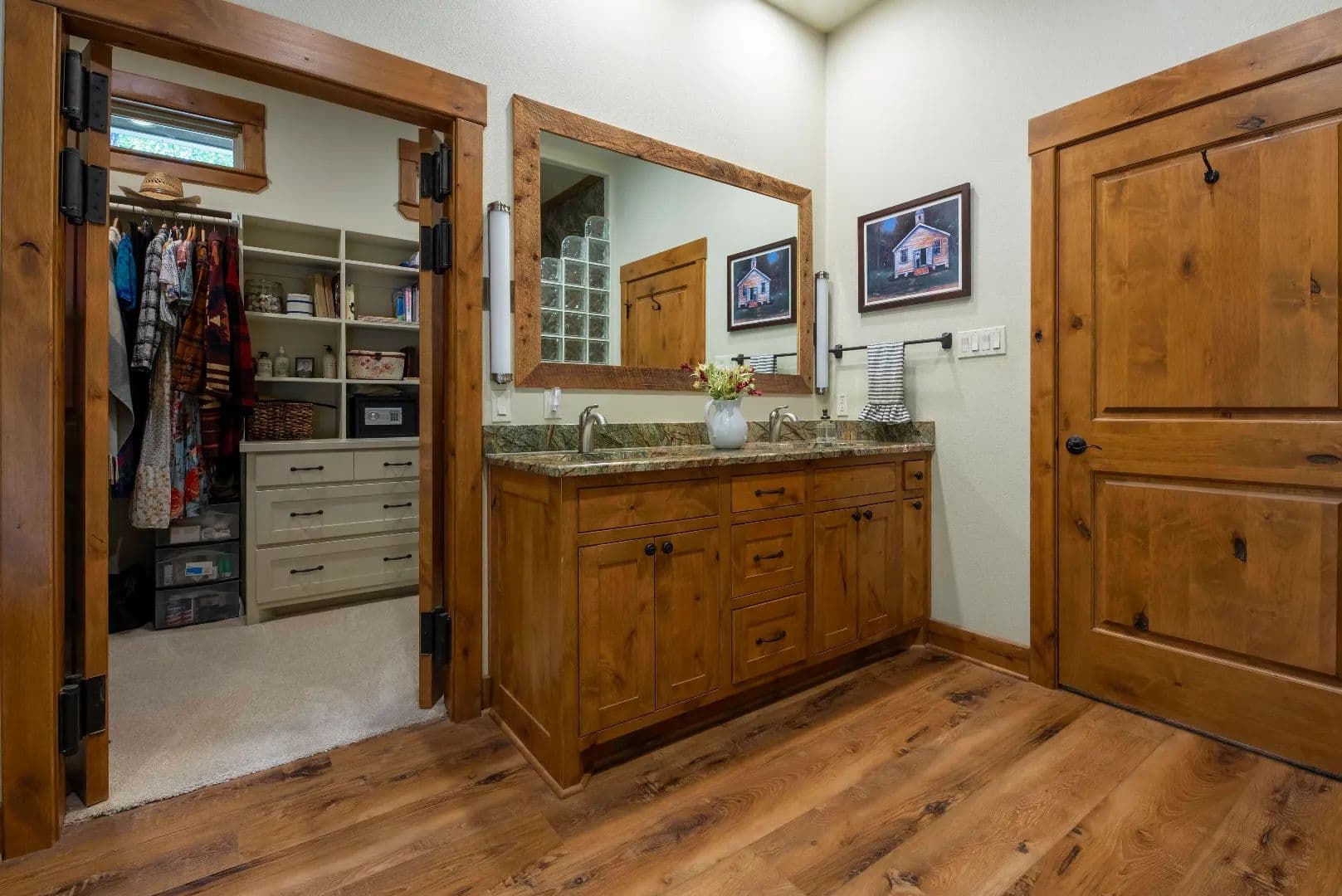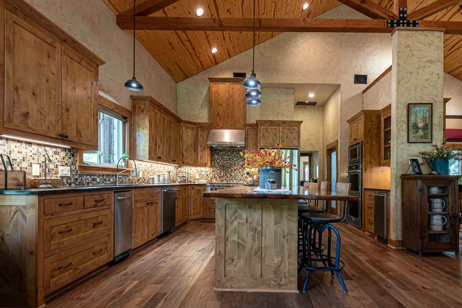 • All cabinetry and built-ins custom made from Knotty Alder including the door casing, base board and trim