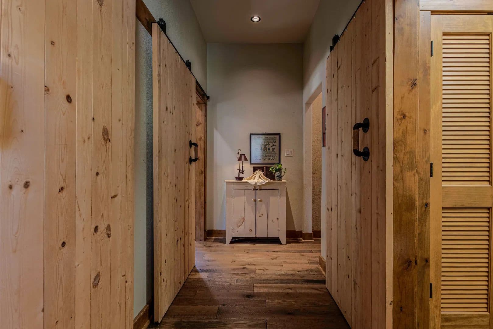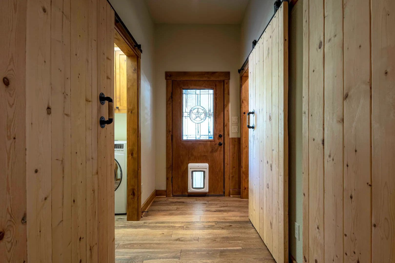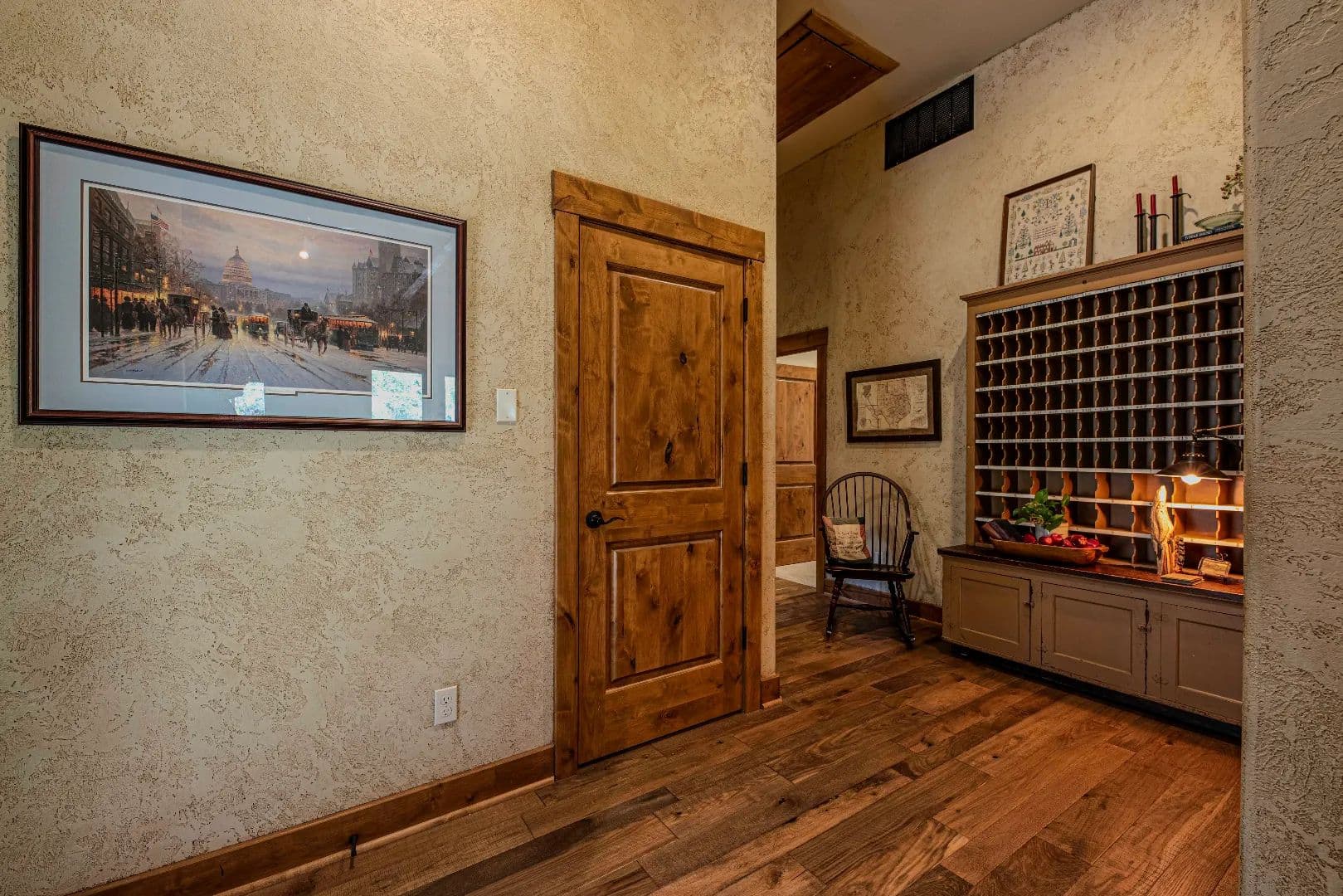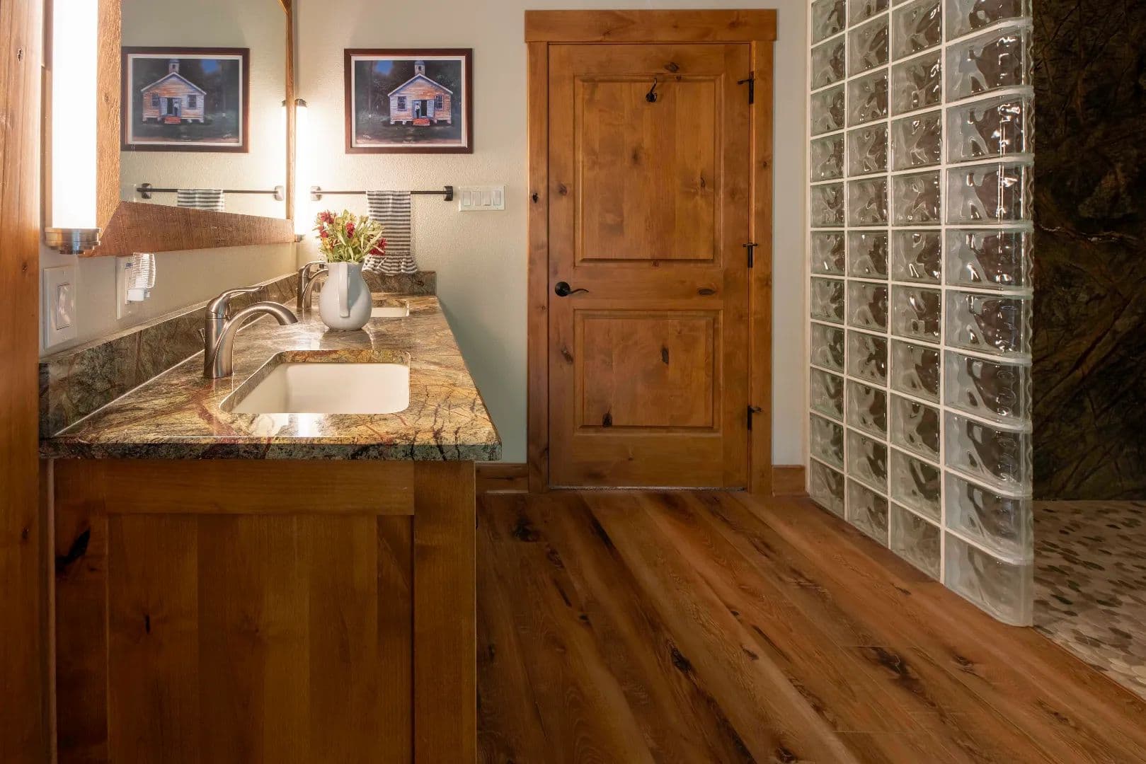 • All cabinetry and built-ins custom made from Knotty Alder including the door casing, base board and trim