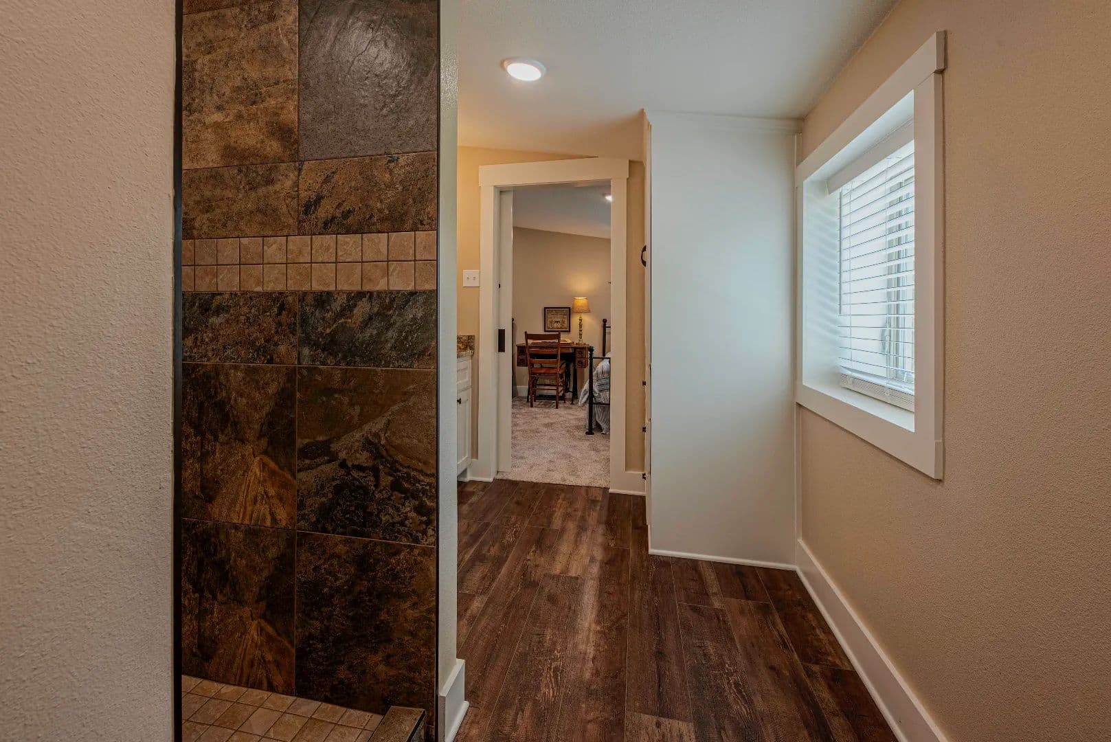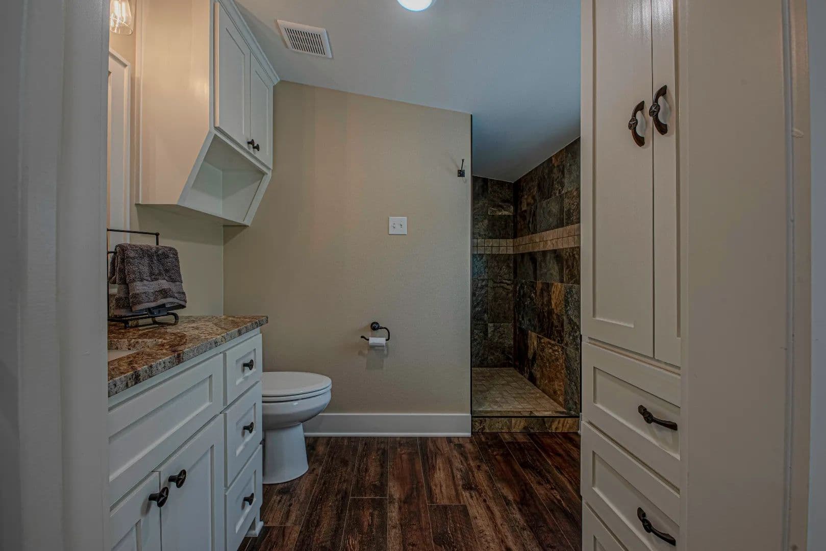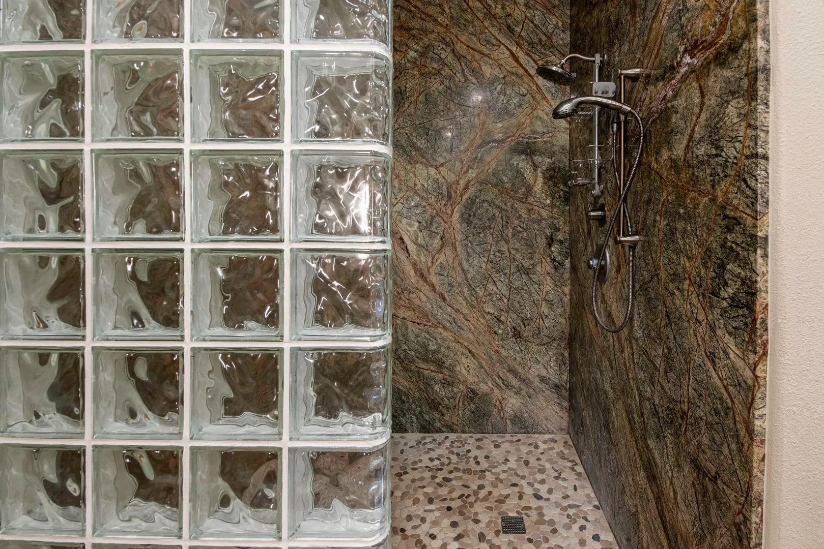 • Walk-in granite-walled shower