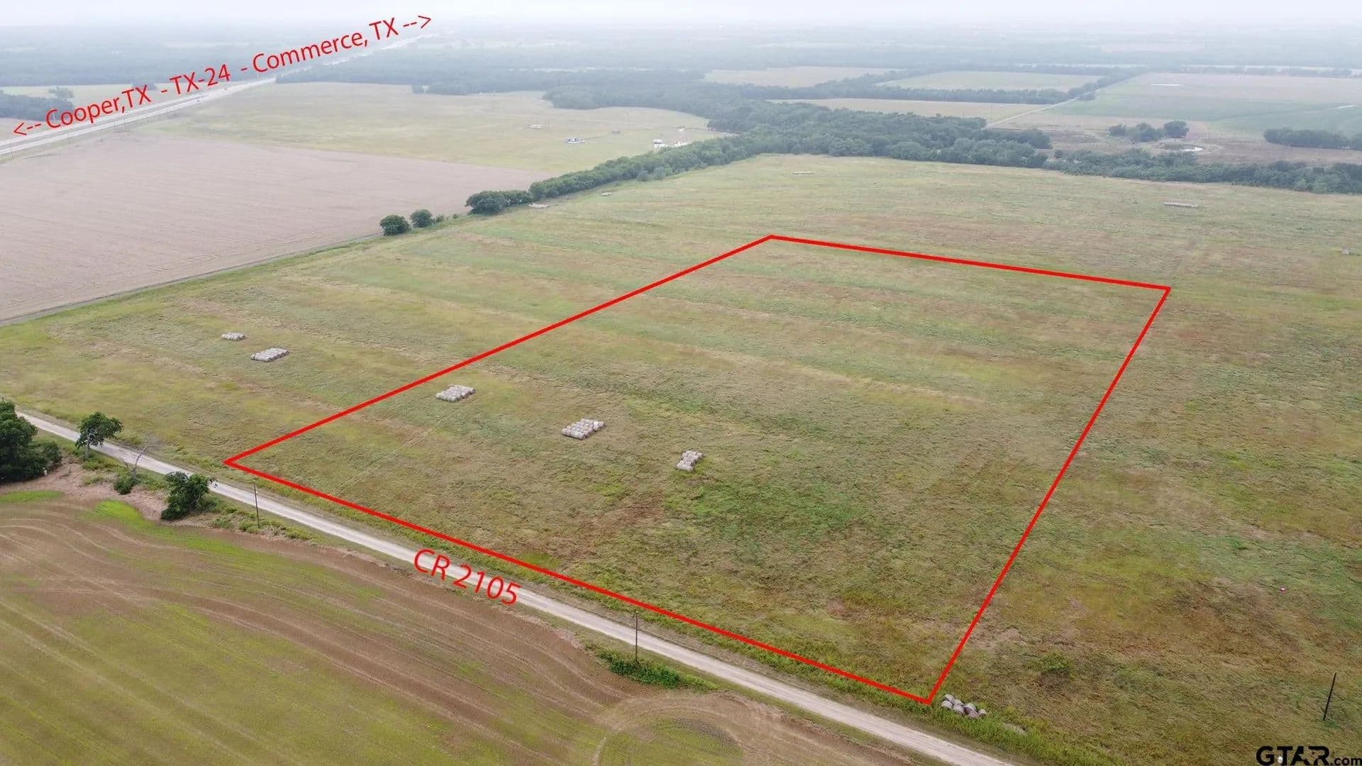 11.69 acre track just in Delta County just minutes from Cooper High School and Bill Champman Lake. Lot starts 1250ft from TX-24 which is close enough to be convenient but far enough away for peace and quiet. This flat lot has 524 feet of frontage on CR2105 and 967 feet deep. The adjacent tracts are 11ac, 17ac, and 34ac keeping the country feel even after the neighbors build out. The lot is currently in ag and is leased for hay production. There are welded pipe fence corners at the front left and right property lines. The deed restrictions are light and allow double wide mobiles and site build homes and maybe subdivided once to a total of 2 tracts.