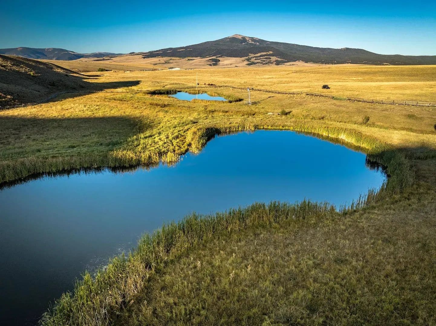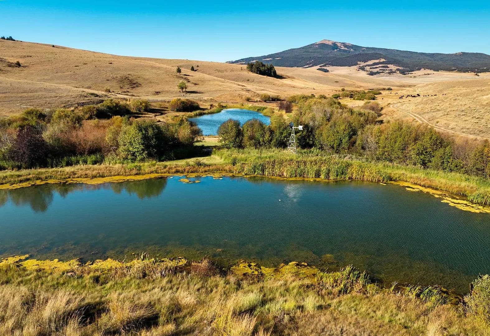 A 90± acre gravity-fed pivot, excellent water infrastructure, and several well-watered stock tanks support traditional cattle operations, with the current owners running 125± cow/calf pairs year-round across seven fenced pastures. The ranch enjoys abundant water features, including four stocked trout ponds, multiple small spring-fed streams such as Curly Creek, and a natural waterfall.