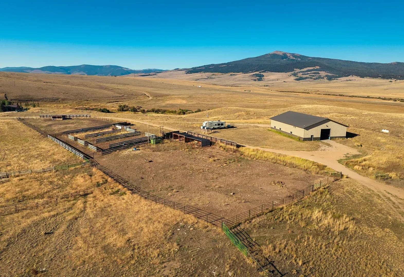 Improvements on the ranch are modest and well-maintained, providing comfortable living arrangements. The main residence is a 2,900± square foot home situated above a 5-stall horse barn, combining practical ranch facilities with inviting living space. Additional structures include a 1,256± square foot manager’s home with a fully finished basement, a 4,800± square foot heated shop, and indoor hay storage, all designed to support the ranch’s daily operations with ease and efficiency.