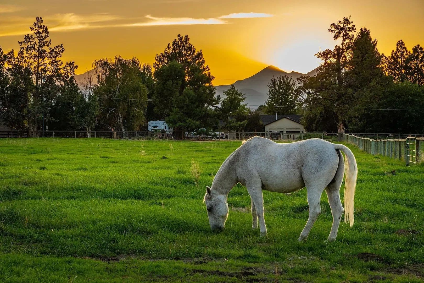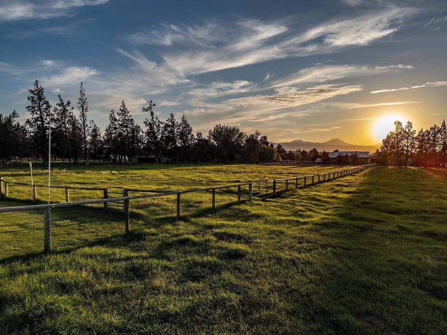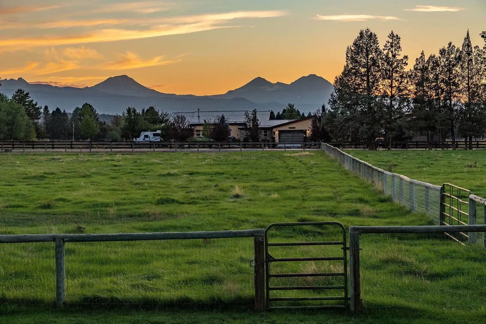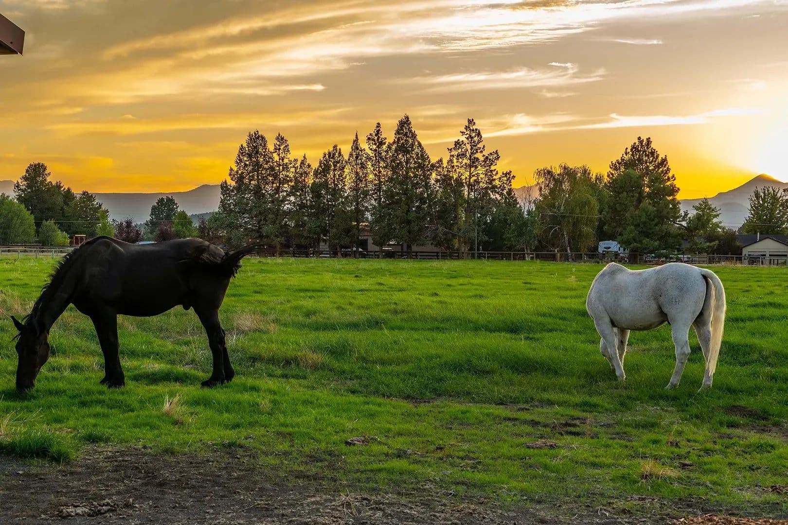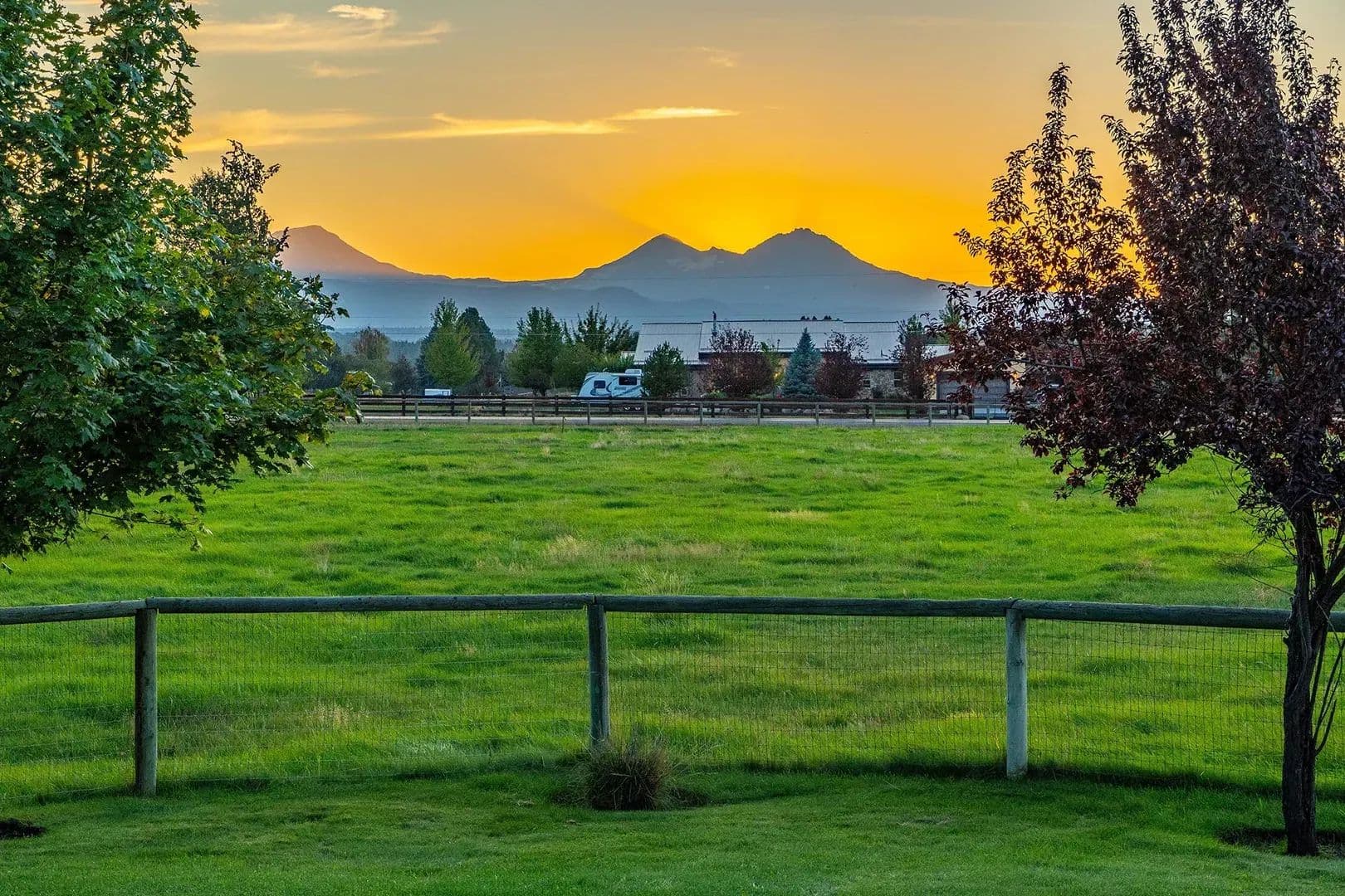 From the southwest corner of the primary residence, a large lawn opens up to the large irrigation pond, surrounded by mature trees, and you will feel like you are in a private park. Watch kids, pets, and wildlife scamper around the pond’s grass. Listen to frogs croak at dusk as the sun sets behind the Three Sisters mountains as your favorite pony grazes on fresh grass in the foreground.