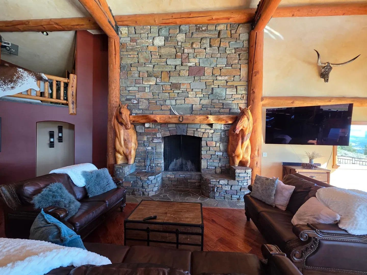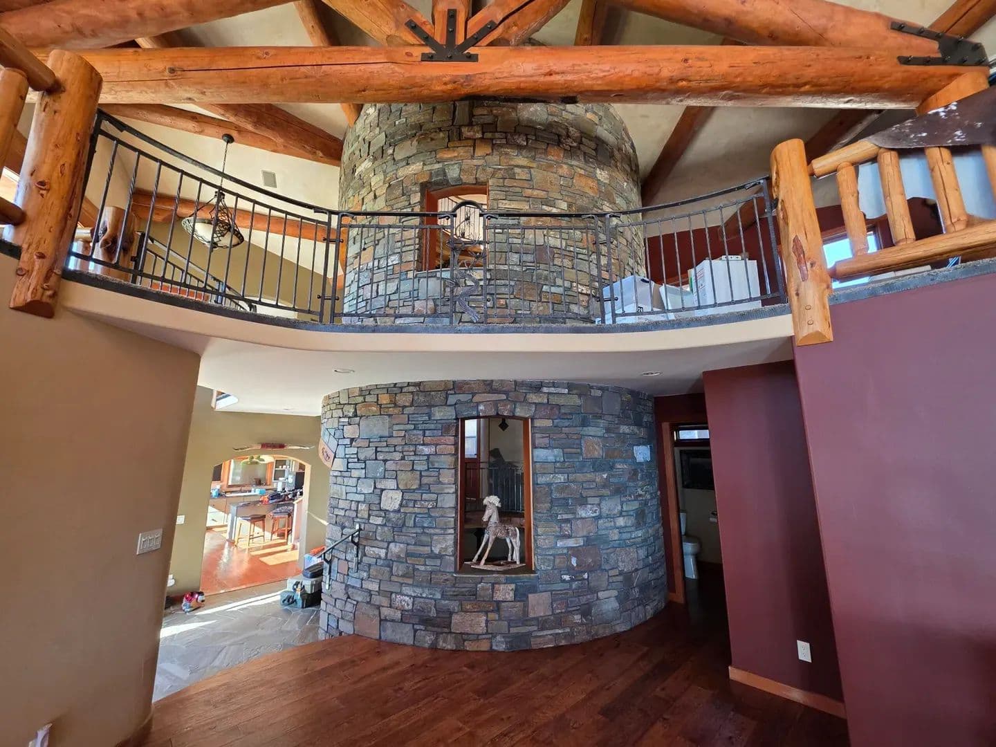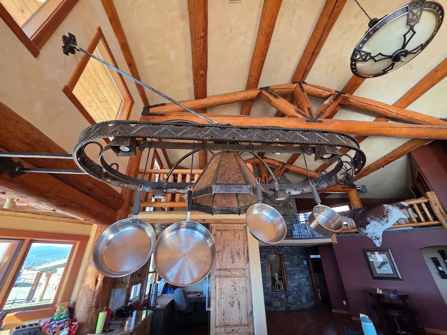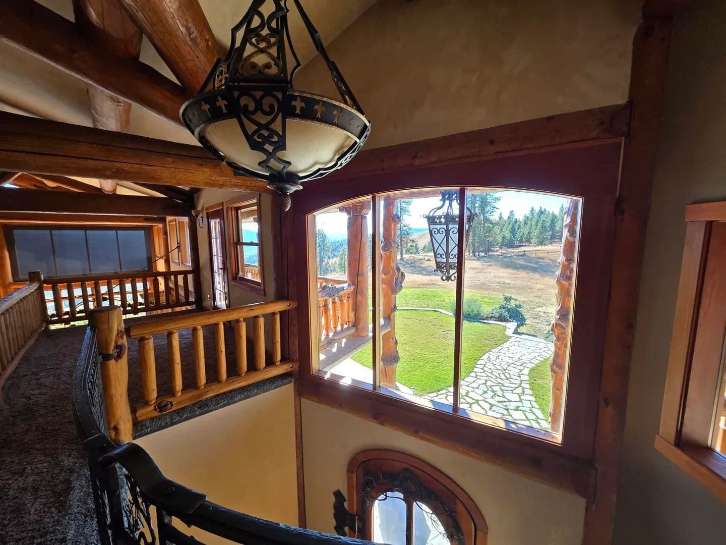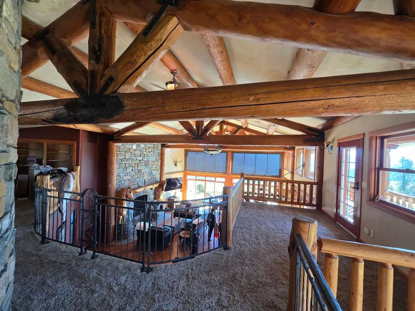Improvements The property showcases a 4,721 sq ft stunning lodge-style primary residence, built with exceptional craftsmanship and featuring hand-hewn woodwork, a grand stone fireplace, and a signature tower staircase. The home offers generous living space designed for comfort and entertaining, with panoramic views throughout. Additional improvements include a charming 552 sq ft guest cabin, a custom 7200 sq ft barn, and an impressive 60×120 indoor arena/shop. The ranch is fully fenced and cross-fenced, with multiple ponds, hay storage areas, and well-maintained access roads supporting both livestock and hay operations. Dont miss the large garden area.